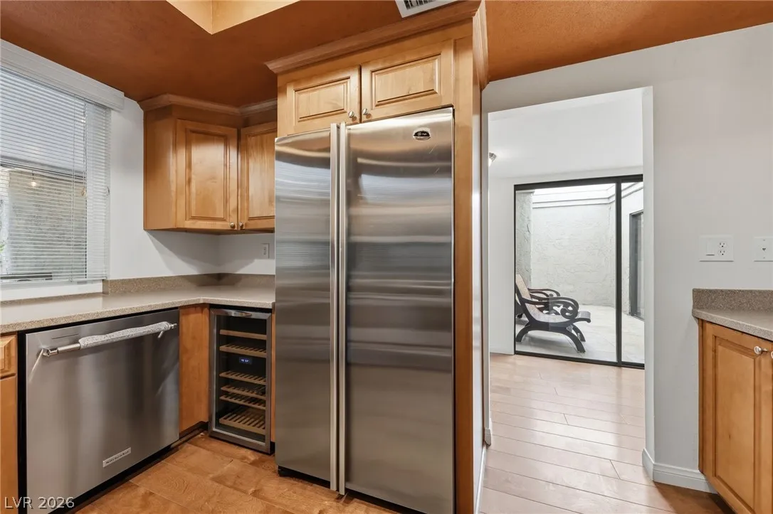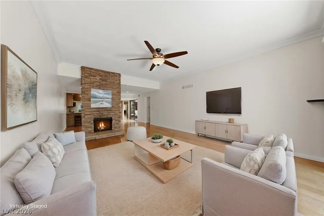 Rare and Special, Quiet, Quaint and Tranquil Sunrise Villa.This 3bed or easy use as a 2 bed and a super Den one or the other with indoor outdooor atrium two massive covered patios with festive lighting, flatscreen have entertainment/ dining area for 12 plus Townhome for sale Now. Single Story community Ultra Mature landscape lush emmersive environment w/ multicolored flowering shrubs and majestic Towering trees. Grounds; Sparkling Pools, Jaccuzzis, Tennis and Pickle ball courts. Indoors thick gorgeous wood lam floors, granits baths and corian kitchen solid wood cabinets numerous updates include New cyrstal style atrium glass top, wine fridge all 1 year new Stainless high end appliances Brand new HVAC and paid off Roof Top SOLAR and More and missing not one thing come take a peak