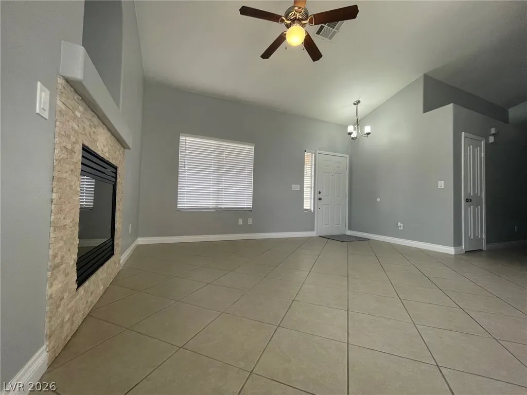 Gorgeous one-story three bedrooms and two-bathroom home in a great community! Open floorplan with beautiful tile flooring, vaulted ceilings, stone fireplace, upgraded light fixtures, and much more! Large Primary bedroom with walk-in closet. The primary bathroom has a double sink and upgraded shower. Good size other bedrooms and separate laundry area. Three car garage and covered patio. *** Periodic Rent: $1,830.00 ($1,750 base rent + $80.00 landscaping)