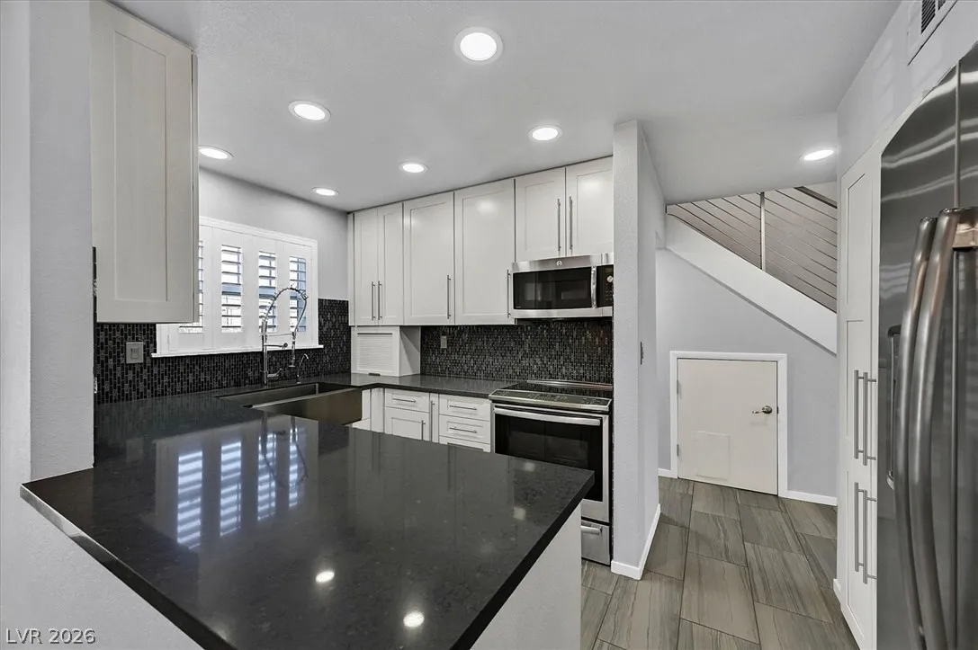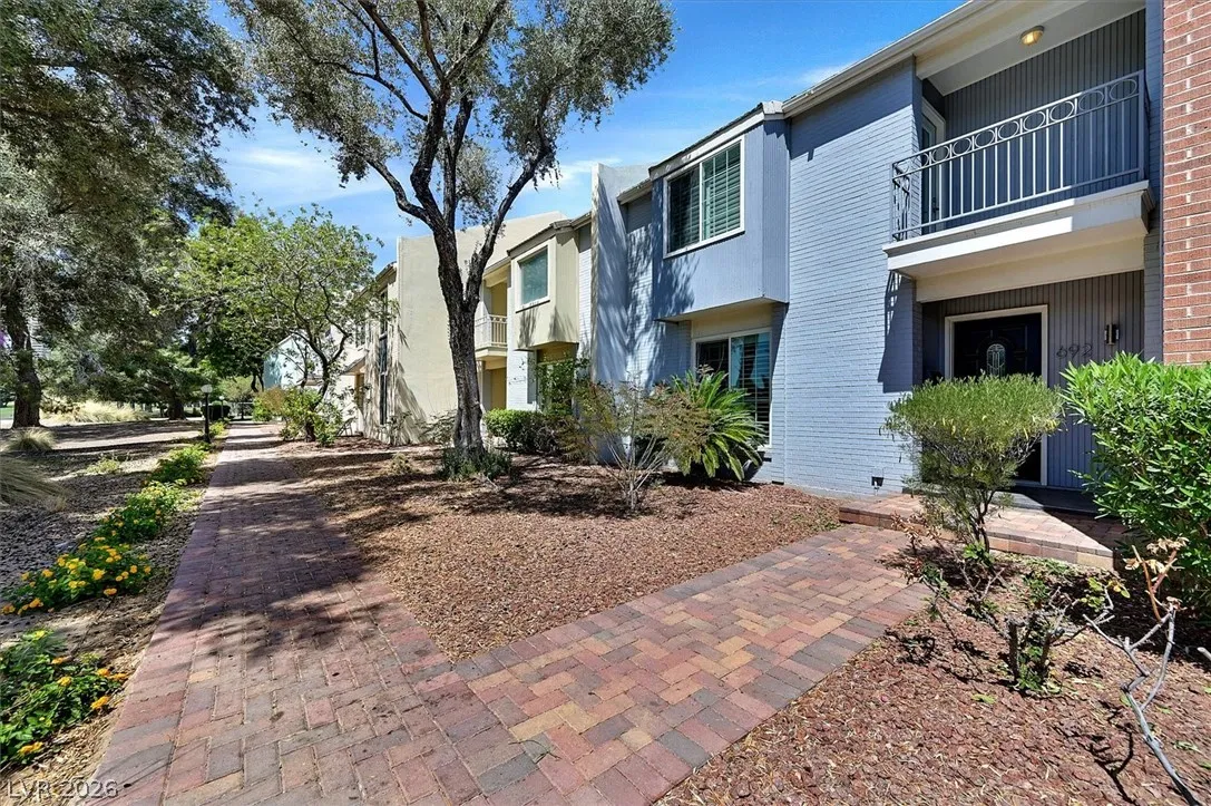 Captivating townhome just minutes from the Las Vegas Strip in the exclusive, historic Las Vegas Country Club. This fully renovated 2-bedroom, 1.5-bath townhome sits on the golf course, offering a rare blend of privacy, prestige, and unbeatable location. Inside, the home features high-end finishes and a bright, open layout. The kitchen is outfitted with quartzite countertops, custom cabinetry, and premium appliances, flowing into spacious living and dining areas with serene fairway views. Upstairs, two well-appointed bedrooms provide comfort and functionality. The primary suite includes custom closets with smart storage. Updated bathrooms showcase sleek, modern design. Enjoy guard-gated security, lush grounds, and true resort-style living in one of Las Vegas’s most iconic communities—all just moments from world-class dining, entertainment, and nightlife.
