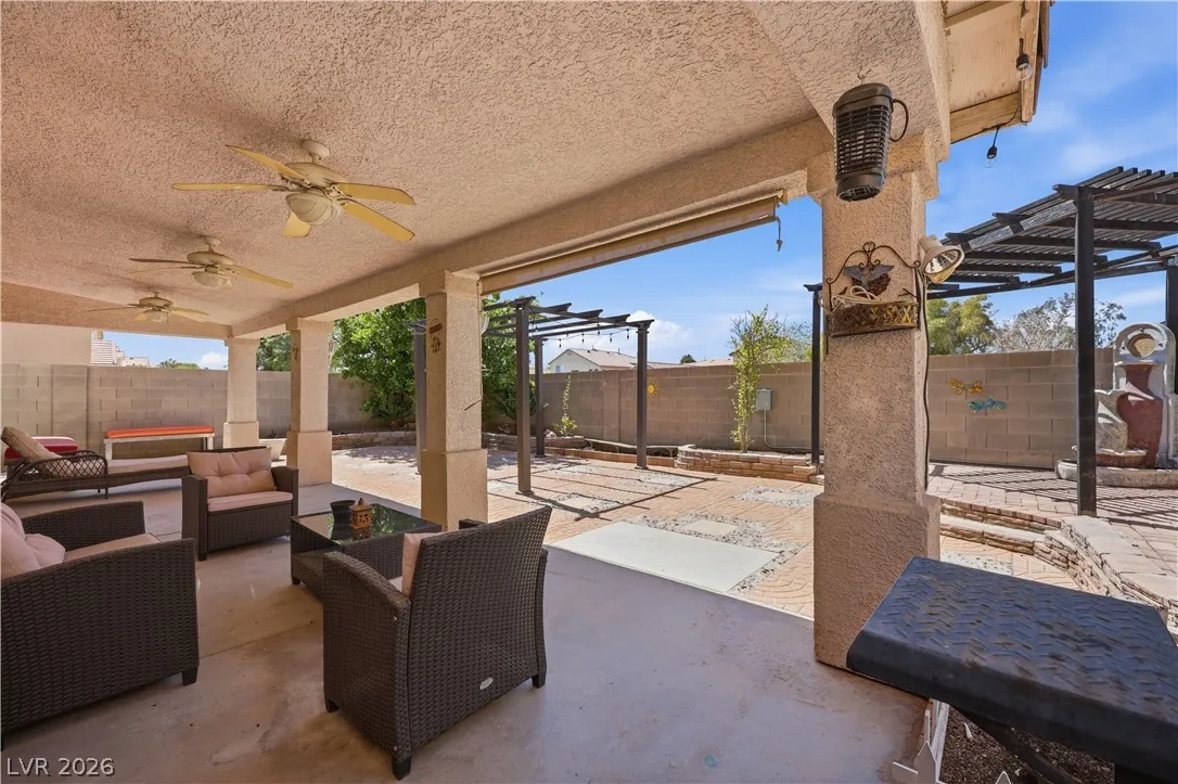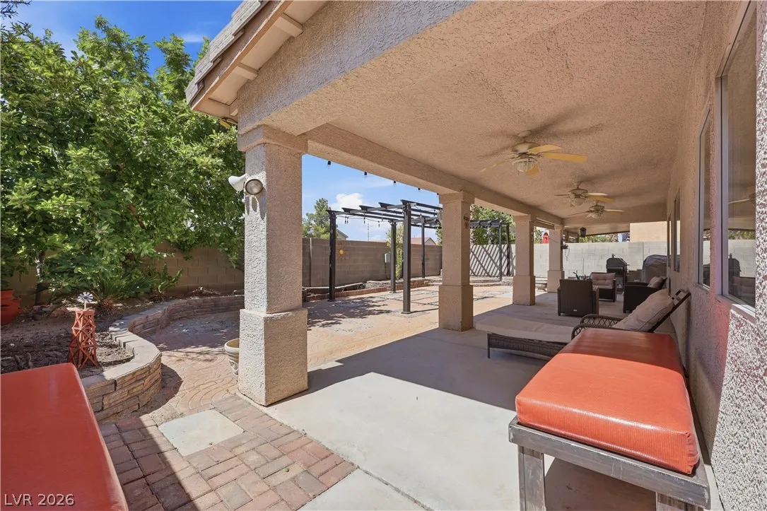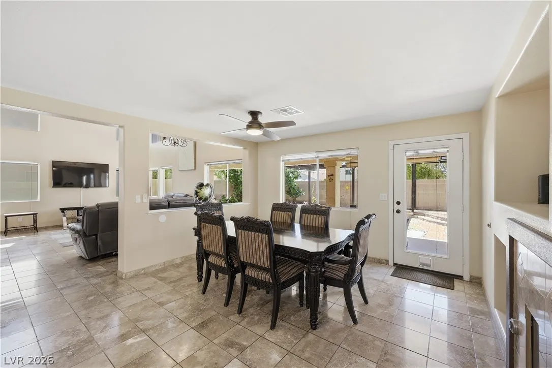 *Silverado Ranch Gem with NO REAR NEIGHBORS! Welcome to this 2 story, 4 bedroom residence nestled in the heart of the desirable Silverado Ranch community. Gleaming with curb appeal and a 3 car garage, head inside and you are immediately greeted with tons of natural light, vaulted cathedral ceilings, & a true sense of comfort. Beaming with pride of ownership, this home offers a a bedroom and full bathroom downstairs! The huge living room leads you to a cozy family room, which then opens to a kitchen made for a chef! Head upstairs to find 2 more spare bedrooms, and a primary suite that is truly remarkable. The ensuite is a spa-like experience, offering a separate shower and soaking tub, dual sink vanity, and a large walk-in closet. The backyard does not disappoint, boasting a covered patio and tons of space for relaxing evenings or large get togethers! Enjoy a private sunset with the luxury of no rear neighbors! Close to schools, parks, and minutes from the Las Vegas Strip and airport!!
