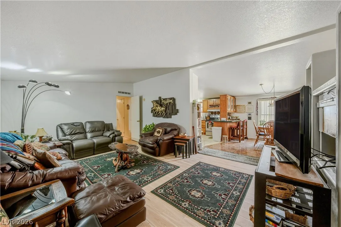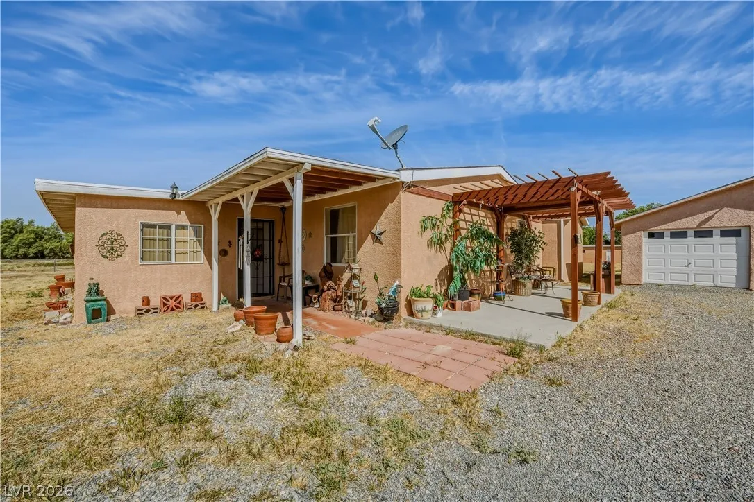 A distinctive multi-dwelling property thoughtfully configured for multi-generational living: a spacious main doublewide residence plus another singlewide manufactured home, both converted to real property, totaling over 3,160 sq ft. The main home exceeds 2,300 sq ft and offers 4 bedrooms, a formal dining room, a dedicated office, 2 family rooms, and generous living spaces; each dwelling includes 2 full bathrooms, bringing the total to 4 bathrooms across the compound. Altogether there are 6 bedrooms and flexible floorplans ideal for extended family, guests, or possible rental income. Exterior features include a 2-car garage, two additional outbuildings for storage, full stucco finishes on all buildings and sweeping mountain views. The property sits on approximately one acre, fully fenced with an RV gate and room for RV parking. Mature landscaping, private outdoor areas, and separate entries preserve autonomy for each household while keeping the whole estate cohesive and move-in ready.
