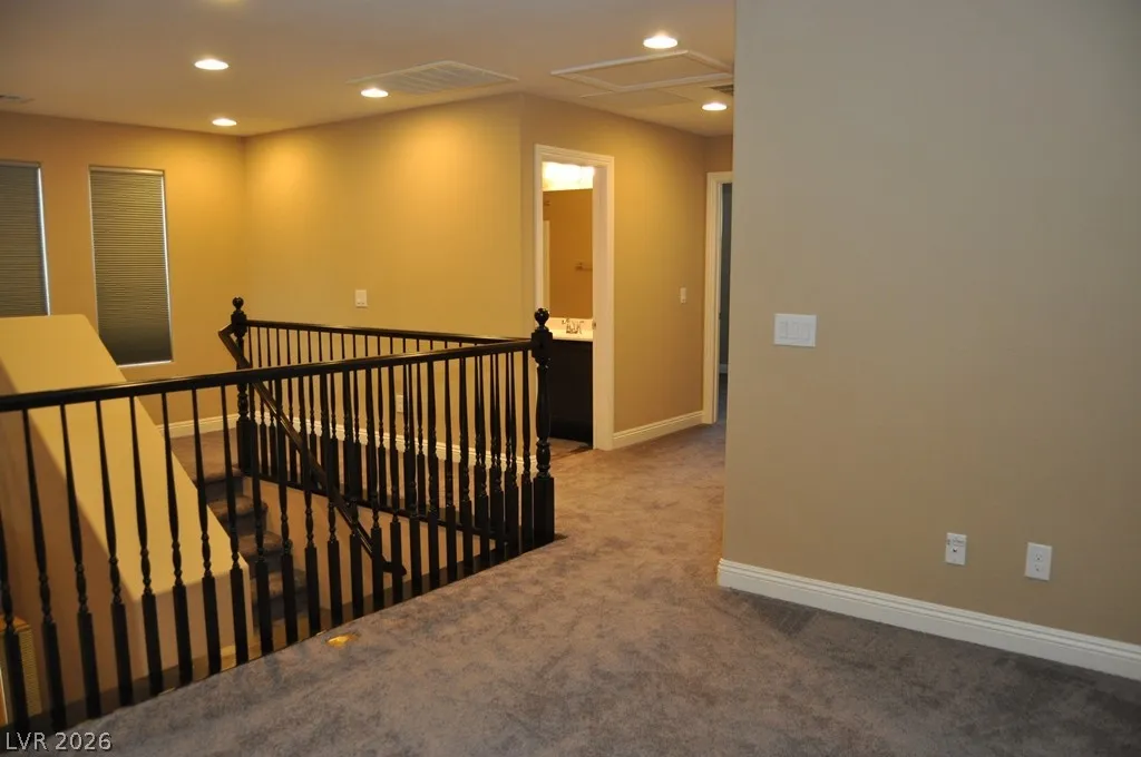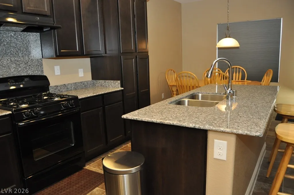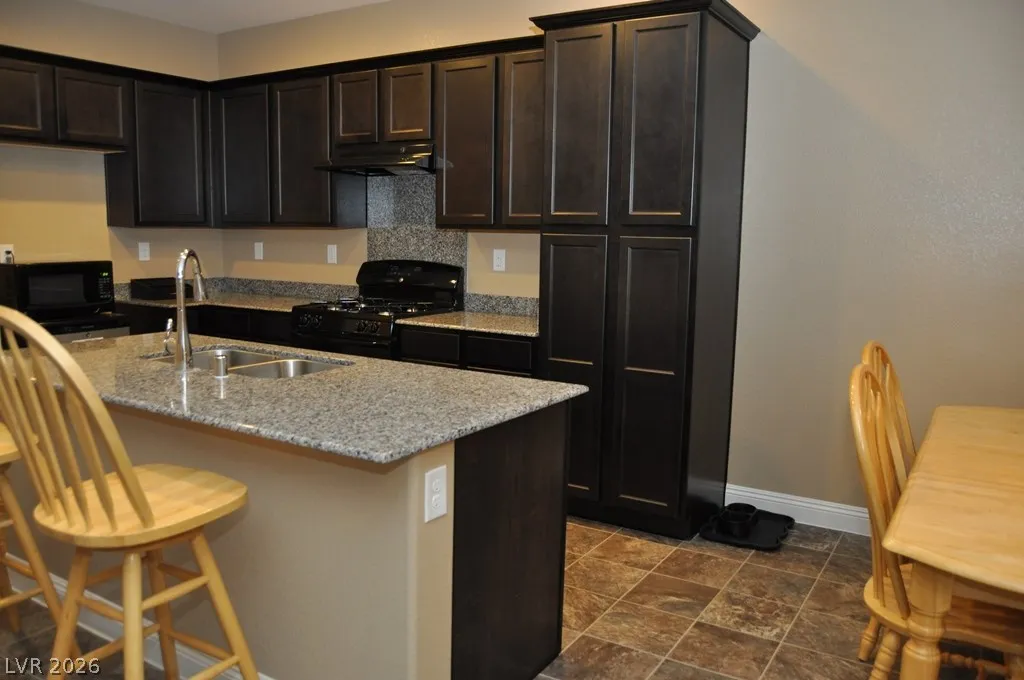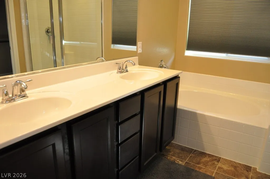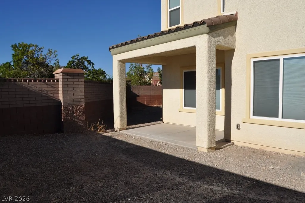 Fabulous 3 bedroom, 2.5 bathroom two-story home in a gated Las Vegas community. The open floor plan connects a kitchen featuring granite counters, custom cabinets, a pantry and a central island to generous living spaces. The master suite includes a walk-in closet and a bathroom with dual vanity sinks plus a separate tub and shower. Step outside to a great backyard, and enjoy being located directly across from the community playground.