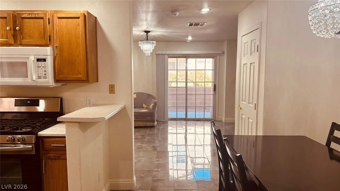 This charming 2-story home sits in a gated community with HOA-maintained front yard for easy living. Interior features upgraded kitchen appliances, abundant natural light, and a low-maintenance backyard with neighborhood access. Upstairs includes vaulted ceilings, a spacious primary suite with sitting area, plus well-sized secondary bedrooms with shared bath. Furniture is optional.