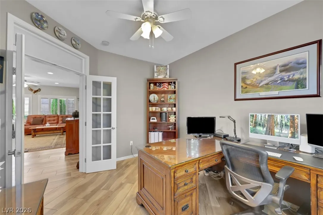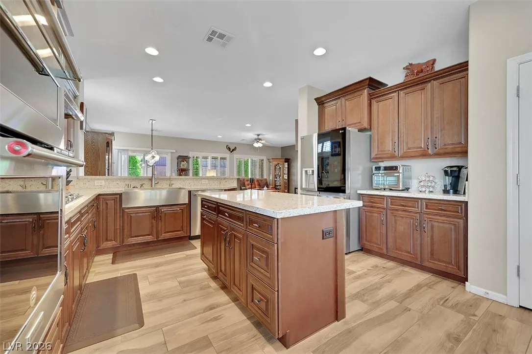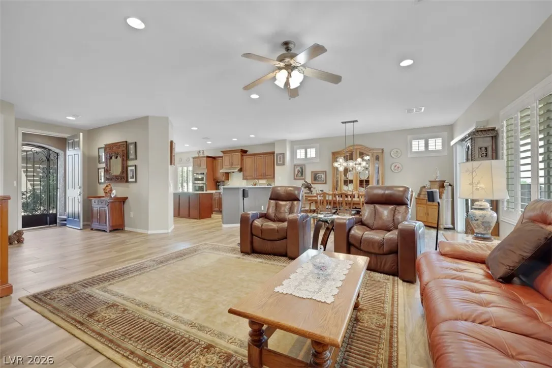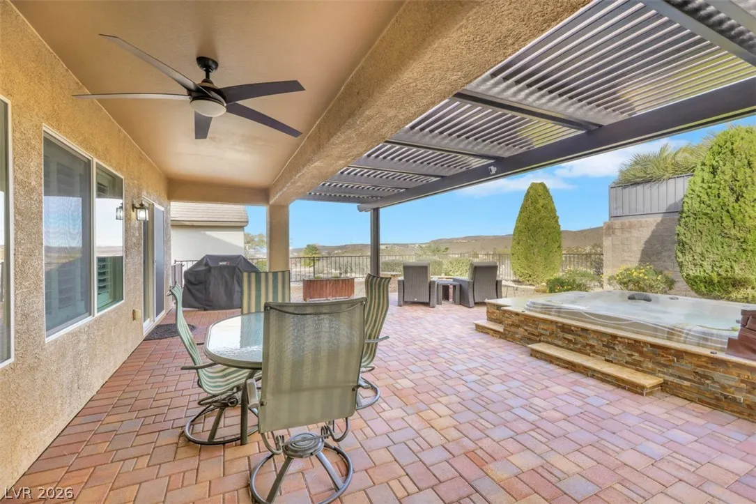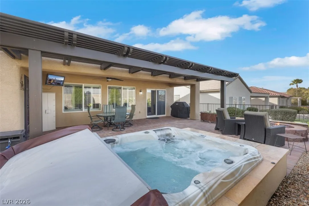 Highly upgraded Lincoln with casita on elevated lot overlooking the canyon. Immaculate and move in ready, the house has three bedrooms, 3 baths plus den with double glass panel doors. Owner did not spare any cost in quality upgrades. Flooring has been replaced with Italian Porcelain tiles, except in the bedrooms. Kitchen has new quartz countertops, new cabinets with soft closing doors, and stainless steel appliances. Eco water softener has life warranty. There is iron front and back security doors, custom front and back covered patio with pavers, semi-in-ground spa in the backyard and natural gas fire pit. Master bath has new walk-in shower. Like new appliances include a 16 months old water heater, 7 year old AC, new refrigerator purchased in 2024, and new irrigation system in Aug of 2025. Washer and dryer replaced in 2017 are in top condition. House was painted in 2022. Two-car garage has epoxy floor, built-in cabinets, and overhead storage racks. Owned solar panels installed in 2021.