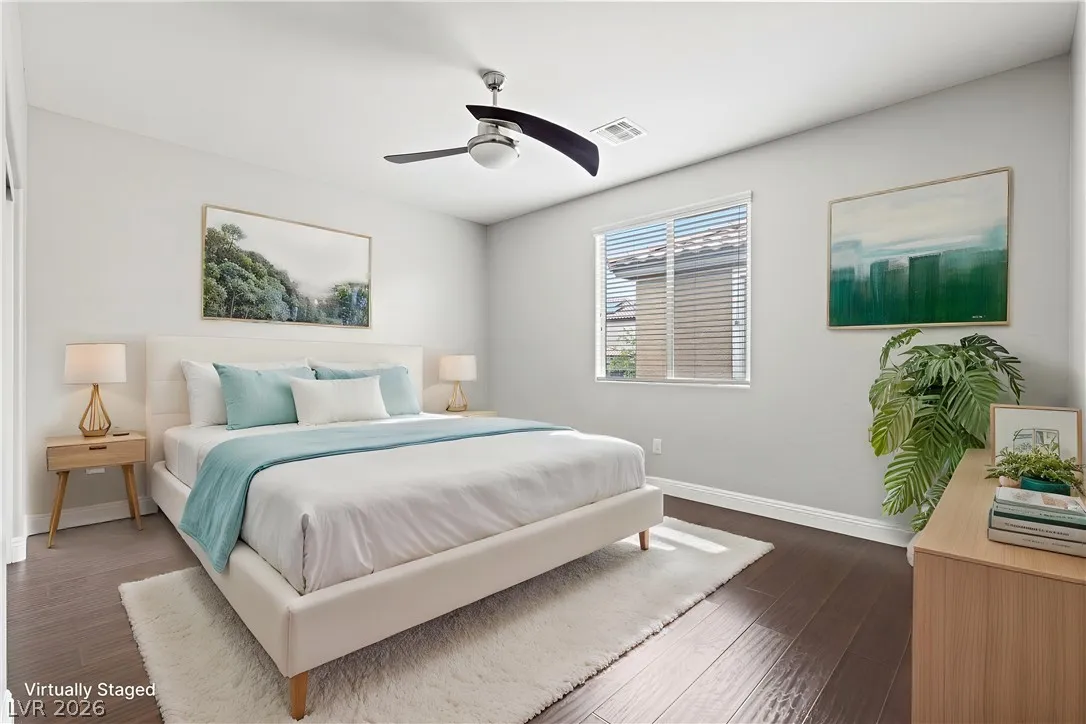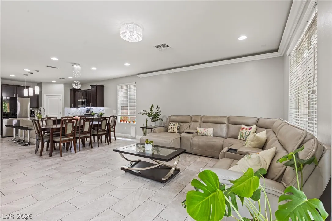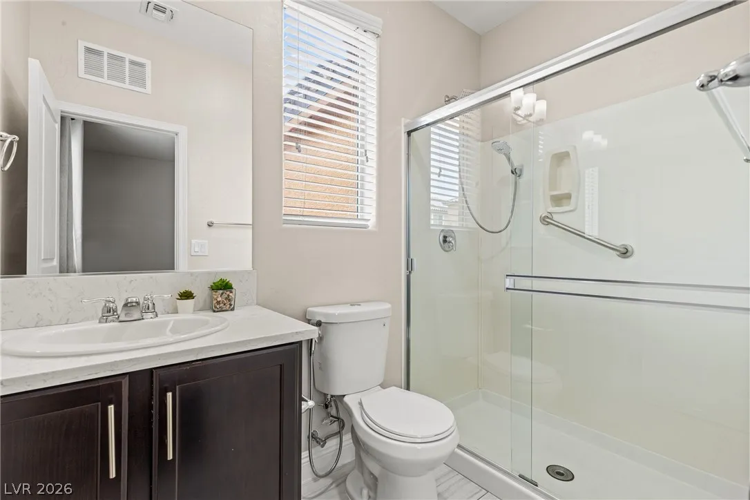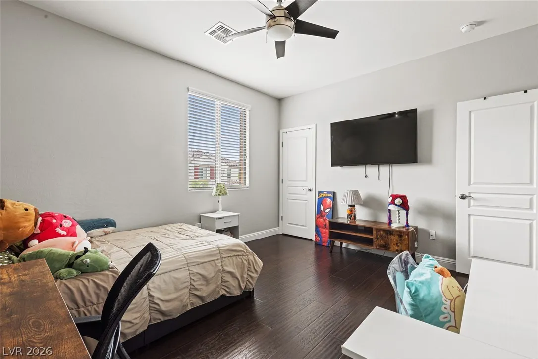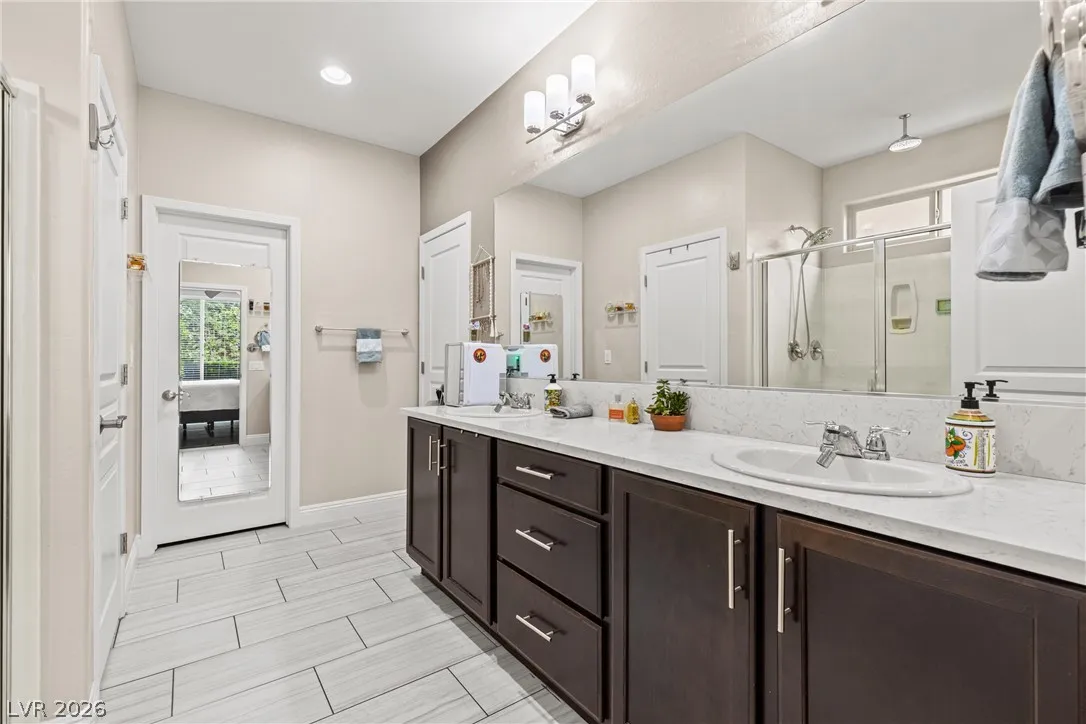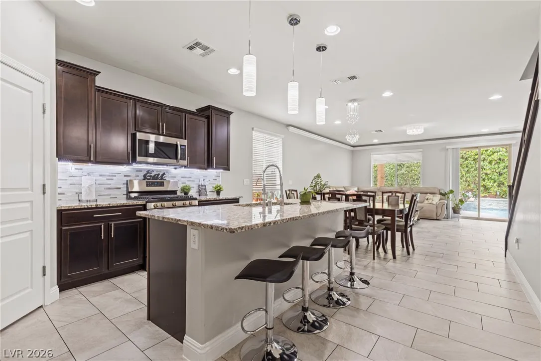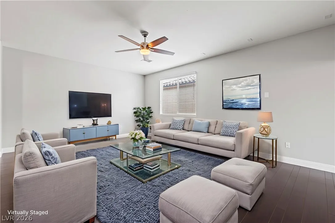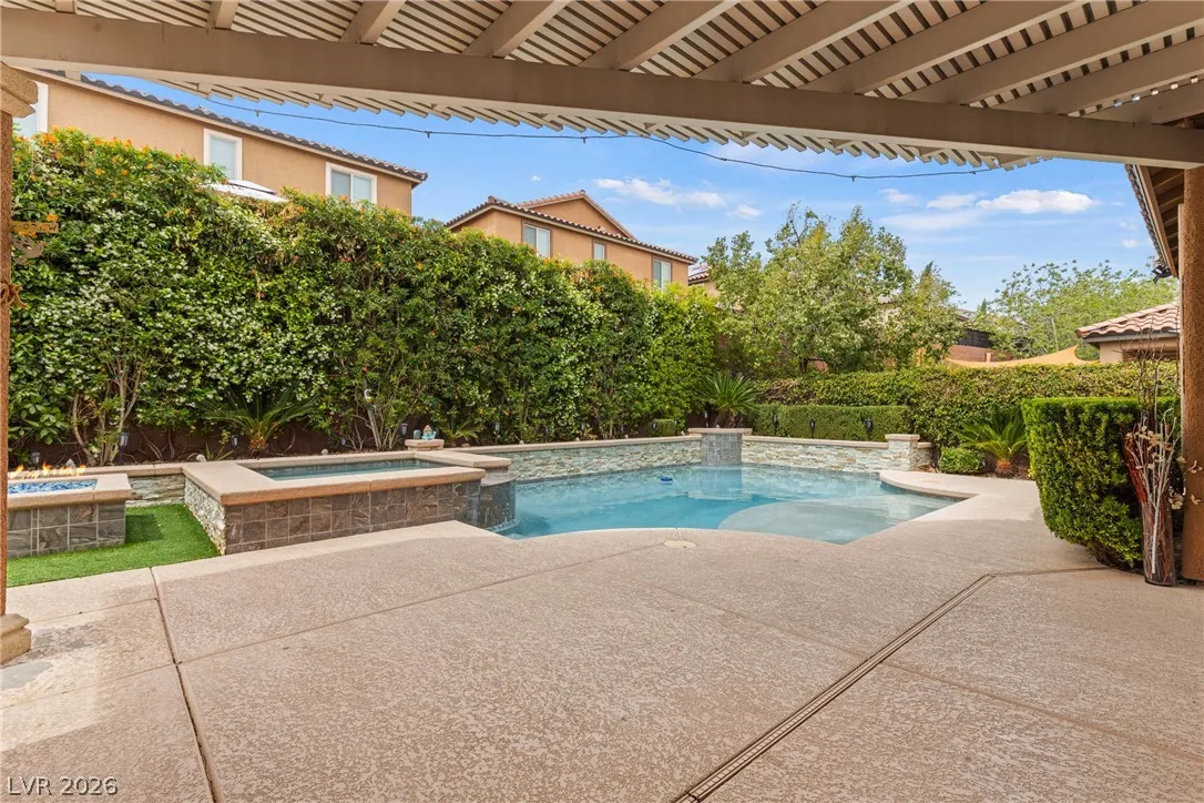 Highly upgraded 5-bedroom, 4.5-bath home in Southwest Las Vegas offering 3,046 sq ft of versatile living space and a sought-after multi-gen layout. Featuring a primary suite downstairs, additional en suites on second floor, large bedrooms, a dedicated home office, and a spacious loft, this home is designed for both comfort and functionality. Major upgrades include fully paid solar, brand new HVAC (with transferable warranty), EV charger, and a tankless water heater for modern efficiency. The fully landscaped backyard is built for entertaining and enjoying outdoor living year round with a covered patio, solar heated saltwater pool and spa, fire feature and outdoor kitchen. Packed with high-value upgrades, this home stands out in today’s market. Conveniently located near parks, shopping and schools this home is move-in ready and waiting or you!