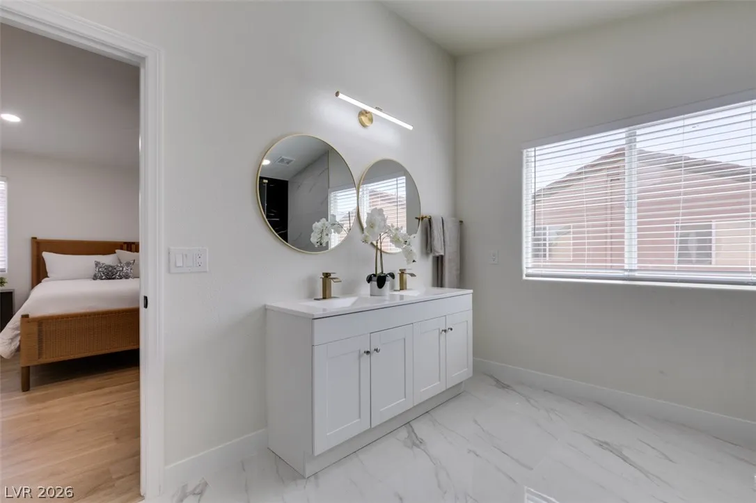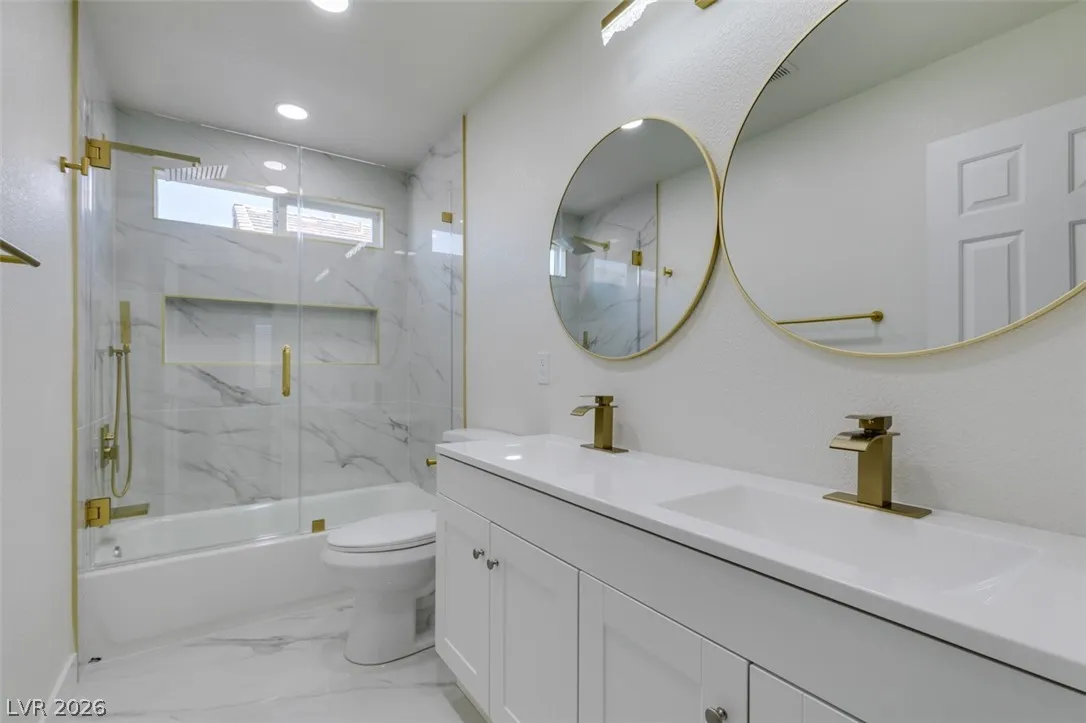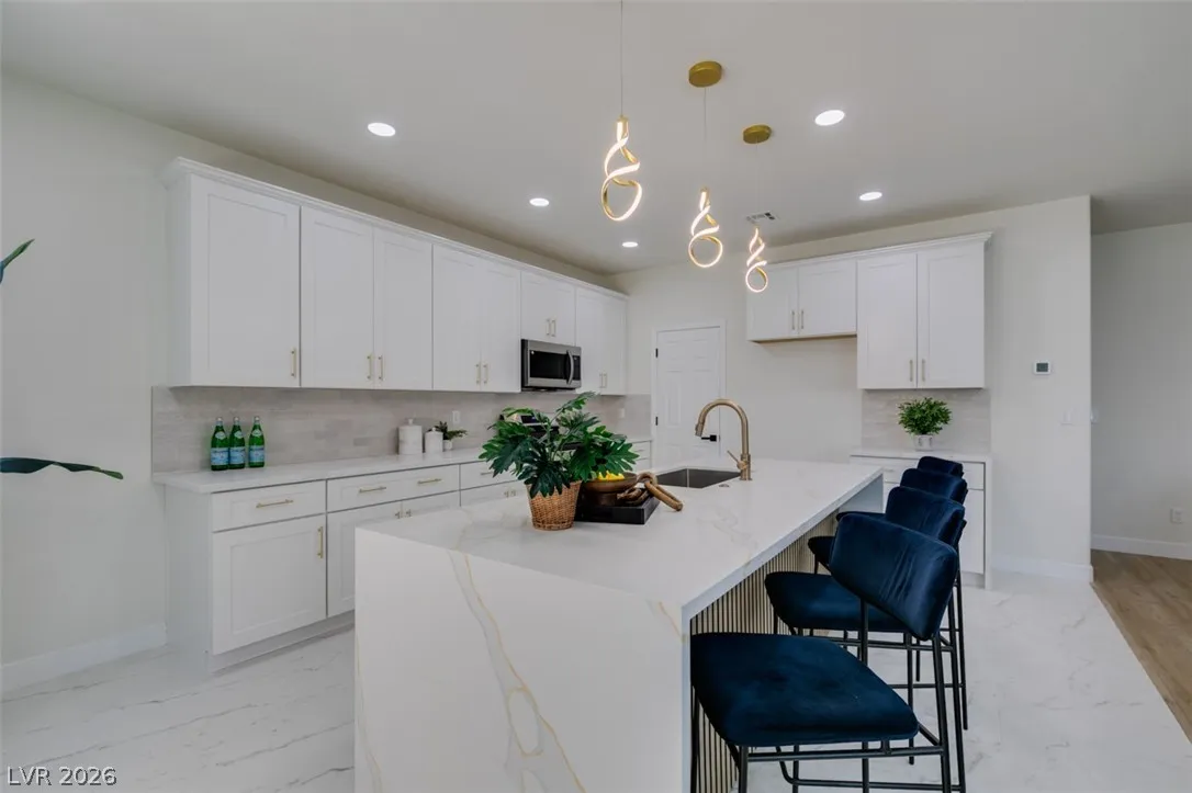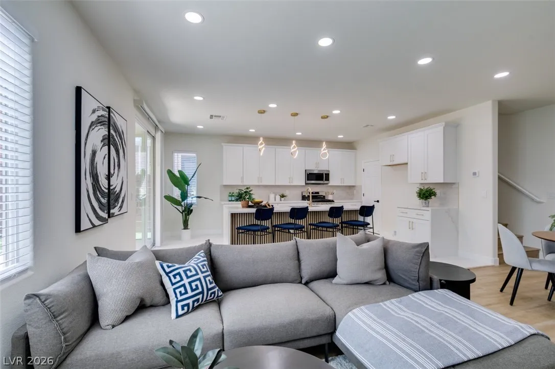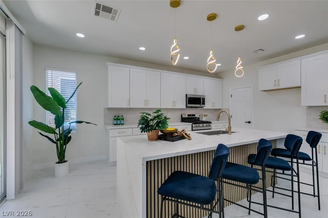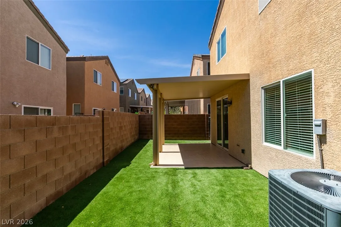 Completely reimagined to feel like a luxury new build, this stunning home features an open-concept layout with a custom fireplace wall, built-in TV, and sleek electric fireplace. Extensive LED recessed lighting and modern fixtures highlight the fully remodeled kitchen, built from the ground up with a large waterfall island, custom cabinetry, and brand-new Samsung stainless steel appliances. Walls have been removed to create a bright, expansive living space. Quartz countertops, marble flooring, 2″ blinds, and modern ceiling fans elevate the interior. The powder room includes a statement wall, and the primary suite showcases a spa-like bath finished floor-to-ceiling in stone, featuring a rain shower, custom glass enclosure, and elegant gold accents. Private backyard with new turf and covered patio—perfect for relaxing or entertaining.