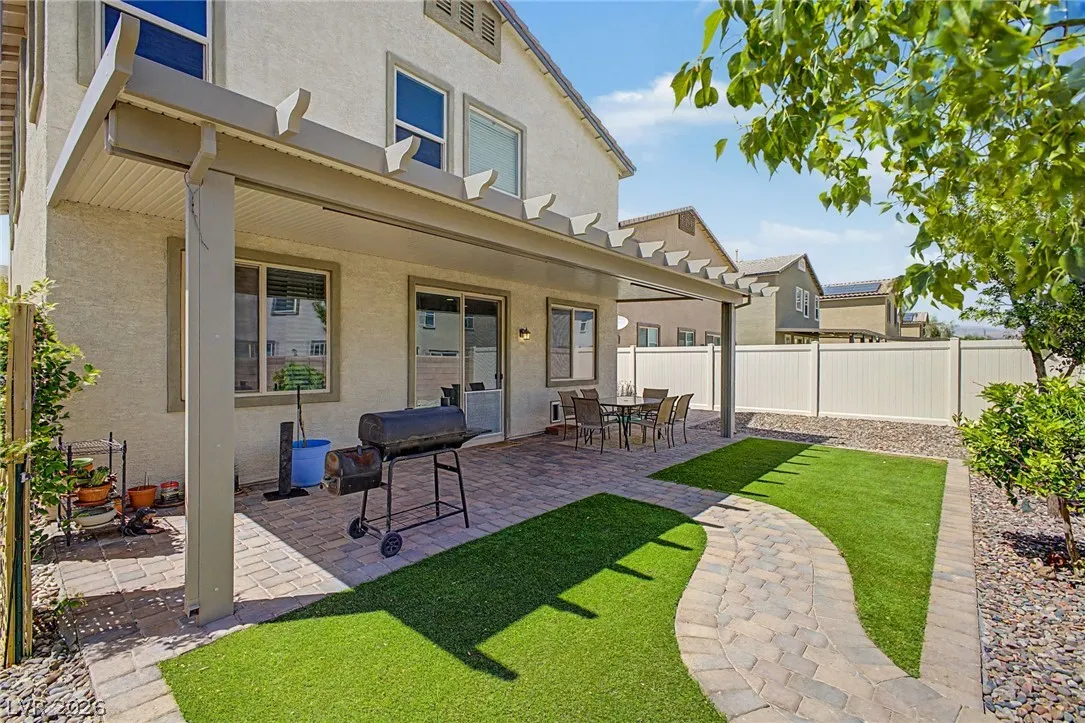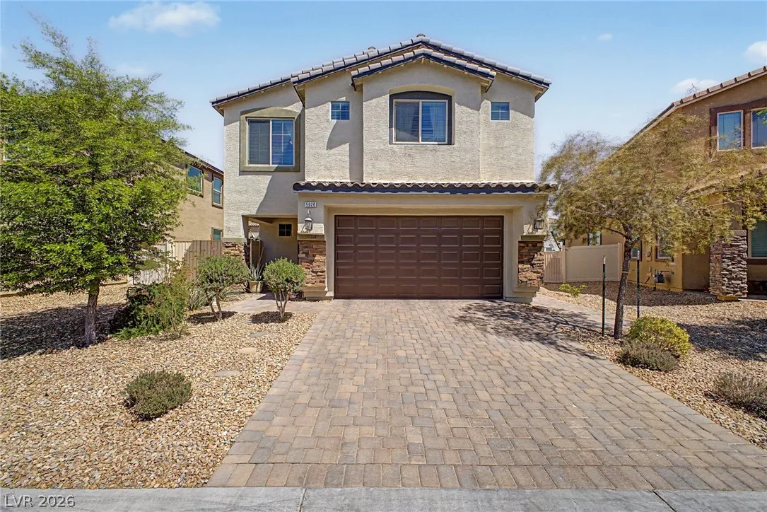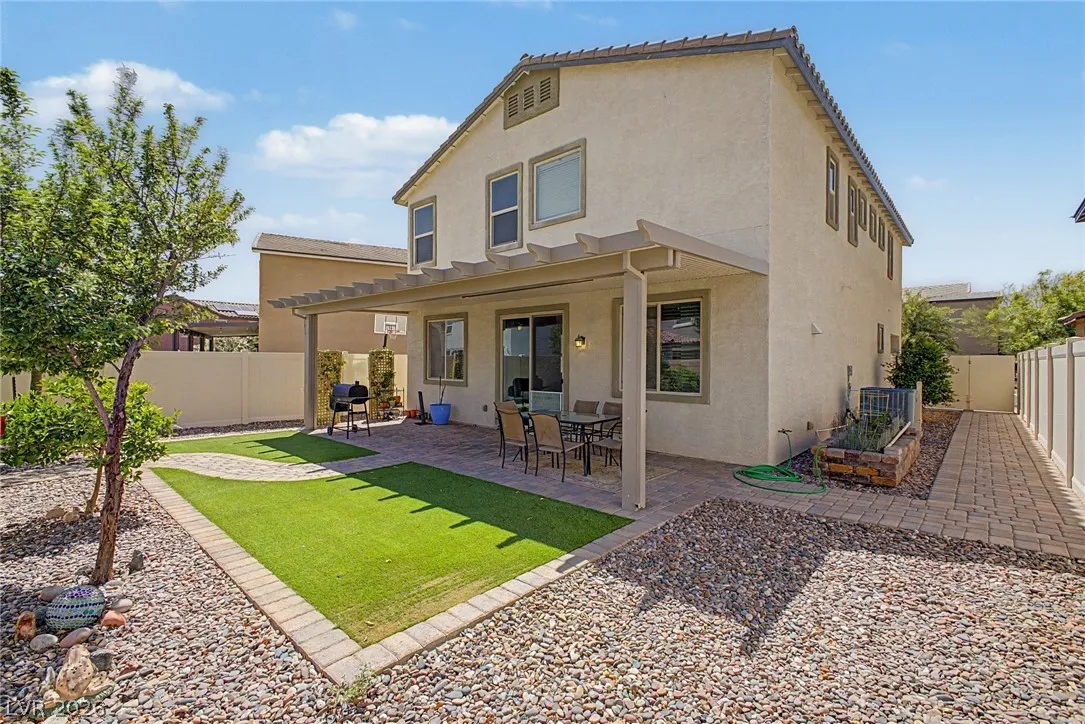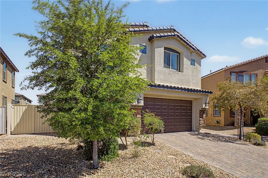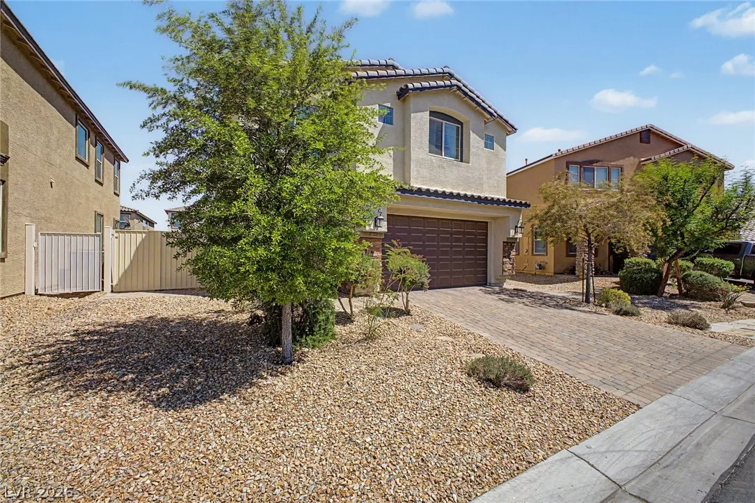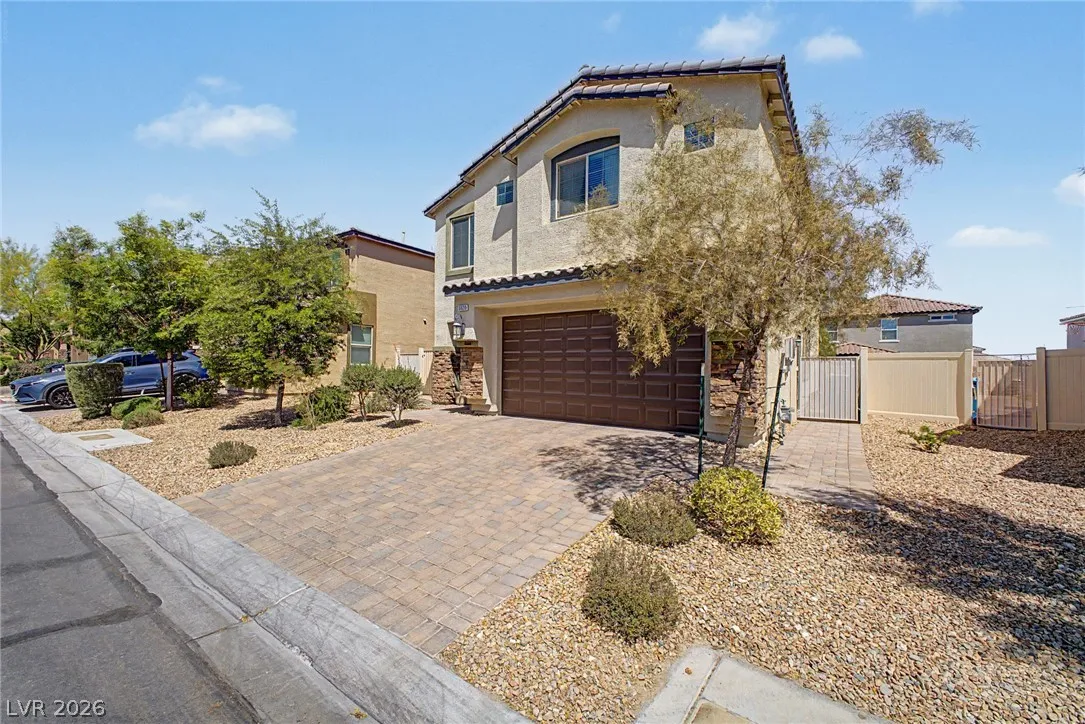 Welcome to this beautiful 4 bed, 3 bath two-story home! Displaying stone accent details, mature landscape, and a 2-car garage w/paver driveway. The inviting interior showcases abundant natural light, a neutral palette, recessed lighting, and tasteful flooring – tile/carpet/wood-look in all the right places. Designed for everyday living and entertaining, you’ll love the seamlessly flowing open layout! The welcoming living space is paired with surround sound. The impressive kitchen boasts SS appliances, granite counters, a mosaic tile backsplash, a pantry, and an island w/breakfast bar. All bedrooms await upstairs! The main bedroom has an ensuite with dual sinks, a separate tub/shower, & a walk-in closet. One spacious secondary bedroom (which was a loft), can be a game/play room as well. Laundry room with cabinetry for your convenience. If you want to relax or enjoy BBQ, the backyard awaits you with a paver-covered patio and artificial turf! Don’t miss this fantastic opportunity!