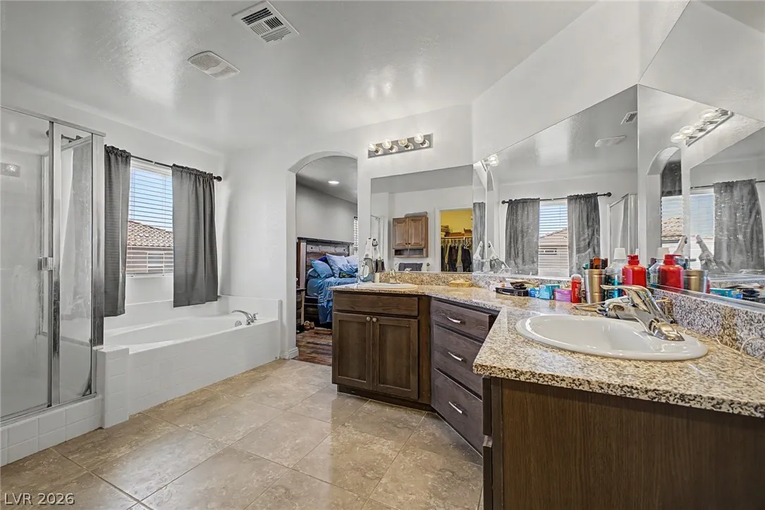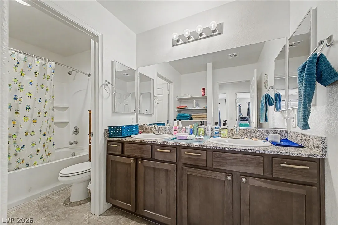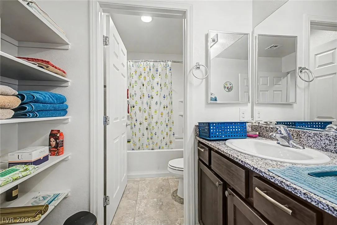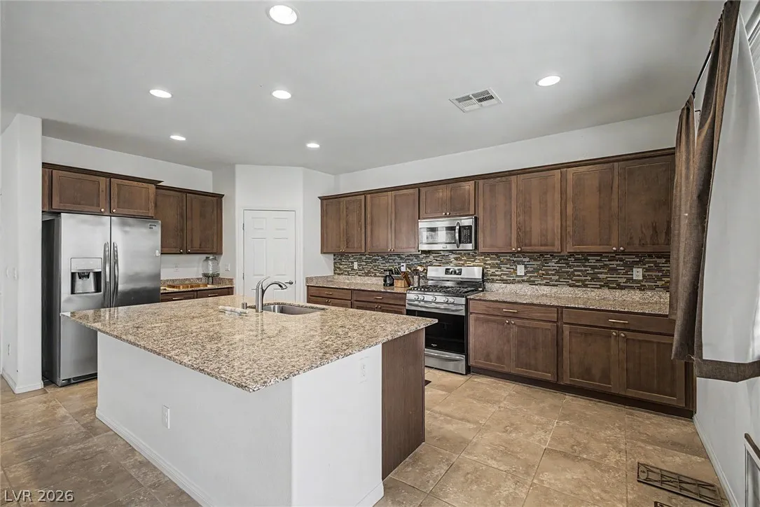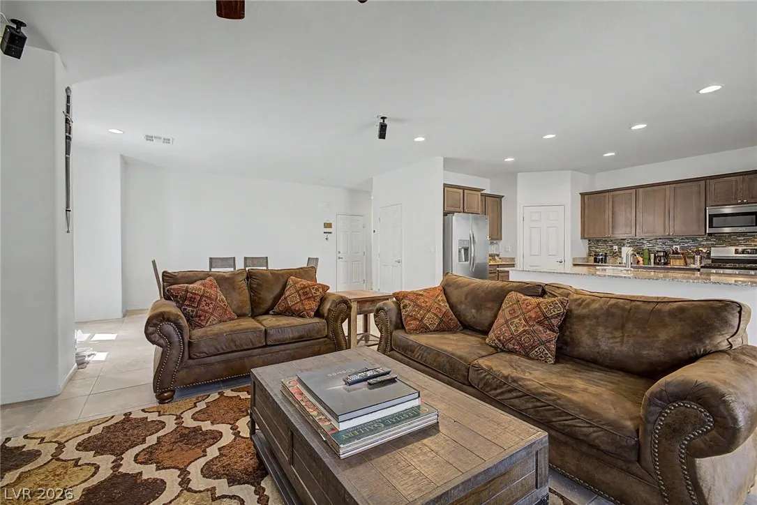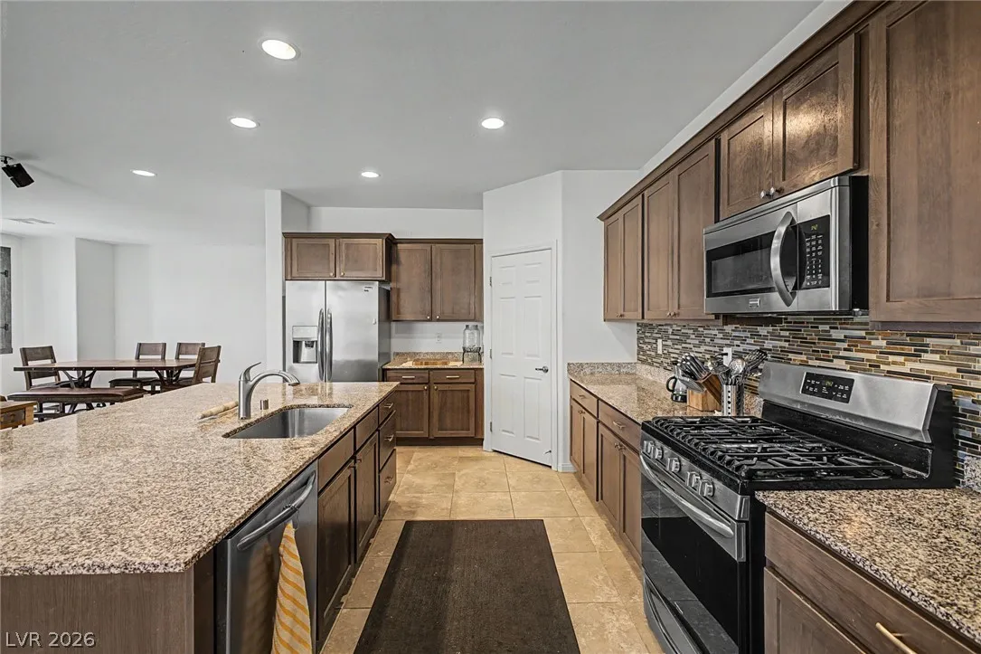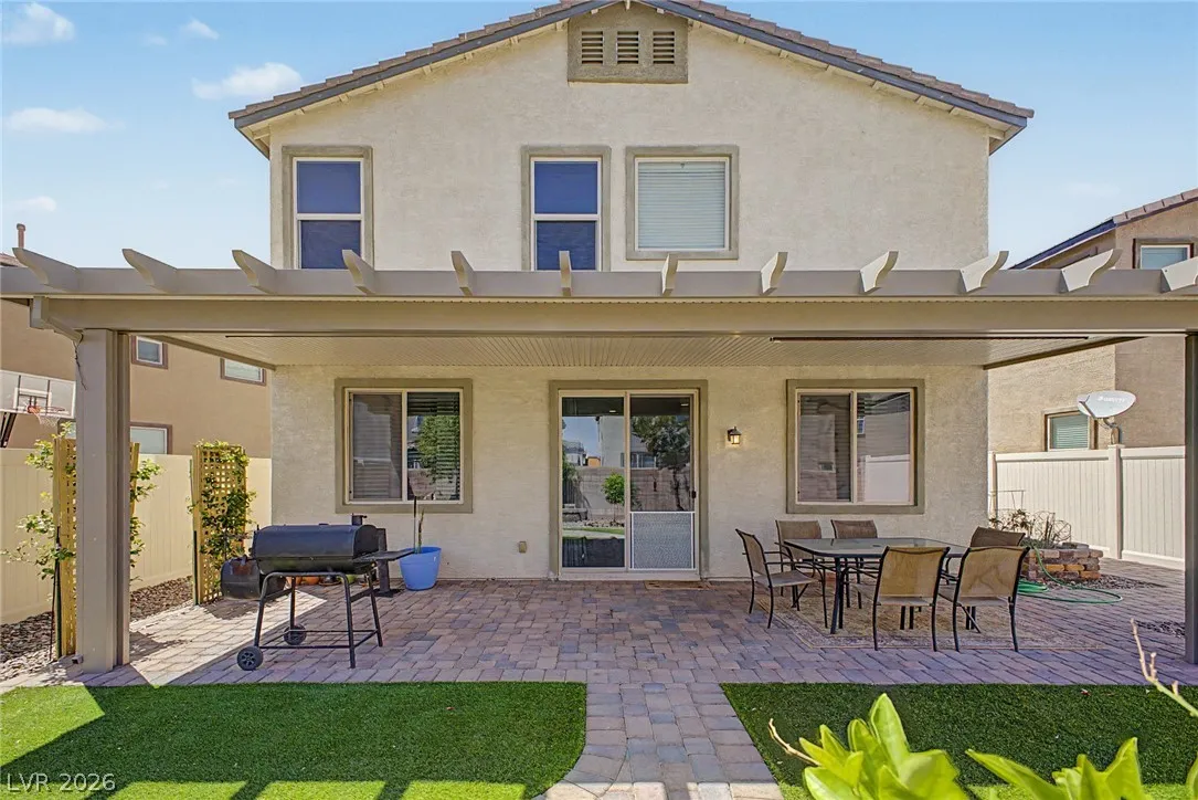 Welcome to this beautiful 4 bed, 3 bath two-story home! Displaying stone accent details, mature landscape, and a 2-car garage w/paver driveway. The inviting interior showcases abundant natural light, a neutral palette, recessed lighting, and tasteful flooring – tile/carpet/wood-look in all the right places. Designed for everyday living and entertaining, you’ll love the seamlessly flowing open layout! The welcoming living space is paired with surround sound. The impressive kitchen boasts SS appliances, granite counters, a mosaic tile backsplash, a pantry, and an island w/breakfast bar. All bedrooms await upstairs! The main bedroom has an ensuite with dual sinks, a separate tub/shower, & a walk-in closet. One spacious secondary bedroom (which was a loft), can be a game/play room as well. Laundry room with cabinetry for your convenience. If you want to relax or enjoy BBQ, the backyard awaits you with a paver-covered patio and artificial turf! Don’t miss this fantastic opportunity!