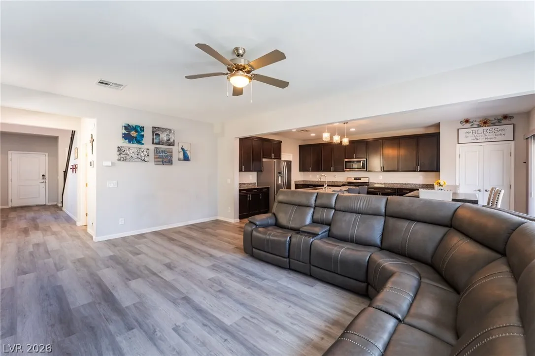 Beautifully maintained, move-in ready home located in a desirable gated community, featuring 3 bedrooms and 2.5 bathrooms. This property showcases upgraded LVP flooring throughout and an open-concept kitchen ideal for entertaining, complete with stainless steel appliances and a gourmet design.The fully finished backyard offers a great space for outdoor enjoyment. Additional highlights include a spacious loft, custom blinds throughout, a water treatment system, and an added expansion tank on the water heater.Conveniently located near shopping, the VA hospital, and with easy freeway access, this home offers both comfort and accessibility.