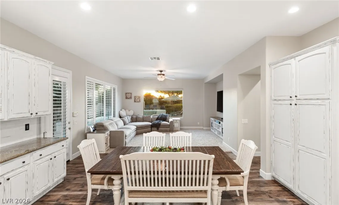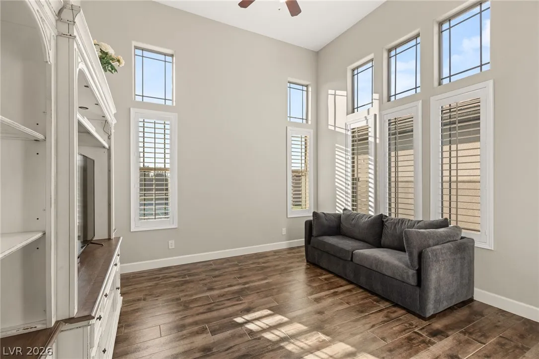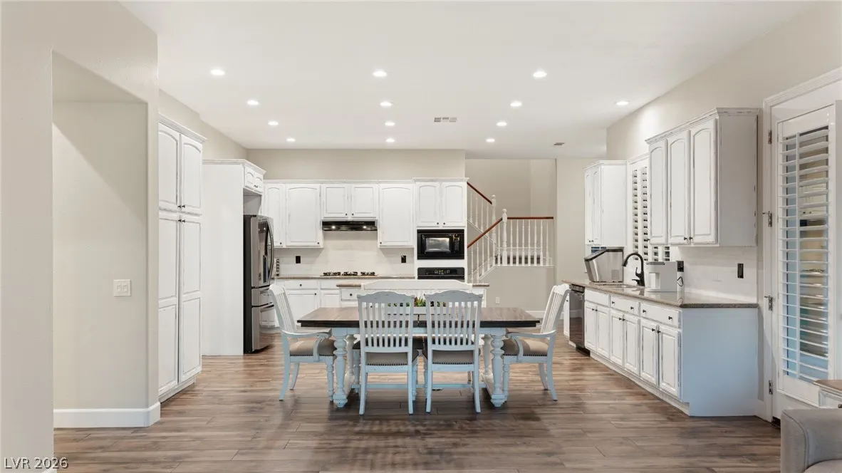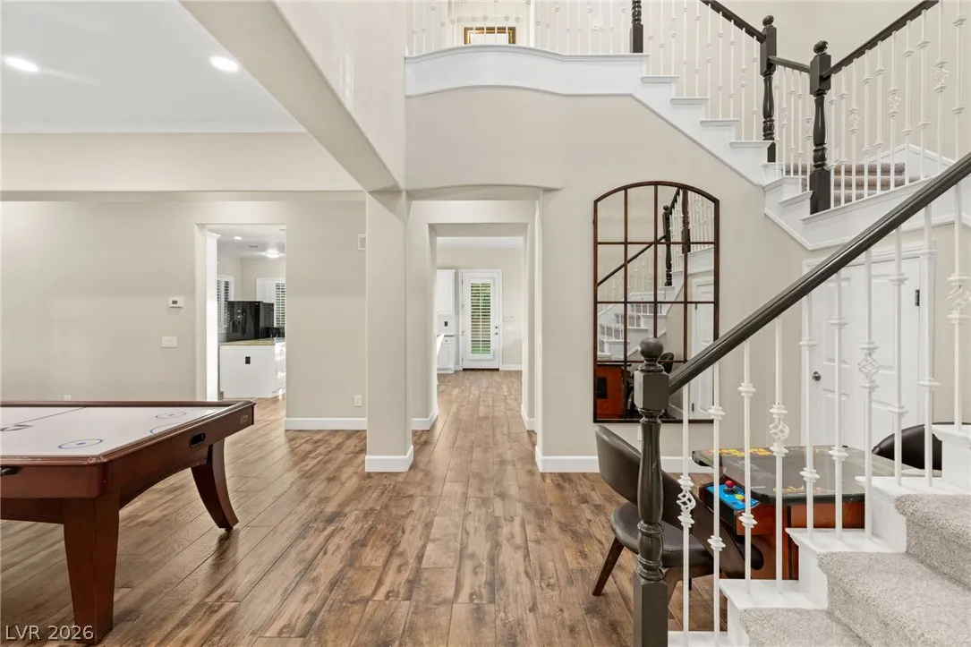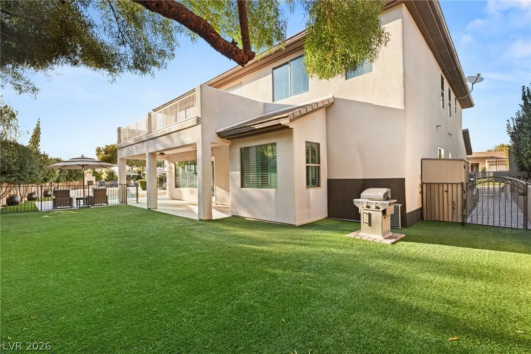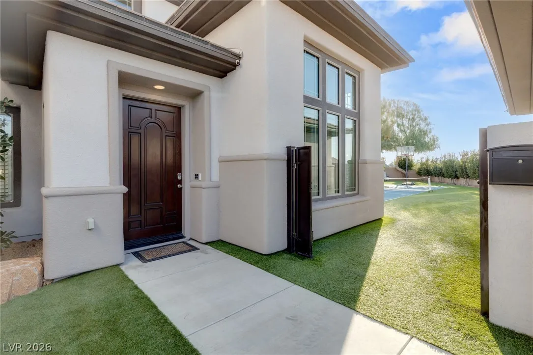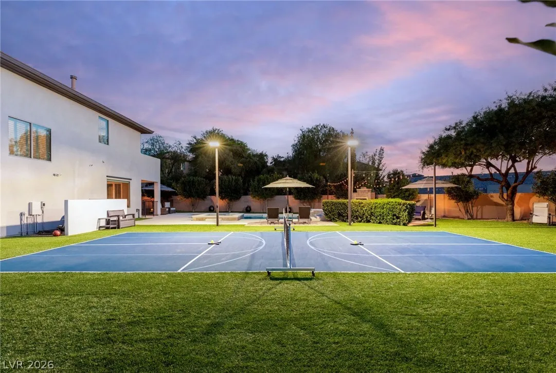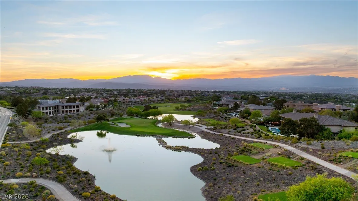 Located in the prestigious guard-gated Anthem Country Club, this exceptional estate at showcases luxury living on an expansive .41-acre pie-shaped lot with a truly private, park-like setting. The resort-style backyard is an entertainer’s dream—featuring a private Pickleball/sports court, heated pool and spa, outdoor fireplace, covered patio, and lush mature landscaping offering ultimate privacy and incredible curb appeal. Spanning approximately 4,000 square feet, this impeccably maintained residence offers 5 bedrooms +den +loft, 4.5 bathrooms, and a 3-car garage with air conditioning. The beautifully renovated kitchen is the heart of the home, complemented by porcelain wood-look flooring throughout and refined finishes at every turn. The primary suite is a true retreat, featuring a modernized spa-inspired bathroom and a private balcony with breathtaking Strip views. A rare opportunity to own a unmatched indoor-outdoor living in one of Henderson’s most sought-after communities.