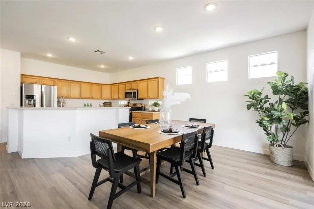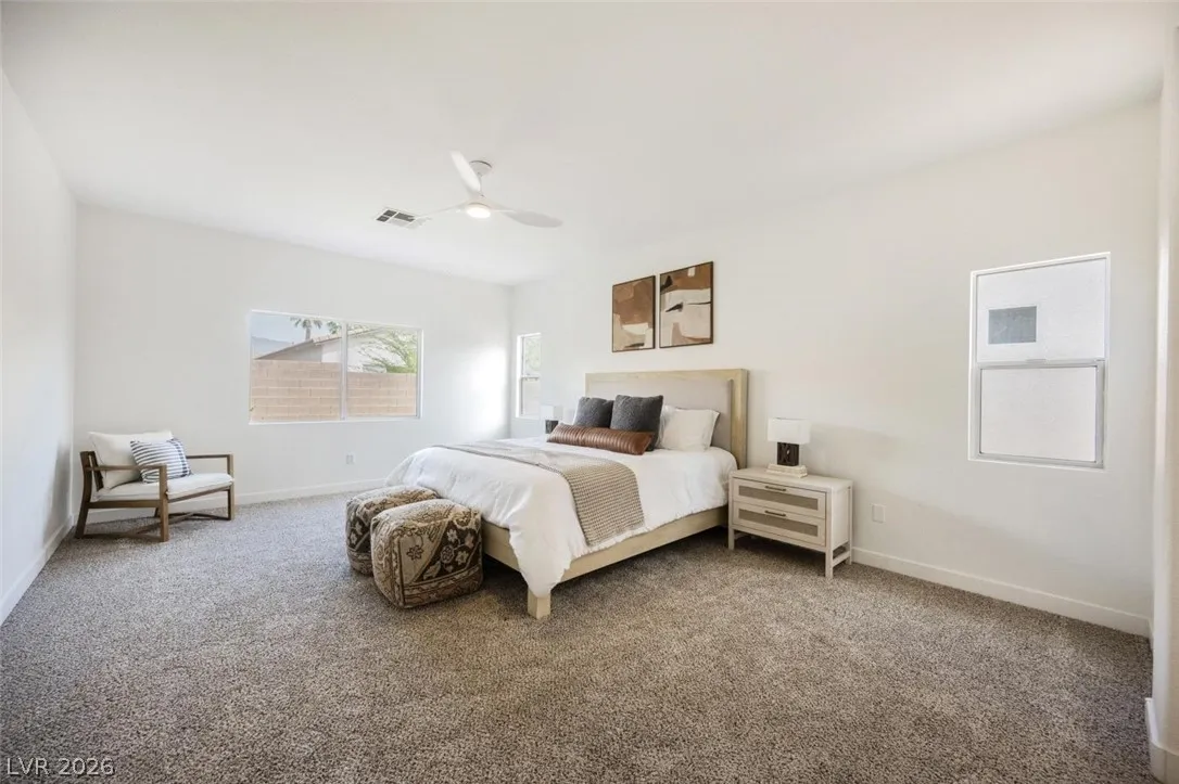 Welcome to this beautifully renovated single-story 4-bedroom, 3-bathroom home in the heart of North Las Vegas, offering modern comfort and effortless living. Thoughtfully updated throughout, this move-in-ready residence features a bright open-concept layout that seamlessly connects the living, dining, and kitchen areas—perfect for both everyday living and entertaining. The stylish kitchen showcases stainless steel appliances, sleek finishes, and ample cabinetry, creating a functional and inviting space. Spacious bedrooms provide flexibility for guests, a home office, or multigenerational living, while the updated bathrooms add a fresh, contemporary touch.