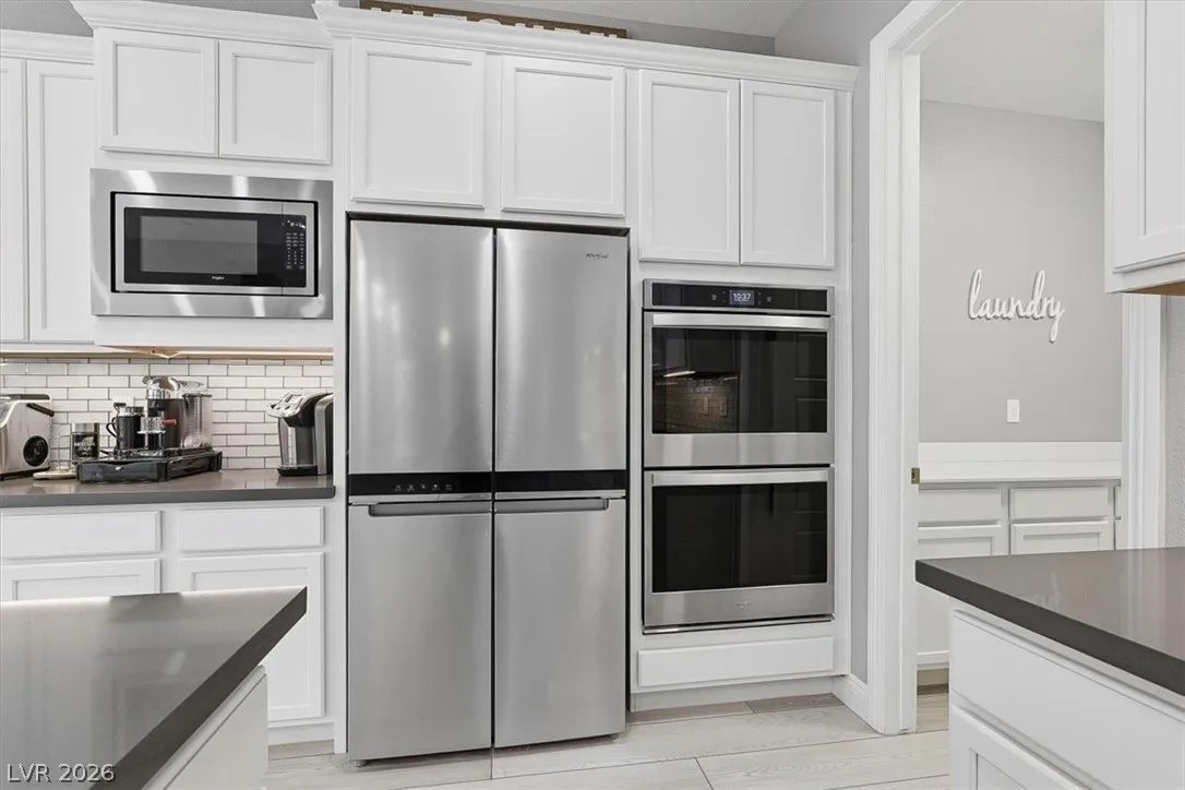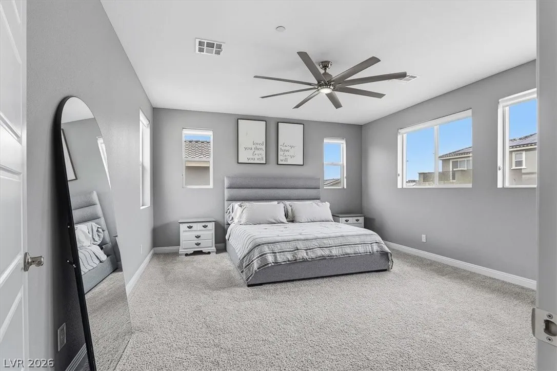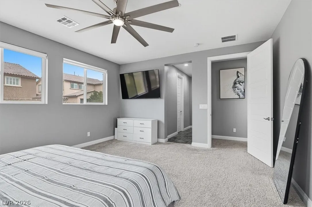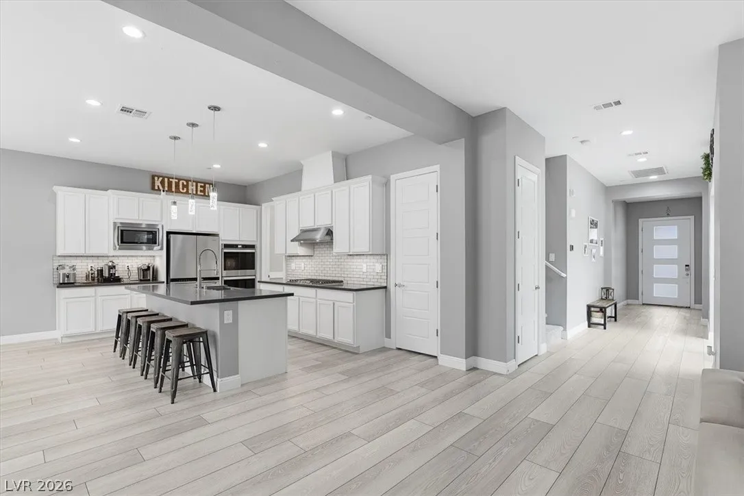 Welcome to 2562 Millburn in the highly desirable Vistamar community of Inspirada. This stunning Toll Brothers home offers 4 bedrooms, 3.5 baths, plus a loft and 2,974 sq. ft. of modern living, built in 2020. Designed for both entertaining and everyday comfort. Open floorplan with custom paint and flooring throughout. Oversized family room with a marble-accented fireplace and decorative wall. Chef’s dream gourmet kitchen features waterfall countertops, tile flooring, 42” cabinetry, a 36” five-burner gas cooktop, a 36” hood, GE appliances, and a spacious walk-in pantry. A downstairs bedroom with full bath adds flexibility for guests or multi-gen living. Upstairs, the expansive primary suite offers dual walk-in closets and a spa-like walk-in shower. Private rear yard with patio and sparkling pool/spa combo, perfect place to relax with family and friends. Enjoy Inspirada’s parks, trails, sports courts, clubhouse, fitness centers, and nearby shopping and dining.