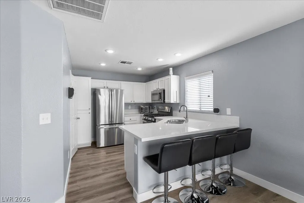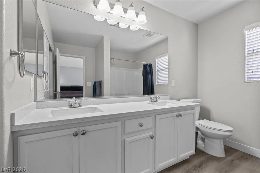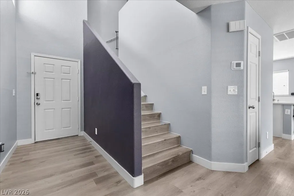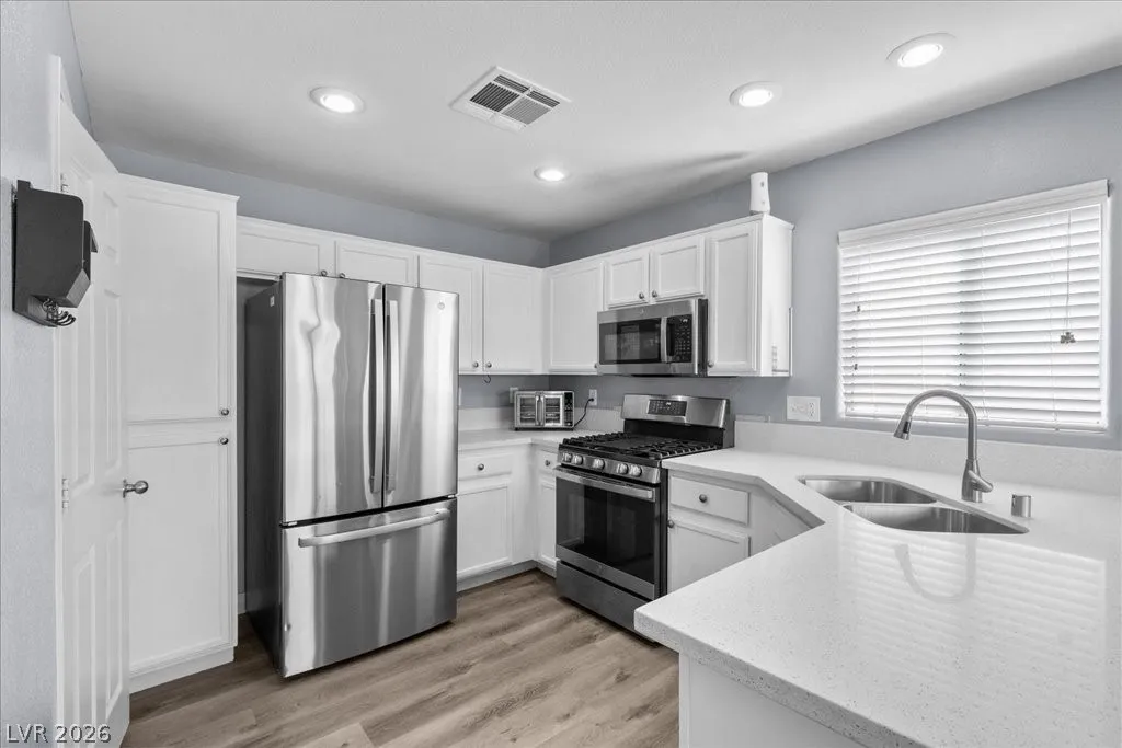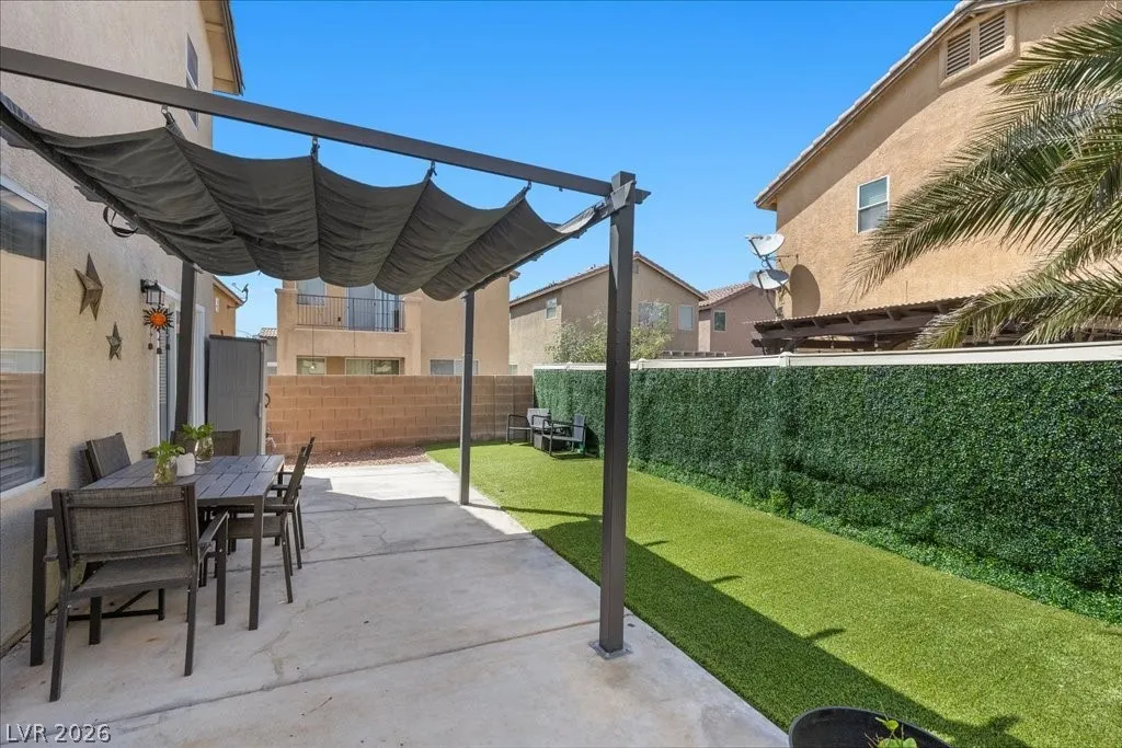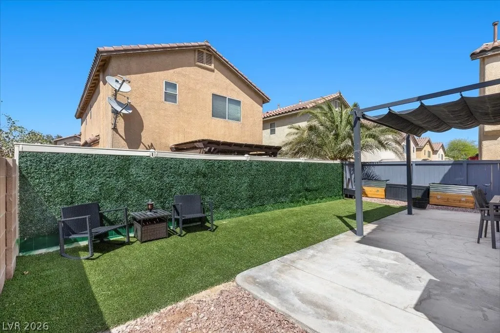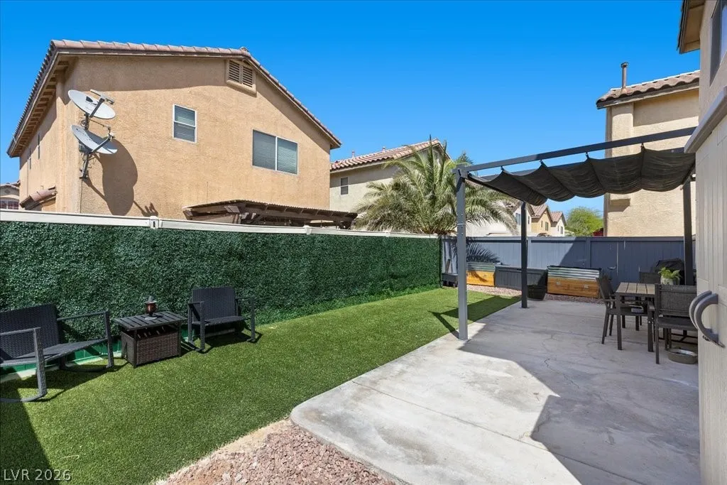 2 story SFR w/2car garage that has an extended driveway! corner cul-de-sac lot, desert landscaping, pergola in backyard & synthetic grass added in 2024. Microwave,stove and dishwasher new in 2023. AC new in 2023. Kitchen cabinets refaced with hardware. Granite countertops. Vinyl planking throughout. Sliding glass door to patio new in 2024. Newer fresh paint. Garage shelving stays. Shelving in laundry room. Rollout drawers in kitchen. Vaulted ceiling in primary bedroom.