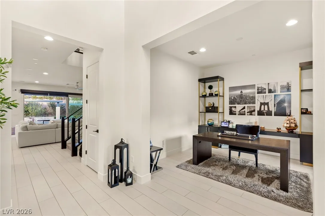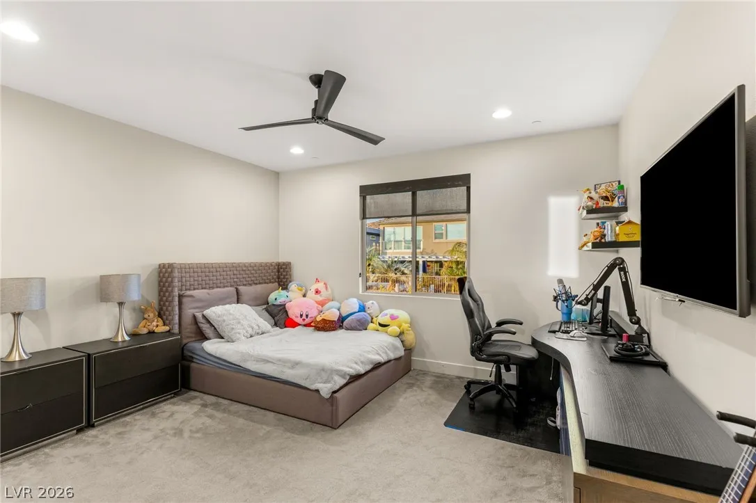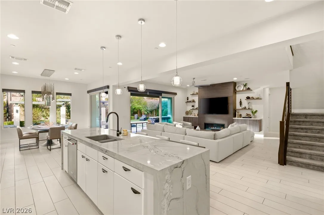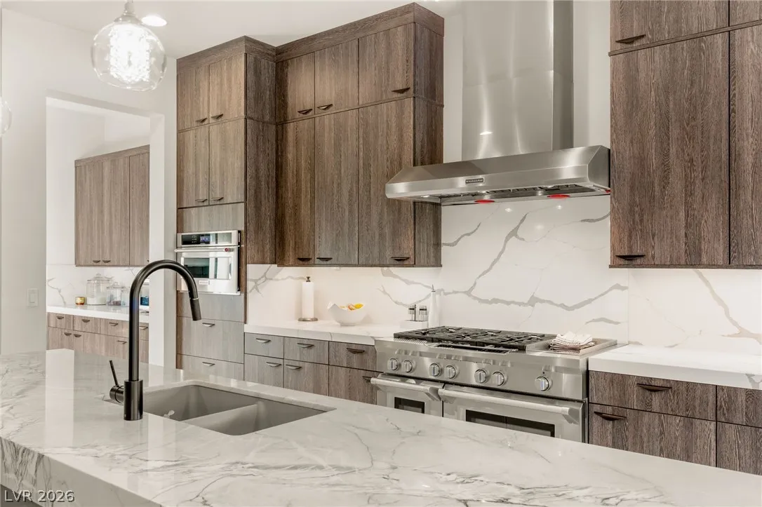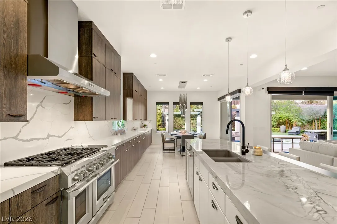 Model-level finishes and resort-caliber outdoor living define this exceptional residence. Designed with intention, the home features a true culinary kitchen with a professional KitchenAid range, built-in refrigerator, custom cabinetry, and premium Ferguson lighting throughout. The gathering room offers a statement fireplace with built-in media center, while a spacious loft and primary suite share a private balcony that elevates indoor-outdoor living. The primary retreat includes a sitting room and spa-inspired bath with freestanding tub, oversized custom shower, and California Closets. Enjoy whole-home sound system, smart home integration, automatic and blackout window coverings, new water filtration, and custom garage cabinetry. Outside, a tiled covered patio overlooks a private resort backyard with pool, spa, dramatic rain waterfall, outdoor kitchen, fire pit, mature trees for privacy, and café lighting. Elevated. Intentional. Unforgettable.