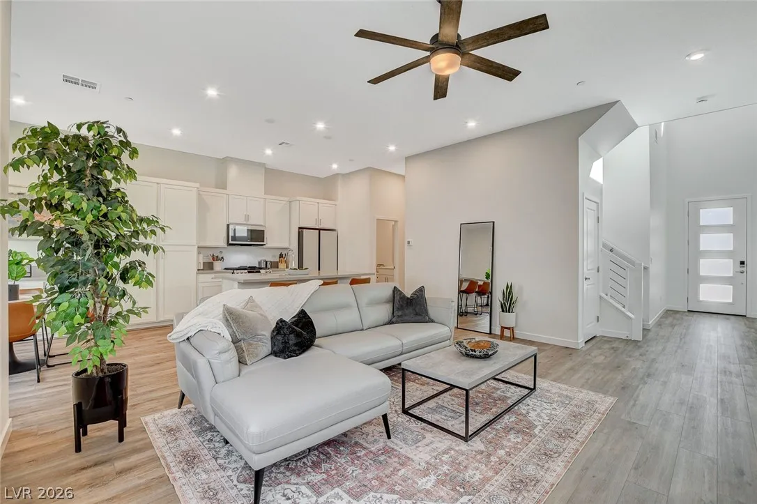Almost brand new TriPointe Townhome with a VERY RARE FULL SIZED DRIVEWAY and large backyard! Literally, one of the only townhomes in the entire master plan with a full sized driveway. Barely lived in! This home has huge entryway cathedral ceilings, 10-foot ceilings on the first floor living space, lots of natural light, amazing use of space, recessed LED lighting in all bedrooms, epoxy finished garage, tankless