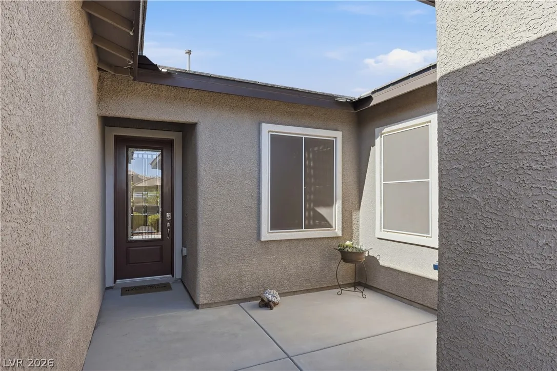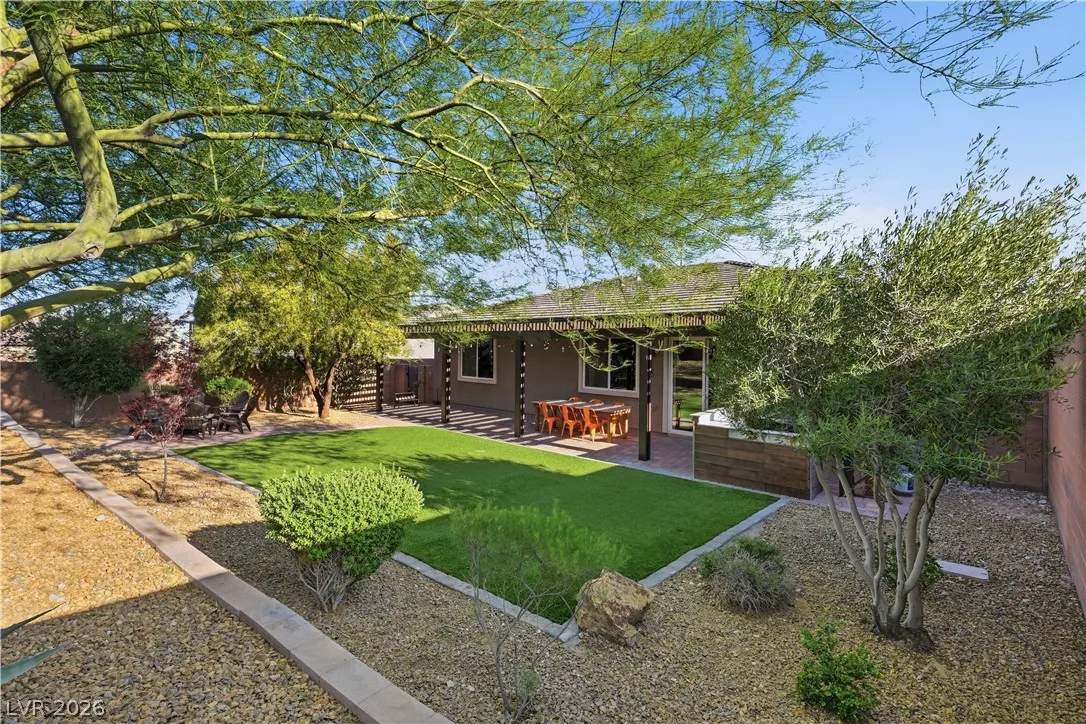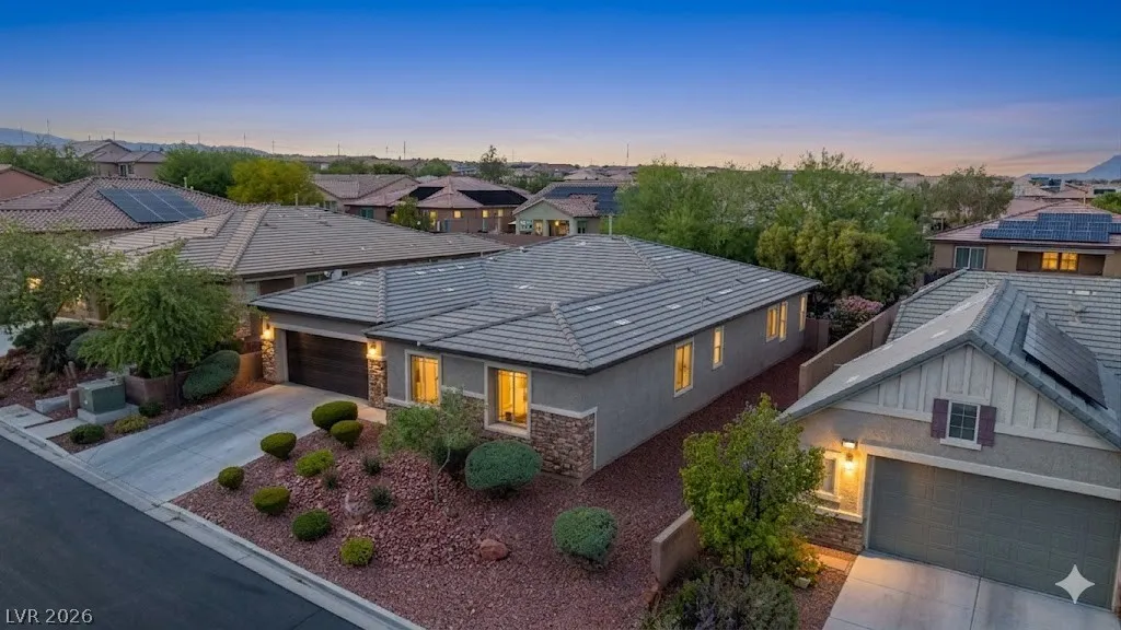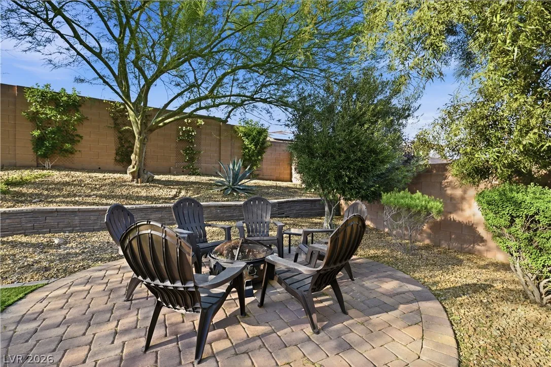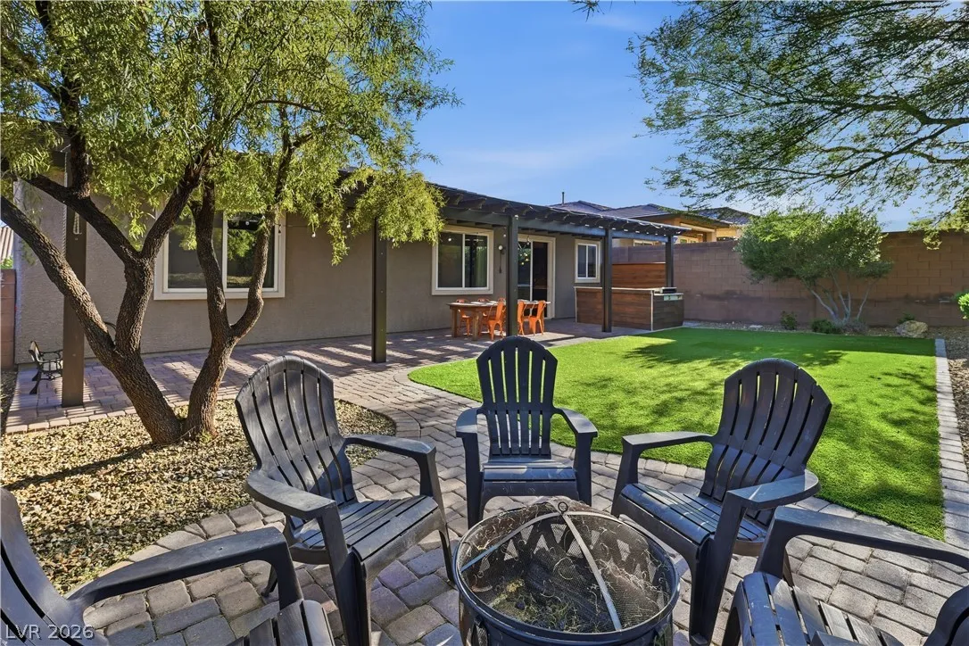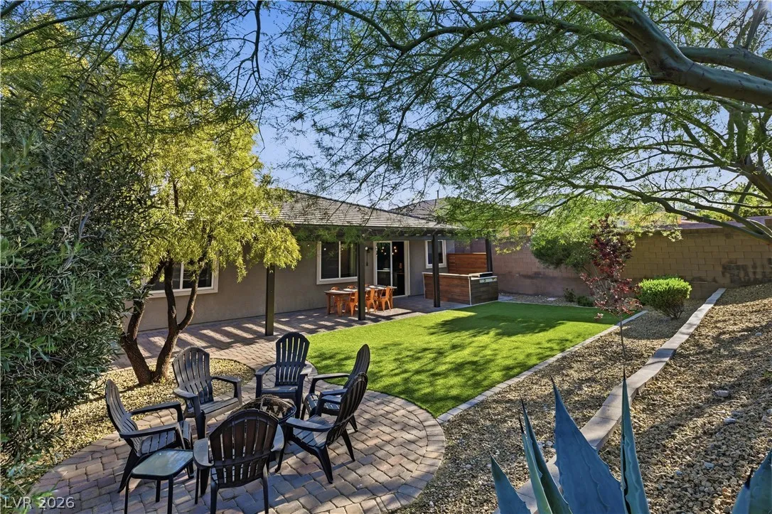 Located in gated High Point in Providence, this single-story home features a private courtyard entry, office, and open-concept living with tile flooring. Kitchen includes granite countertops, double ovens, cooktop, and walk-in pantry. The primary suite features double door entry, generous proportions, and a bathroom with dual sinks, a drop-in tub, walk-in shower, and walk-in closet. Two additional bedrooms are well-sized and share a full bath, with a separate powder room for guests, along with a secondary living space. The backyard is a true highlight, designed for both privacy and entertaining. Mature, established trees create a natural barrier, offering a level of seclusion that is hard to find. The covered patio extends the living space outdoors, complemented by pavers, a built-in barbecue, and a fire pit that make the yard feel like a private retreat, ideal for hosting or everyday use. Additional highlights include a two-car garage with storage and a water softener system.