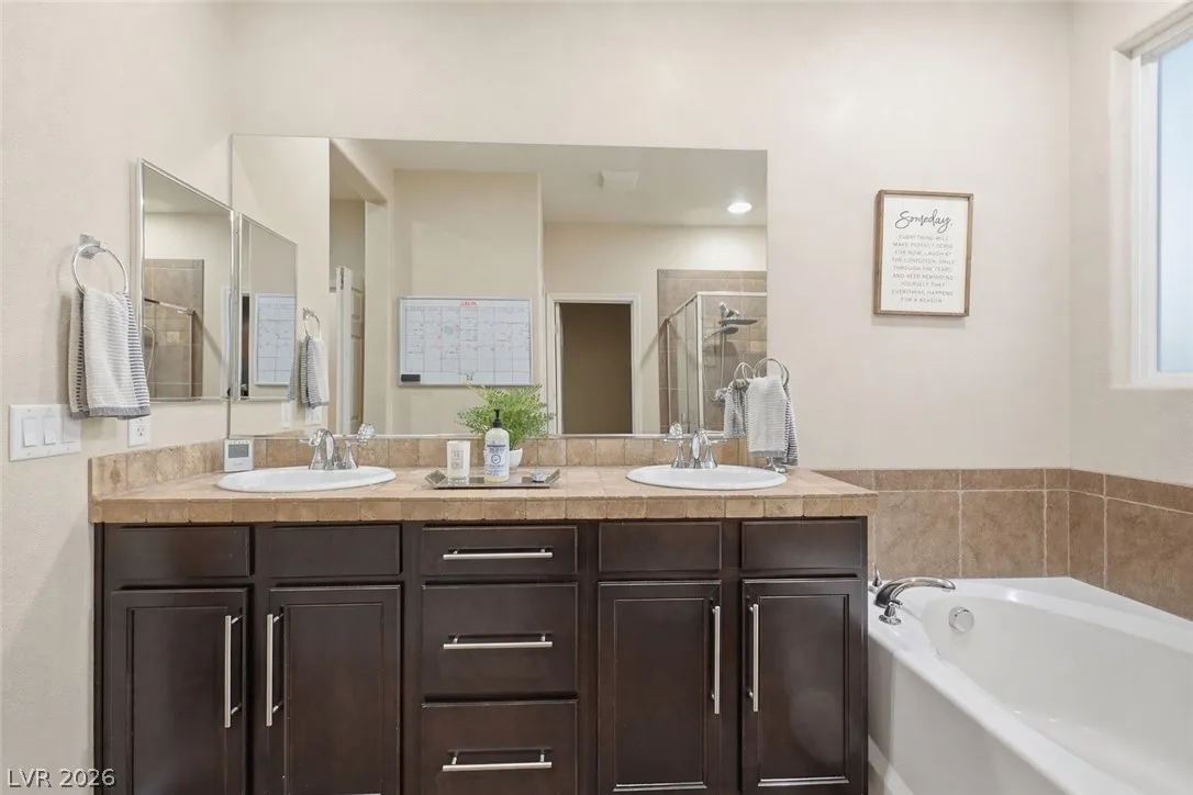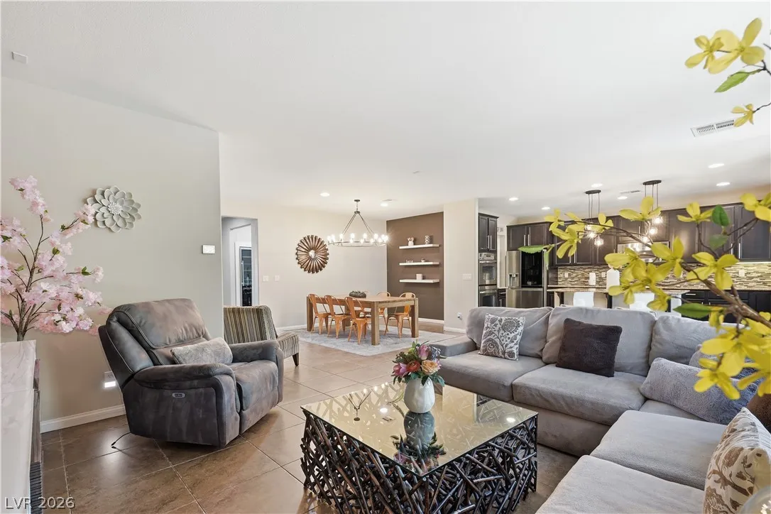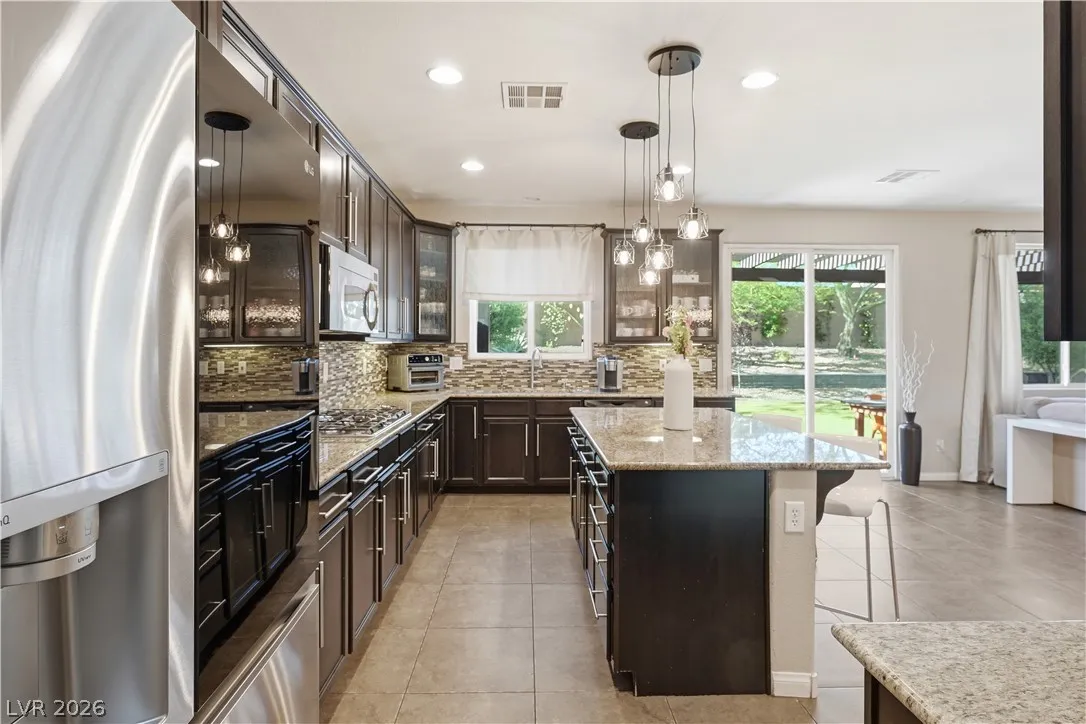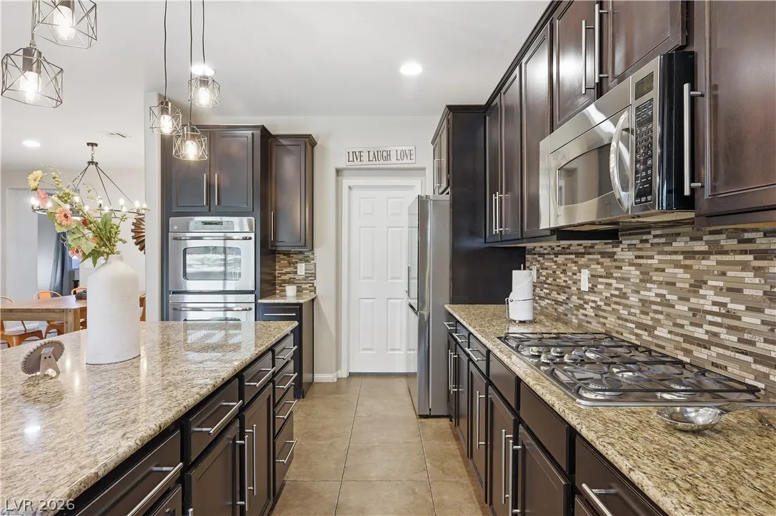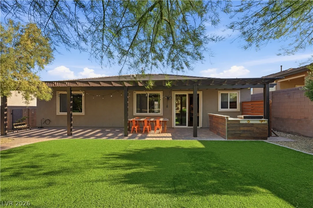 Located in gated High Point in Providence, this single-story home features a private courtyard entry, office, and open-concept living with tile flooring. Kitchen includes granite countertops, double ovens, cooktop, and walk-in pantry. The primary suite features double door entry, generous proportions, and a bathroom with dual sinks, a drop-in tub, walk-in shower, and walk-in closet. Two additional bedrooms are well-sized and share a full bath, with a separate powder room for guests, along with a secondary living space. The backyard is a true highlight, designed for both privacy and entertaining. Mature, established trees create a natural barrier, offering a level of seclusion that is hard to find. The covered patio extends the living space outdoors, complemented by pavers, a built-in barbecue, and a fire pit that make the yard feel like a private retreat, ideal for hosting or everyday use. Additional highlights include a two-car garage with storage and a water softener system.
