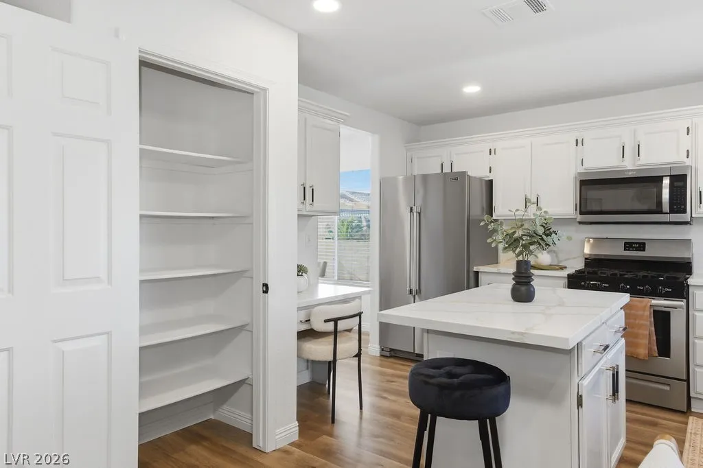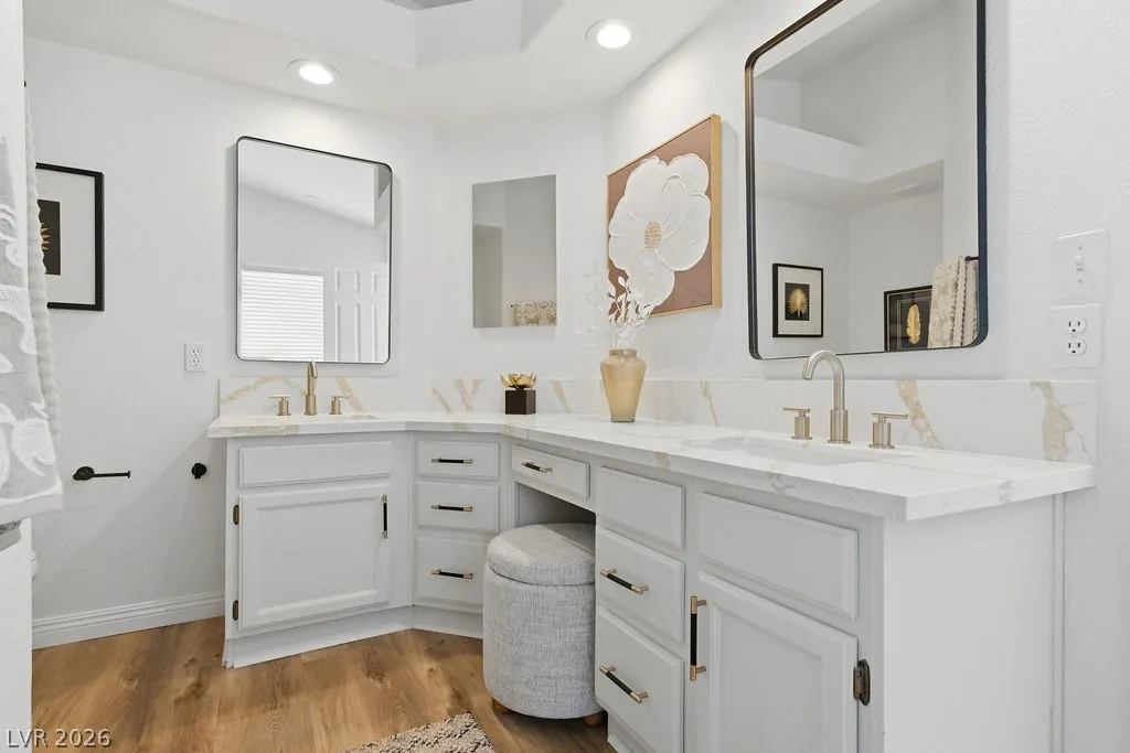 RARE FIND IN LAS VEGAS! THIS FULLY REMODELED HOME OFFERS INCREDIBLE FLEXIBILITY WITH A FEELING OF “SEPARATE QUARTERS” WING FEATURING 2 BEDROOMS AND A FULL BATH DOWNSTAIRS—PERFECT FOR GUESTS OR MULTI-GENERATIONAL LIVING. SITUATED IN A SPACIOUS CORNER LOT JUST MINUTES FROM LAKE LAS VEGAS, THIS PROPERTY COMES WITH NO HOA AND PLENTY OF ROOM FOR ALL YOUR TOYS, INCLUDING RV AND BOAT PARKING. INSIDE, YOU’LL FIND 5 FULL BEDROOMS AND 3 FULL BATHROOMS, ALONG WITH A FAMILY ROOM, LIVING ROOM, AND FORMAL DINING AREA. THE HOME HAS BEEN COMPLETELY UPGRADED WITH LUXURY VINYL PLANK FLOORING, NEW CARPET, QUARTZ COUNTERTOPS, STAINLESS STEEL APPLIANCES, RECESSED LIGHTING THROUGHOUT, AND CUSTOM FINISHES IN BOTH THE KITCHEN AND BATHROOMS. WITH WALK-IN CLOSETS AND THOUGHTFUL UPGRADES THROUGHOUT, THIS HOME TRULY HAS IT ALL. DON’T MISS THIS RARE OPPORTUNITY—THIS ONE WILL NOT LAST LONG!