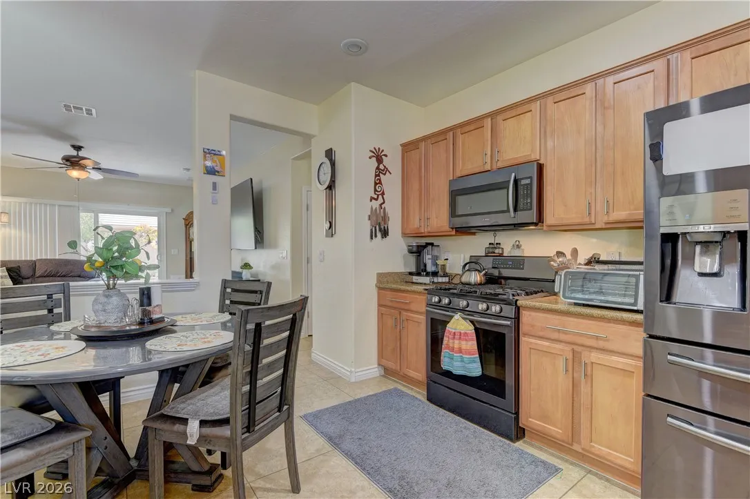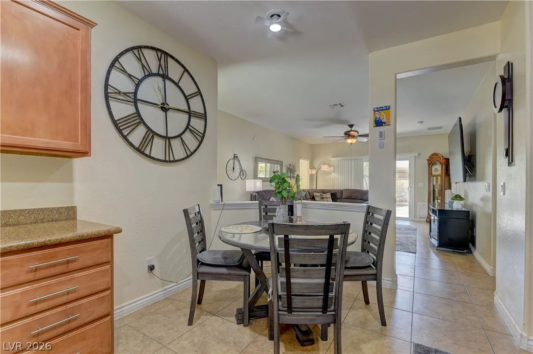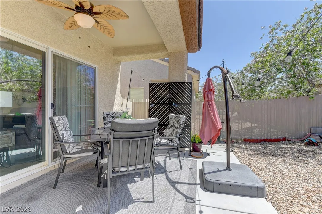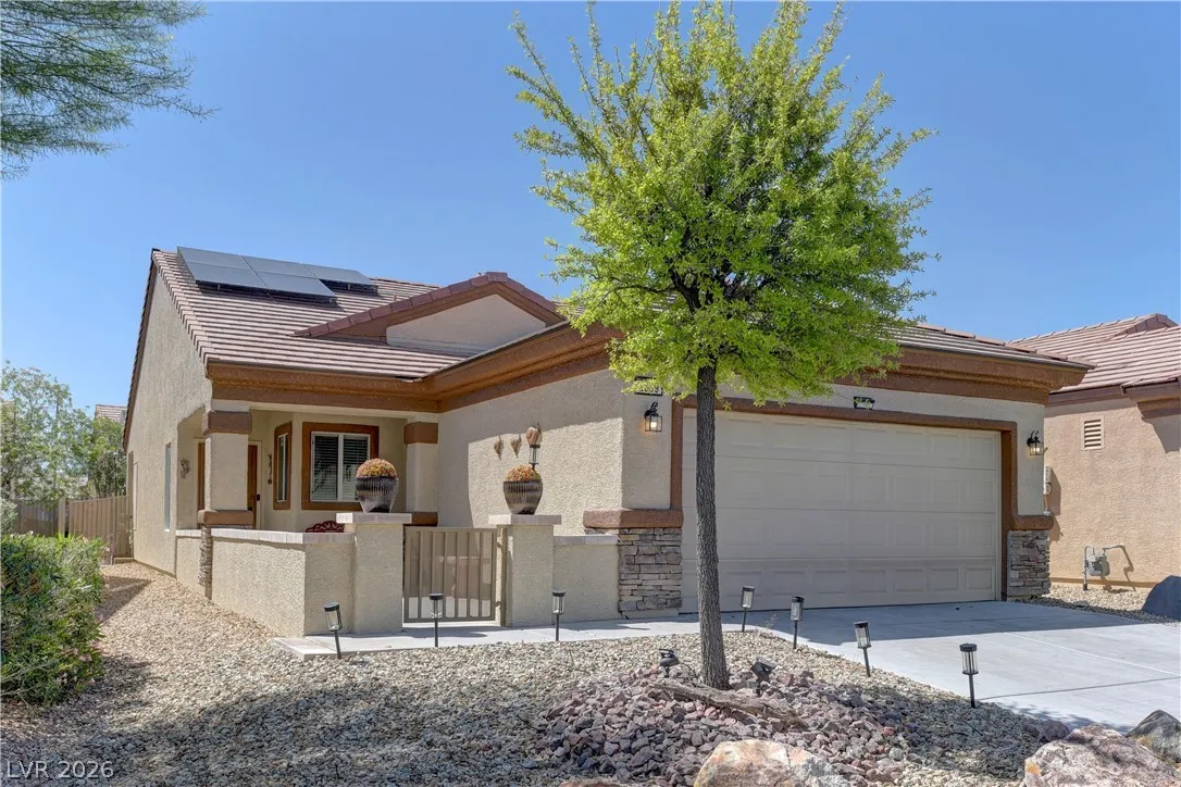 Beautiful home in the highly desirable Sun City Aliante community, featuring the popular Heather model and an open-concept floor plan. This home includes all appliances, a charming front courtyard patio, and a fully fenced backyard with a covered patio—perfect for relaxing or entertaining. Enjoy resort-style living with access to a recreation center offering state-of-the-art fitness equipment, an indoor pool, tennis courts, and a wide variety of classes, clubs, and social activities. The community also features a public golf course and is conveniently located near shopping, dining, casinos, and major highways. This will not last!!!
