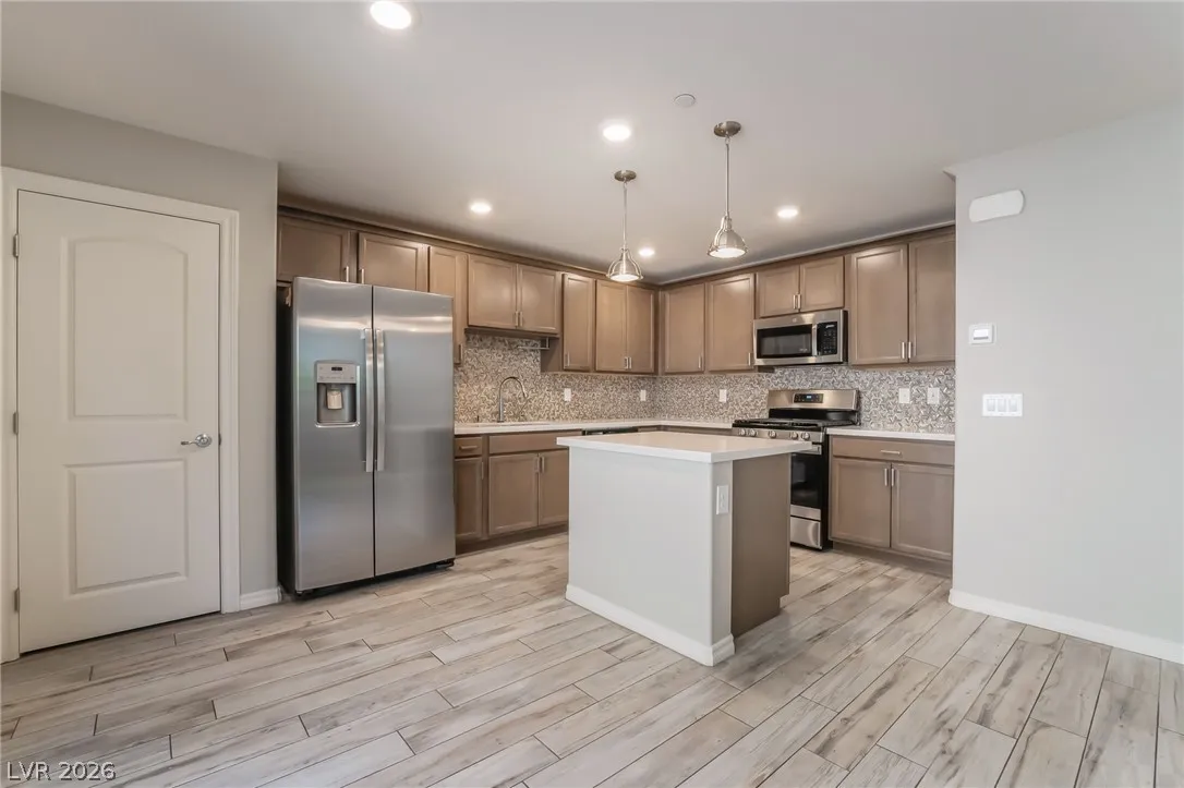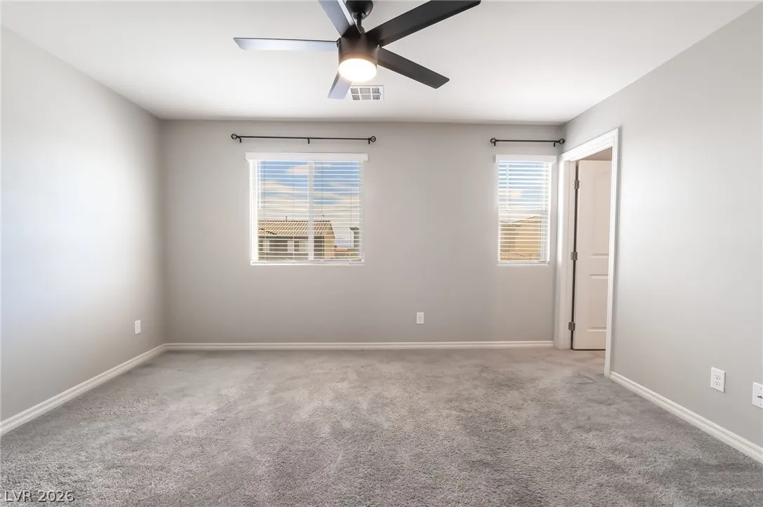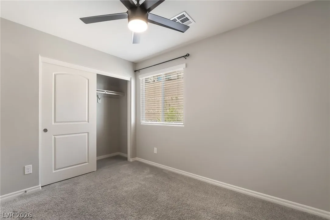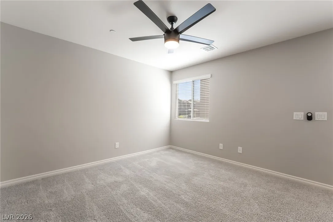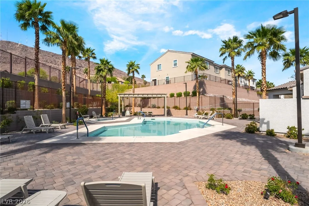 This thoughtfully designed two-story home showcases a modern open-concept layout with tile flooring throughout the main level, creating a cohesive and inviting living space. The kitchen stands out with custom cabinetry, a large island, quartz countertops, and stainless steel appliances, offering both style and functionality for daily living and entertaining. Upstairs features a versatile loft area, ideal for a home office, media space, or additional lounge. The primary suite includes a walk-in closet and a well-appointed ensuite bath with dual sinks and a walk-in shower, while the secondary bedrooms are comfortably sized. The backyard is finished with pavers and artificial turf, providing a clean, low-maintenance outdoor setting.