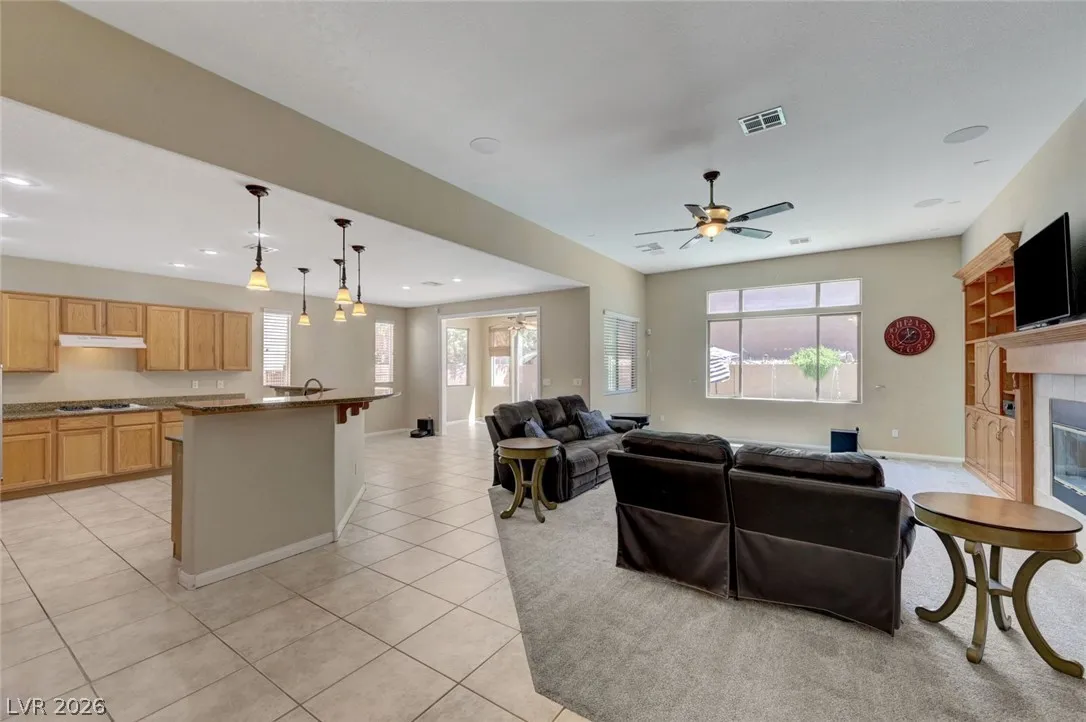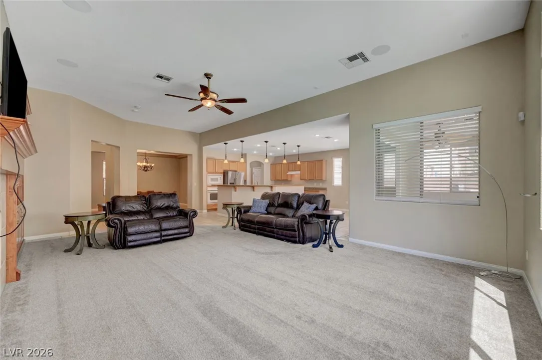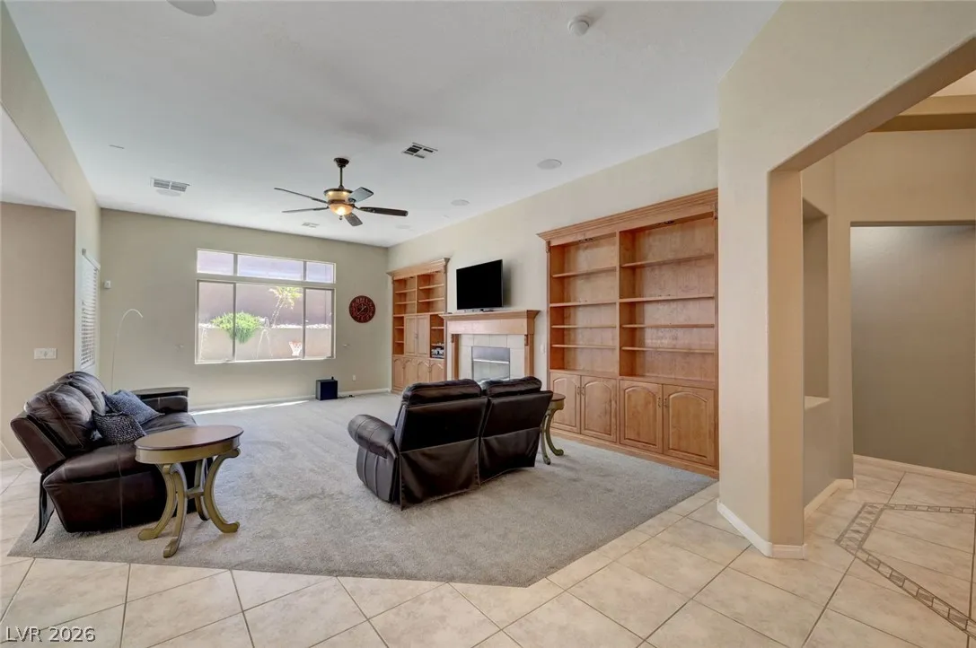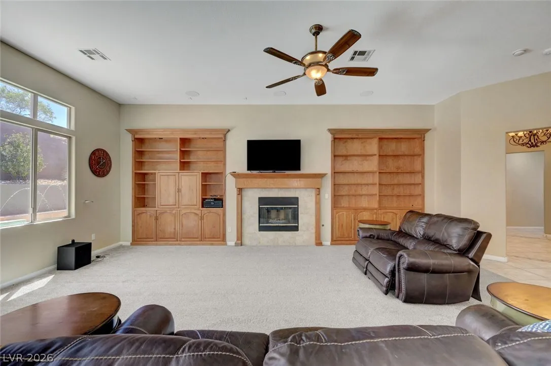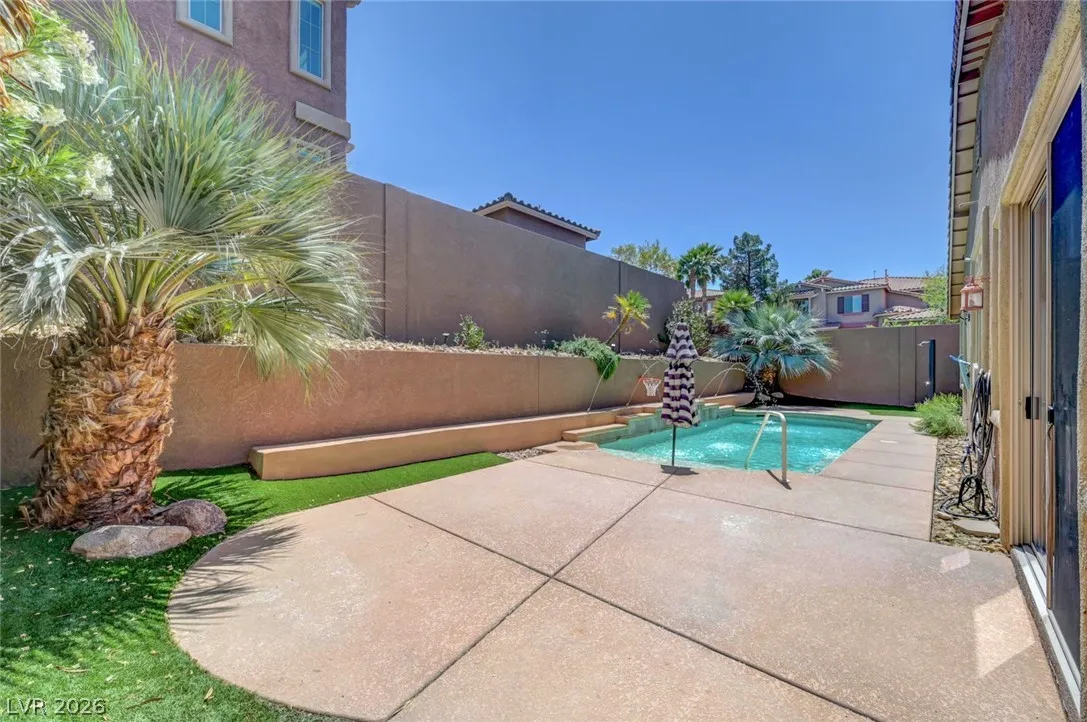 Beautiful single story home on a generous corner lot featuring a spacious open floor plan with vaulted ceilings. This move in ready gem offers a private primary suite, formal dining room, and an inviting living room with custom built-in entertainment center, surround sound, and a cozy fireplace. The large, airy kitchen showcases granite countertops, a center island, abundant cabinetry, and includes all appliances. Enjoy seamless indoor/outdoor living with a 220 sqft sunroom overlooking your backyard oasis – complete with a heated pool, spa jets, waterfall, and solar pool shower, all enhanced by paid off iSwim Solar Heating. Additional highlights include dual AC climate control for year round comfort, EV charging, a peaceful courtyard, and a 3-car garage with 1 car garage separate. Ideally & conveniently located near both schools & Heritage Park, this home reflects true pride of ownership and is perfect for both relaxing and entertaining. A true must see!