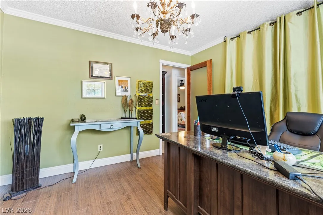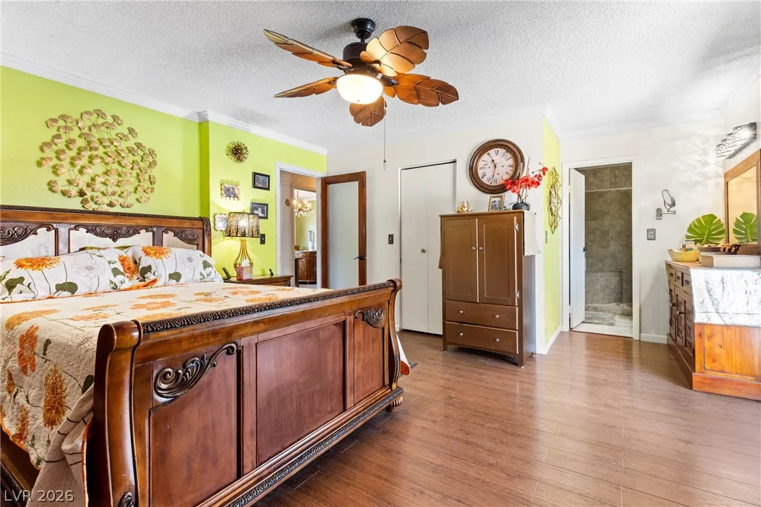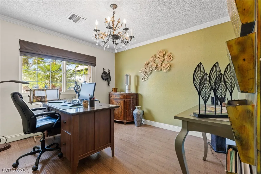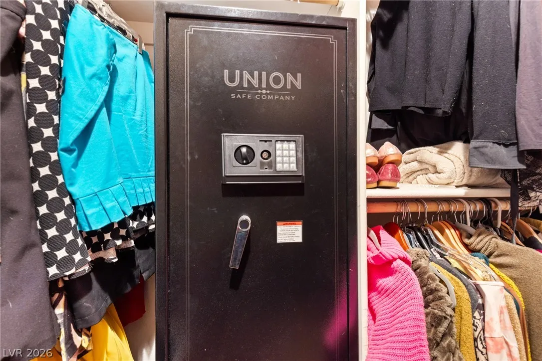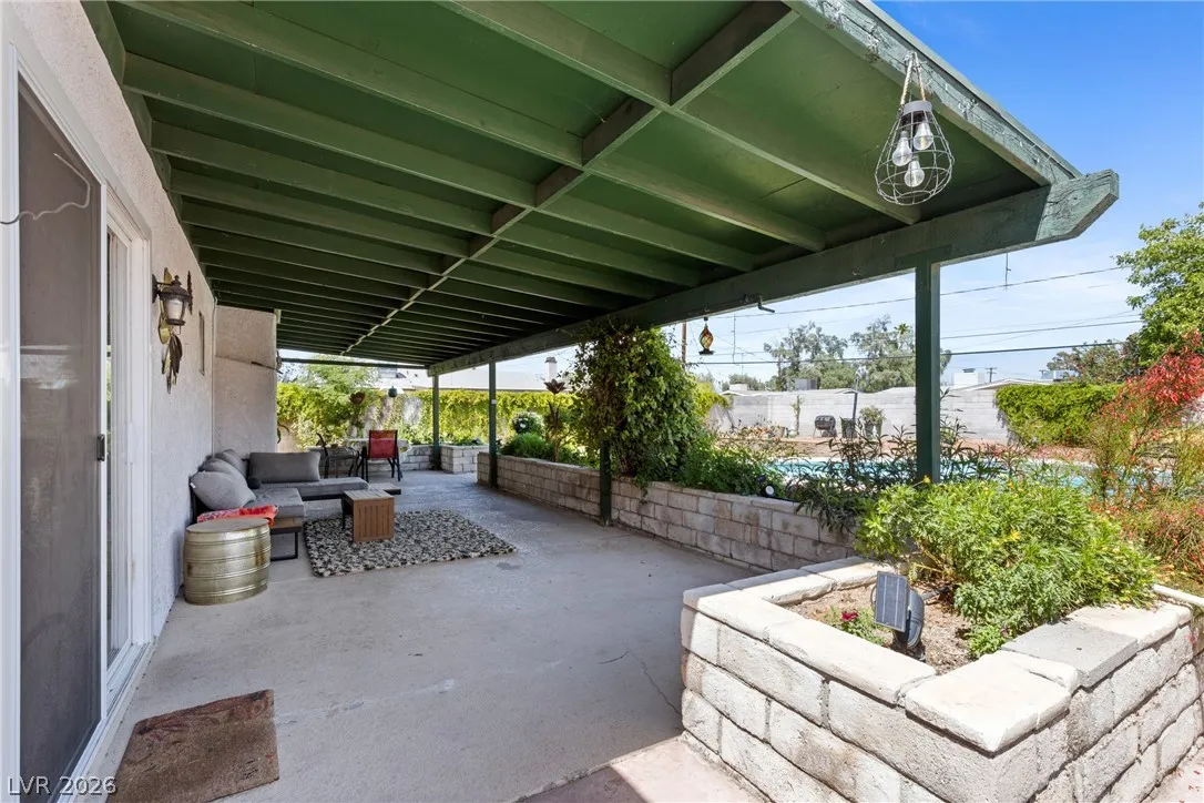 Welcome to this charming single-family residence nestled on a HUGE lot over 9,100 square feet in a sought-after Las Vegas neighborhood with **no HOA**! Perfect for entertaining or relaxing, the expansive backyard boasts a large swimming pool and a spacious covered patio—ideal for enjoying those sunny days. Parts of the exterior of the home is lined with gorgeous mature Bougainvillea. The open floor plan inside seamlessly connects the living areas, creating an inviting atmosphere for gatherings. Featuring 3 bedrooms and 2 bathrooms, the third bedroom is currently styled as an office, offering flexible living options to suit your needs. A safe in the primary closet adds extra convenience and security. Enjoy the ease of a two-car garage and ample parking space. Just down the street, you’ll find a beautiful park with a playground, dog park, basketball courts, and a baseball field. Plus, you’re just minutes from the 95 highway and local amenities. Don’t miss this exceptional opportunity!