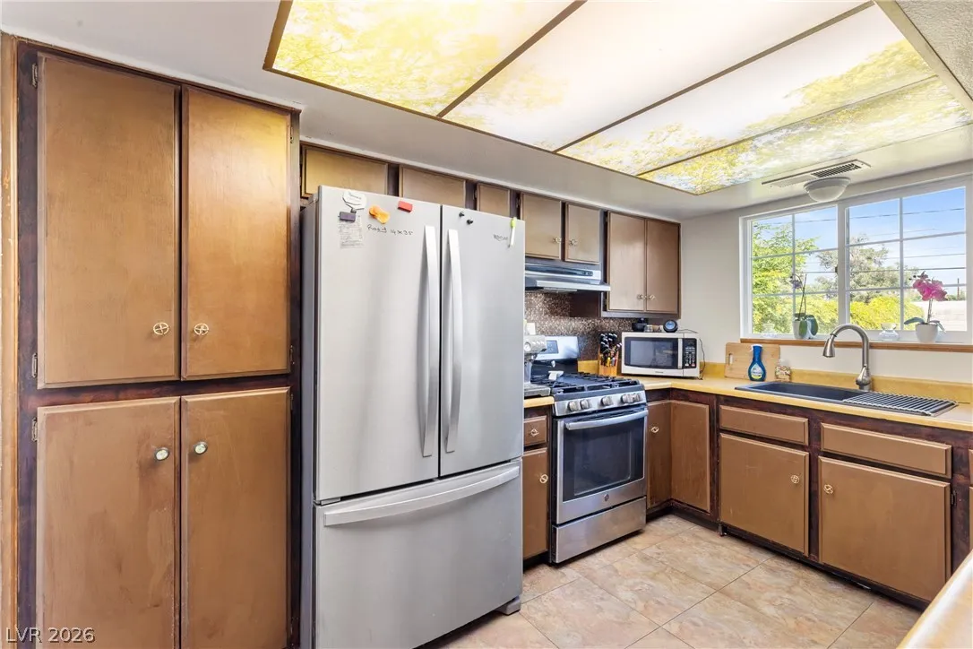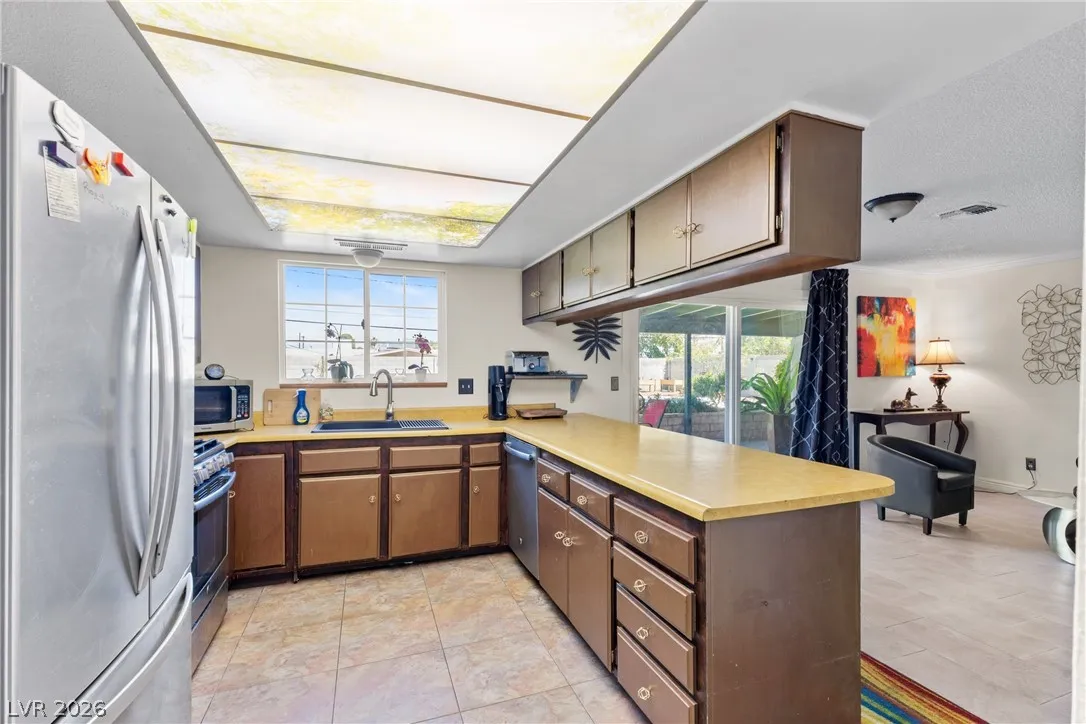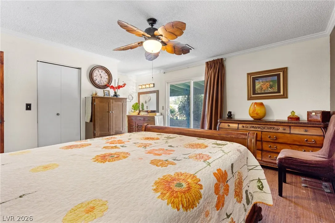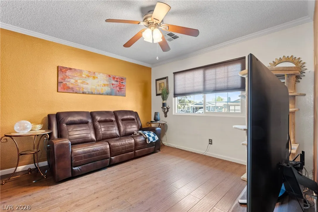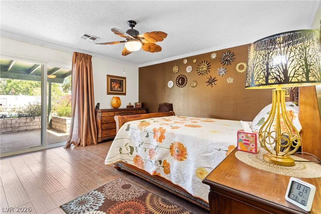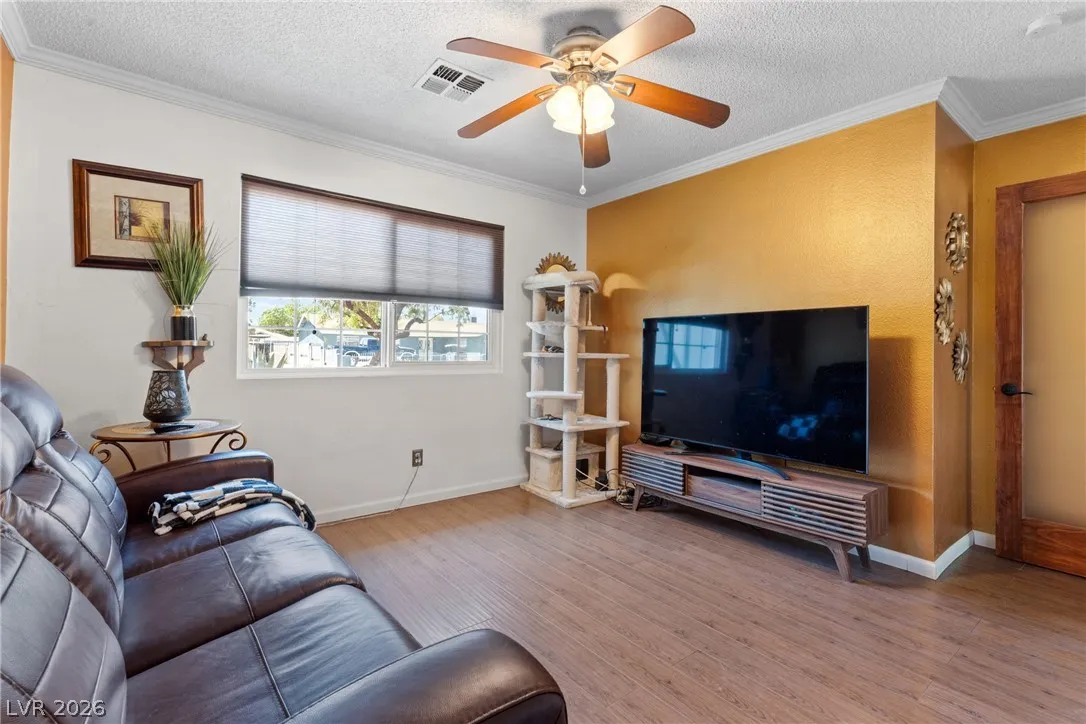 Welcome to this charming single-family residence nestled on a HUGE lot over 9,100 square feet in a sought-after Las Vegas neighborhood with **no HOA**! Perfect for entertaining or relaxing, the expansive backyard boasts a large swimming pool and a spacious covered patio—ideal for enjoying those sunny days. Parts of the exterior of the home is lined with gorgeous mature Bougainvillea. The open floor plan inside seamlessly connects the living areas, creating an inviting atmosphere for gatherings. Featuring 3 bedrooms and 2 bathrooms, the third bedroom is currently styled as an office, offering flexible living options to suit your needs. A safe in the primary closet adds extra convenience and security. Enjoy the ease of a two-car garage and ample parking space. Just down the street, you’ll find a beautiful park with a playground, dog park, basketball courts, and a baseball field. Plus, you’re just minutes from the 95 highway and local amenities. Don’t miss this exceptional opportunity!