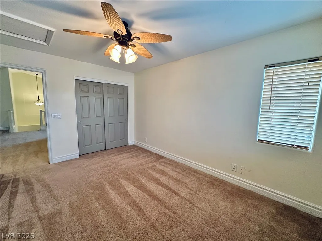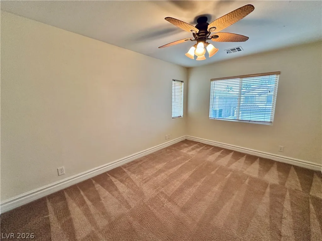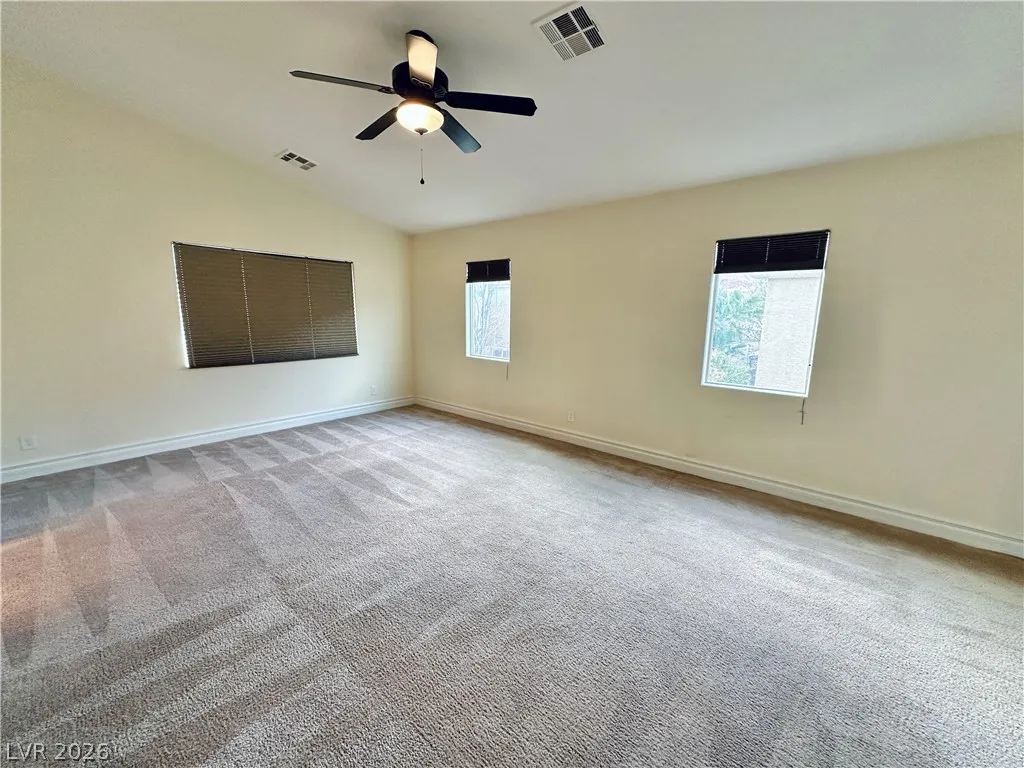 Rhodes Ranch guard gated golf course community home with a bedroom & full bath downstairs! Upstairs the home has an open & spacious loft! Very large master bedroom and bathroom with a huge closet! Trash & Sewer cost of $52 already included in rent. Docs must be submitted with apps: Past 3 months pay stubs or bank statements (W2 and 1099 will not be accepted), Gov issued ID, Social Security card copy (or official document showing full social). Pet deposit would be $300 per pet under 25lbs, and if more than 26lbs will be based on landlord’s approval. Pet rent may apply depending on the breed. Application will be processed once all required documents are received. Property to be held for max 14 days after approval and holding deposit received.
