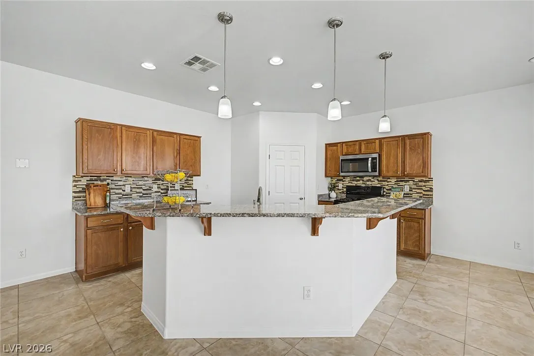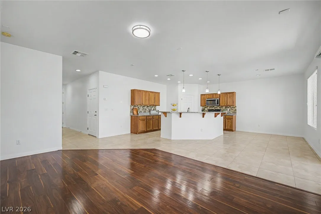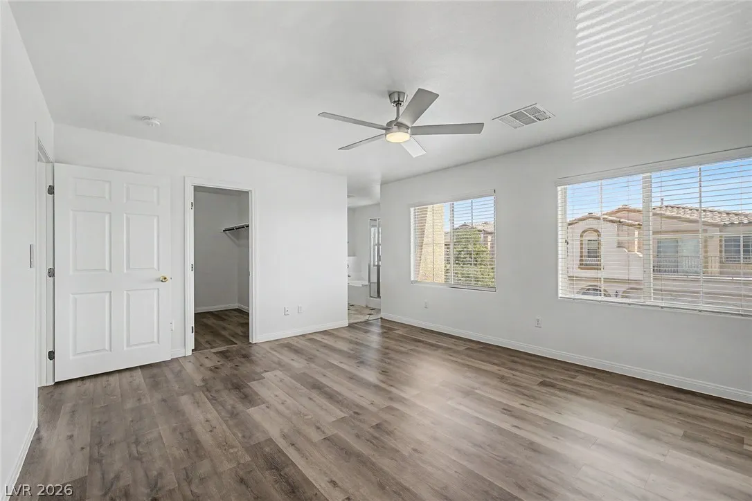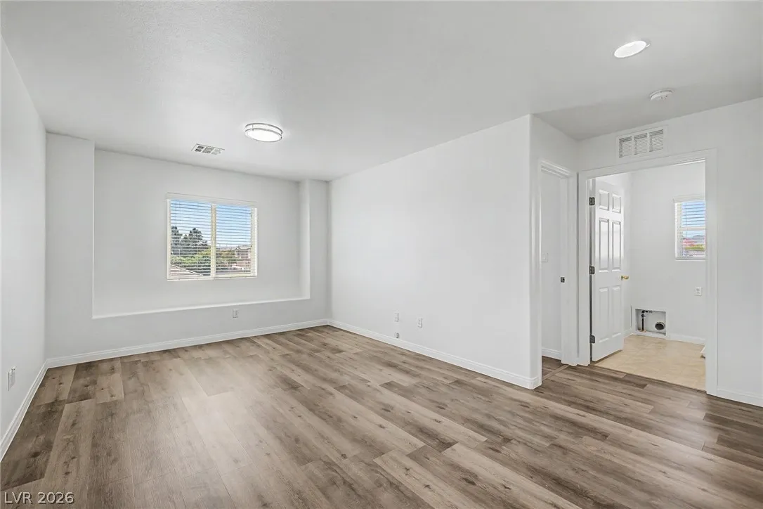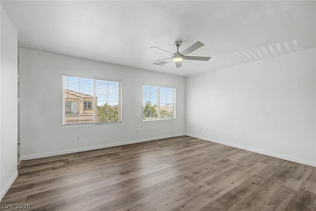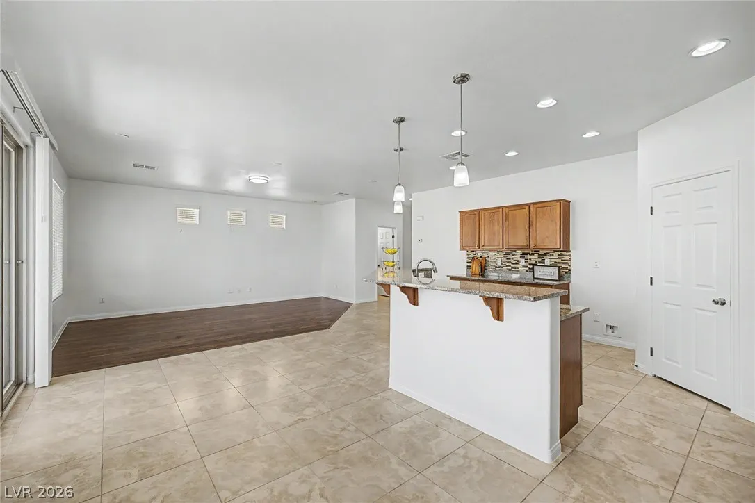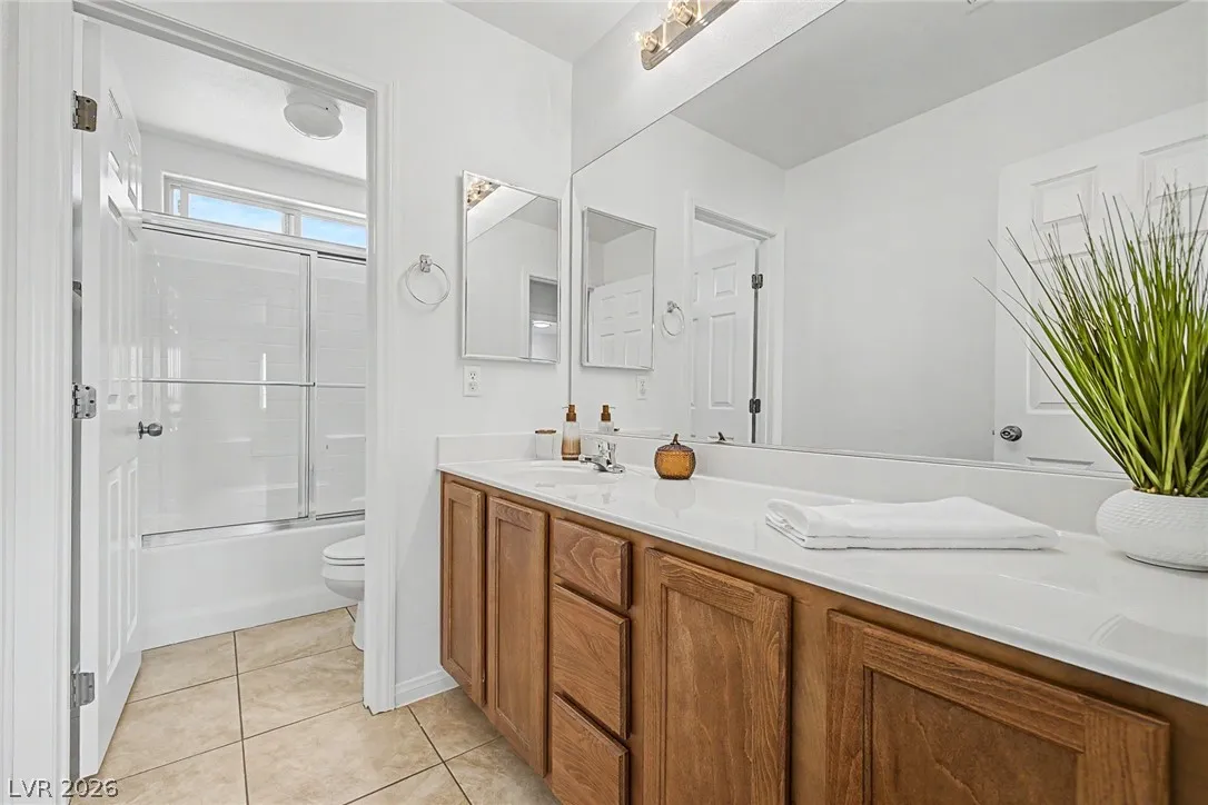 Turnkey 3-bedroom home with a 2-car garage in the desirable Southwest! Light-filled open floor plan with freshly painted interiors and new updated lighting creates a clean, modern feel you will love. No carpet—stylish tile and wood-look flooring throughout, plus ceiling fans and window blinds. Kitchen features granite countertops, stainless steel appliances, pantry, mosaic backsplash, and custom island with breakfast bar. Main level includes chic powder room. Upstairs offers spacious loft ideal for office or media room. Large primary suite with walk-in closet and soaking tub. Private backyard with covered patio and play area. Extra-large driveway fits multiple vehicles and large trucks. Prime Southwest location near 215 Beltway, minutes to airport and Strip, with shopping, dining, and entertainment nearby. Super clean, move-in ready—this one won’t last! Low-maintenance living. Ideal for homeowners or investors alike—schedule your showing today!