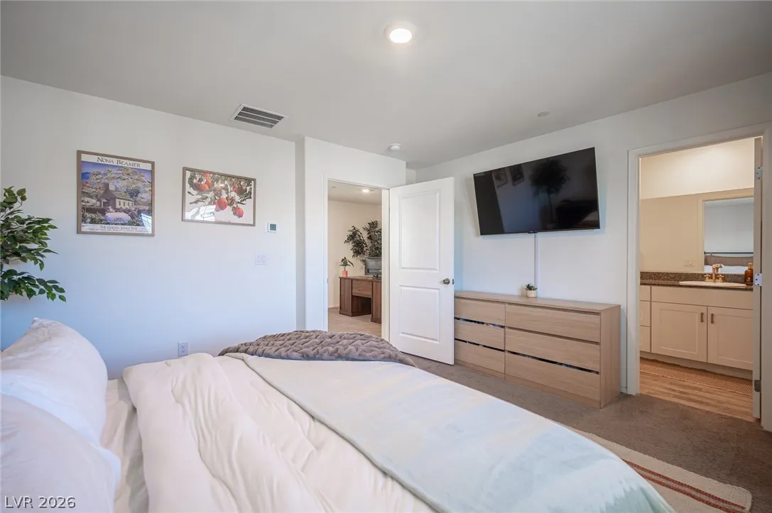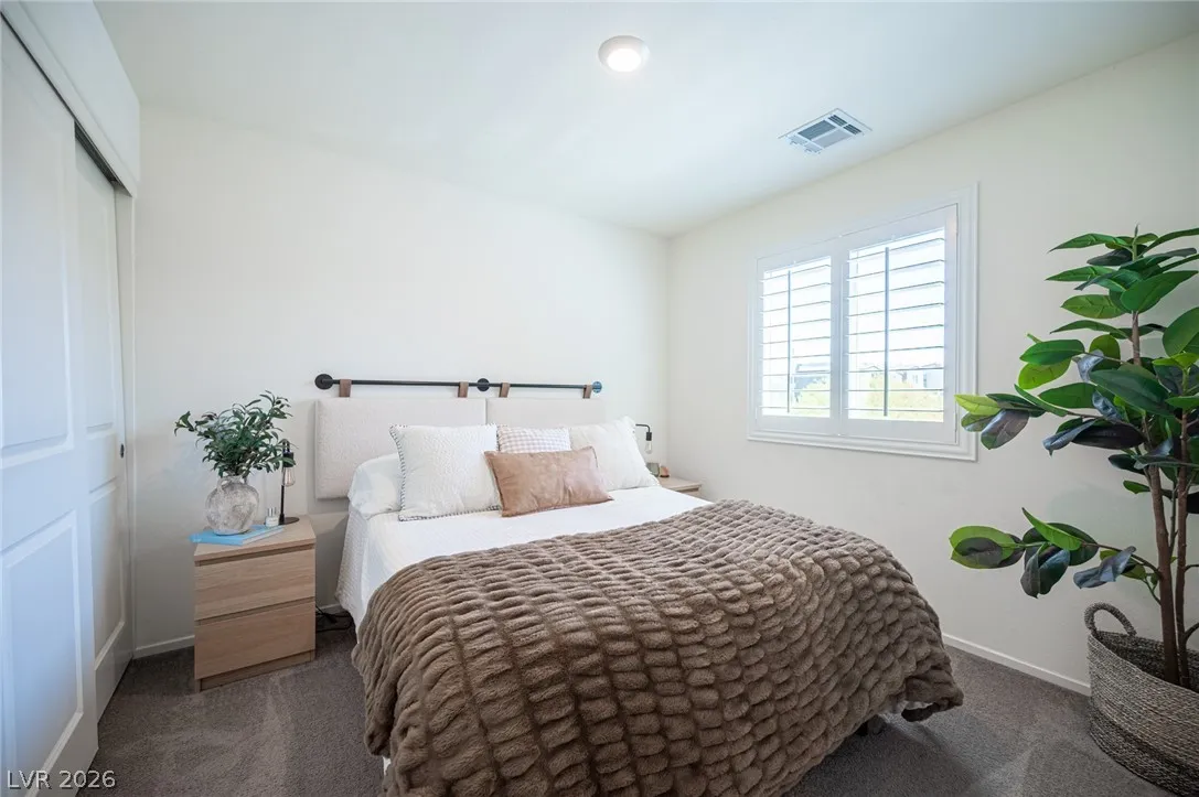 Welcome to West Henderson. This charming 3 bedroom 2 bath home is better then new and shows like a model.This home has been meticulously kept. Built in 2022 some of this home features include, plantation shutters throughout, stainless steel appliance package, luxury vinyl plank flooring first level. Spacious Primary bedroom, loft, pantry. Stylish shiplap walls, washer and dryer included making this home completely move in ready. Community features include pool and pet park. Stunning mountain views, Conveniently located to all the amazing dinning and shopping St. Rose Square has to offer.