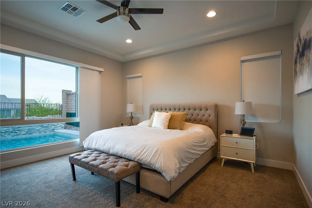 *Premium, Elevated Homesite *Pool/Spa *View Fencing *SID/LID Paid in Full. Reverence at Reverence Village, Summerlin North. Single story Trieste floor-plan with rear extension upgraded. Pride of ownership throughout. Whole-house Platinum Carbon Air Purification and Humidifier system promotes comfort and well-being. Carpets recently upgraded. Glass door sliders provide for seamless indoor/outdoor living. A spacious, private backyard provides the ideal setting whether entertaining guests or lounging in relaxation.