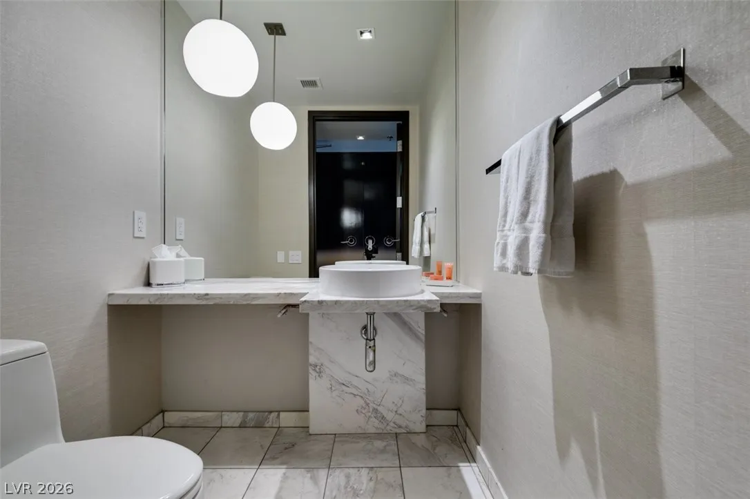 GORGEOUS, WELL MAINTAINED, PALMS PLACE 1 BEDROOM CONDO LOCATED ON THE 31ST FLOOR WITH BREATHTAKING VIEWS OF THE CITY AND MOUNTAINS! FEATURING 1220 SQFT OF LIVING SPACE, FULLY FURNISHED, 1 BEDROOM, 1 FULL BATH, 1 HALF BATH, LIVING ROOM SOFA W/BED PULLOUT IS LIKE HAVING 2 BEDROOMS, STUNNING KITCHEN OPEN TO LIVING ROOM FEATURING STAINLESS STEEL APPLIANCES/COUNTERS/CABINETS, HOOD, CUSTOM LAMPS, TILE & LAMINET FLOORING, FLOOR TO CEILING WINDOWS… PRIMARY BEDROOM/BATH FEATURE FLOOR TO CEILING CLOSETS, MARBLE TILE FLOORS, BATH AND SEPERATE GLASS ENCLOSED WALK IN SHOWER, HIS & HER SINKS, MARBLE COUNTER TOPS, FULL WALL COVERED MIRRORS… BATH TUB ACTUALLY SITS INSIDE THE BEDROOM OVERLOOKING THE CITY/MOUNTAIN VIEWS & RIGHT NEXT TO THE WALK OUT BALCONY DOORS. PALMS PLACE RESORT FEATURES VALET, SECURITY, GYM/FITNESS FACILITY, GORGEOUS POOL/SPA, RESTRAUNTS, NIGHT CLUBS, LOUNGE, CASINO, MOVIE THEATER & MUCH MORE! HOA DUES INCLUDE ALL UTILITIES. SKY BRIDGE ACCESS TO PALMS CASINO 24/7.