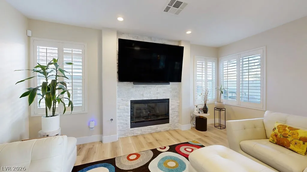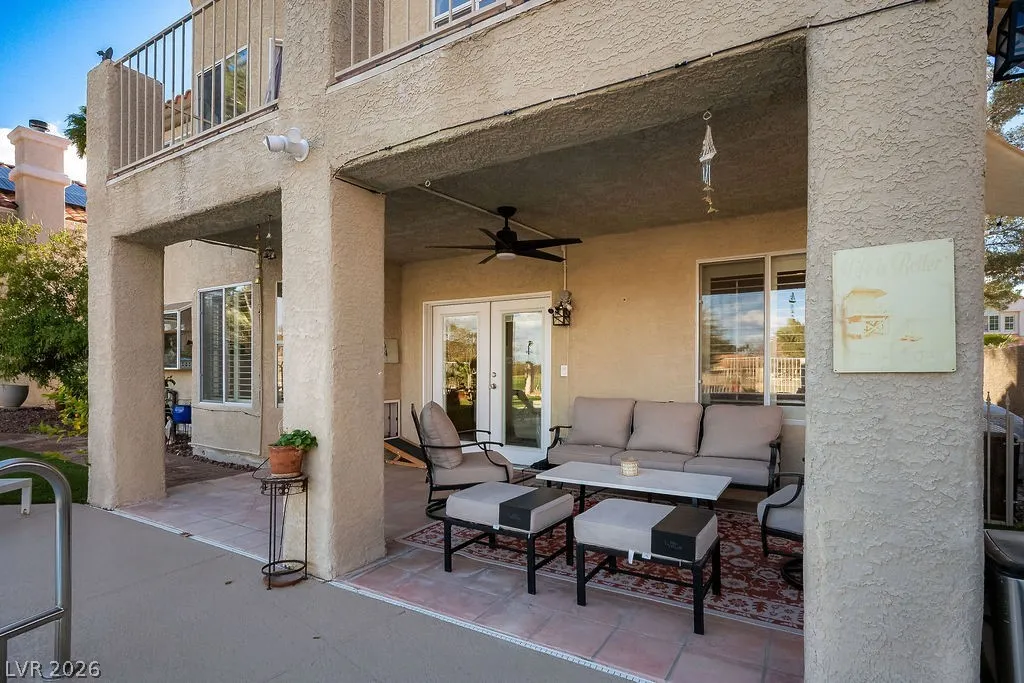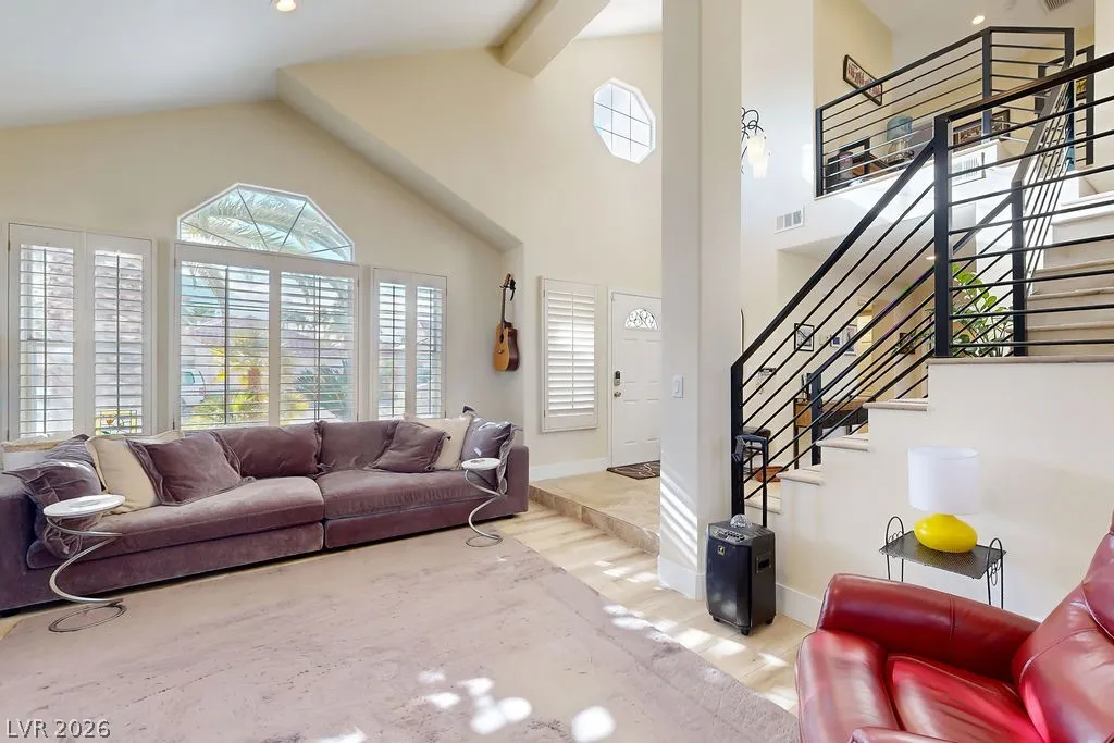 Step inside and you immediately feel it. Space, light, and a sense of ease that makes this home as impressive as it is comfortable. Soaring ceilings and expansive living areas create an ideal backdrop for both everyday life and memorable gatherings, with natural flow from room to room. The kitchen is designed for connection, featuring a large center island, generous workspace, and effortless access to dining and entertaining areas. Upstairs, the primary suite feels like a private escape, complete with a spa-inspired bath, oversized closet, and balcony perfect for quiet mornings or unwinding at the end of the day. Outdoors, the experience continues with a resort-style pool and spa, multiple patio spaces, and lush landscaping that transforms the backyard into a true retreat. Set within a well- established neighborhood, this is a home that elevates daily living and makes every day feel just a little more special.