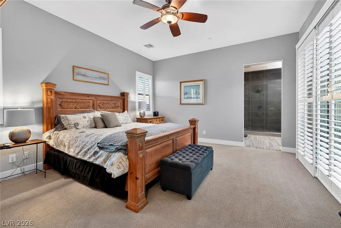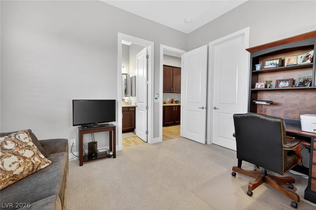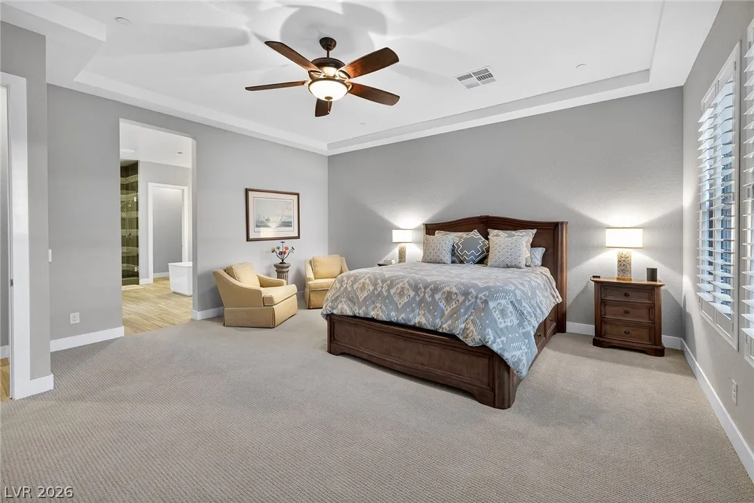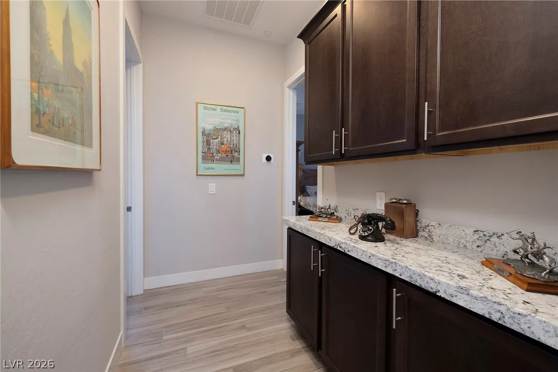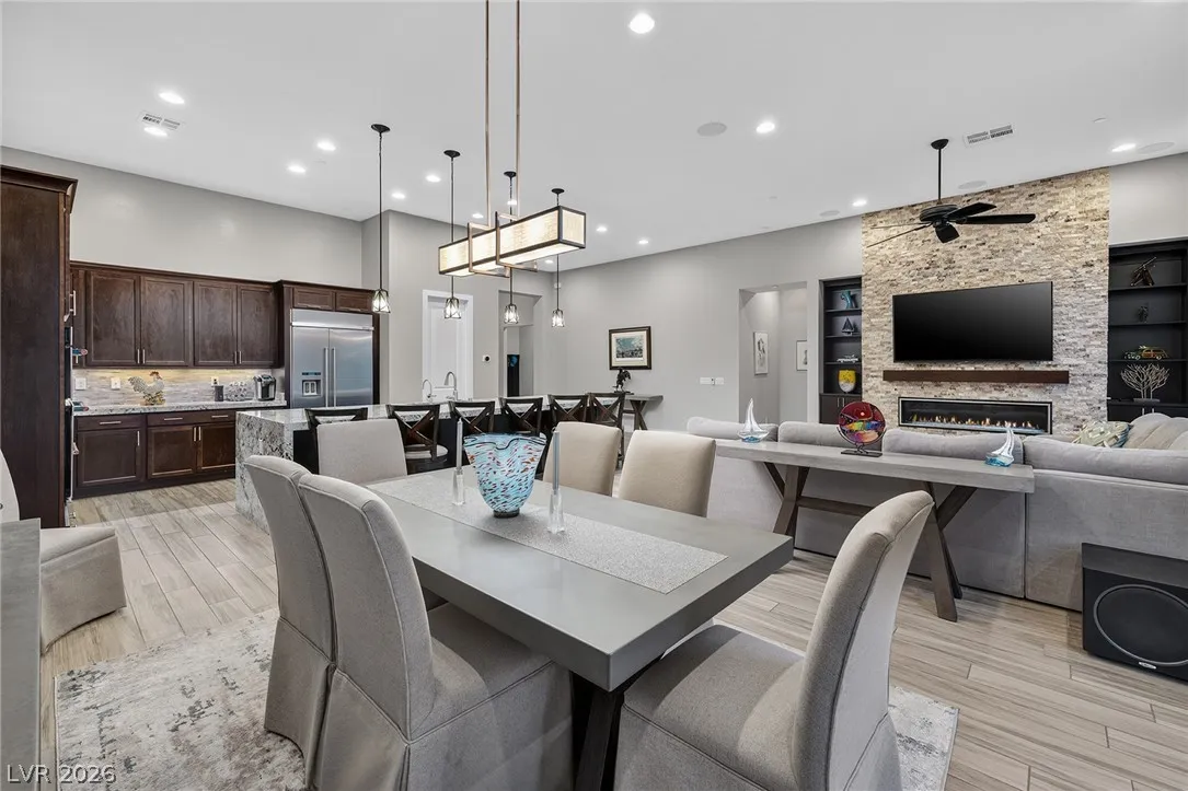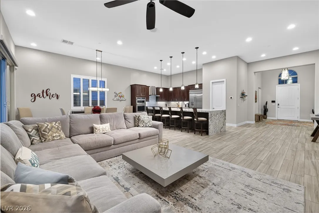 Experience modern luxury in this single-story contemporary highly upgraded home with breathtaking views. High ceilings and well-lit open spaces fill the home. The elegant finishes make this a gem in LLV’s Monte Lucca 49-home boutique neighborhood. Recessed lighting, tile flooring and designer tile surrounding the fireplace create a welcoming ambiance. The well-appointed kitchen’s fine cabinetry sets the stage for stainless-steel appliances including built in double ovens and microwave. The granite waterfall island make it a perfect environment for entertaining. Relish in a spectacular master suite, with spa bathroom, sitting area, and walk-in closet. The backyard sanctuary has a patio cover, outstanding pool & spa is a beautiful water feature. Includes walk-in pantry, laundry room, garages feature 4’ extended size and a $25,000 Sports Club membership provided by Gene Northup at close!