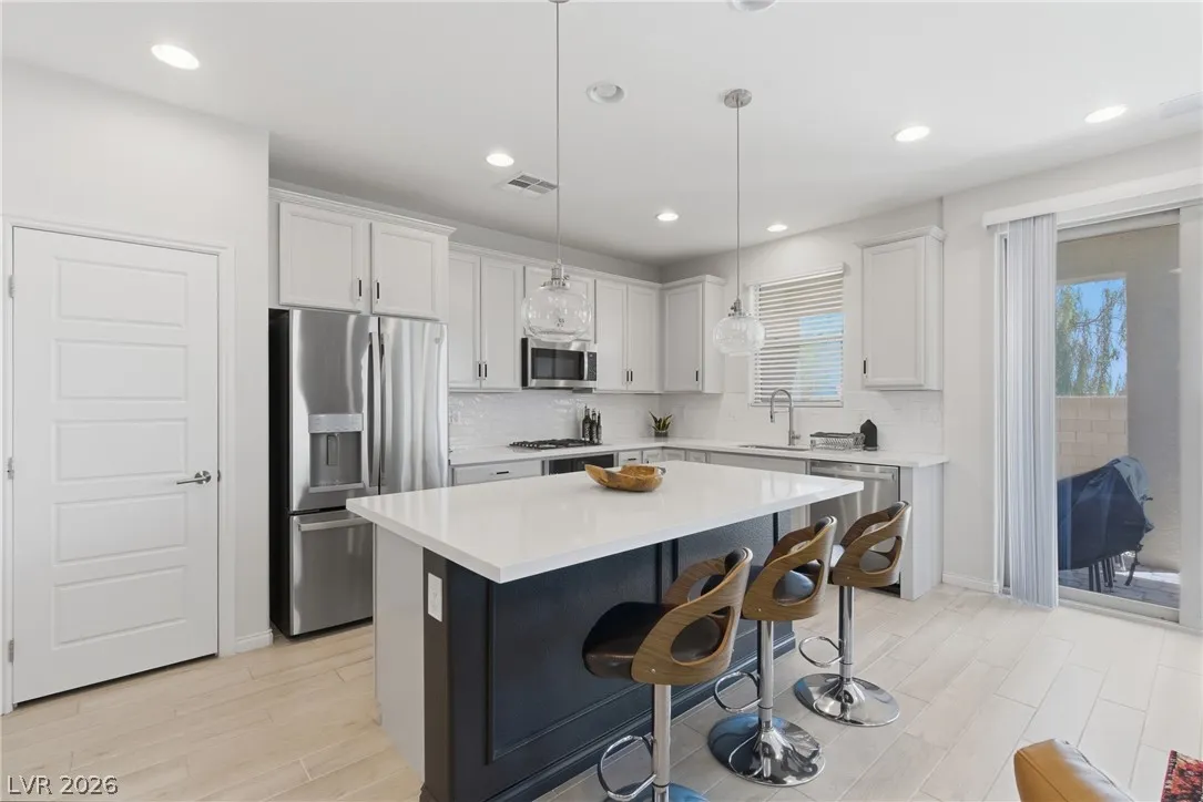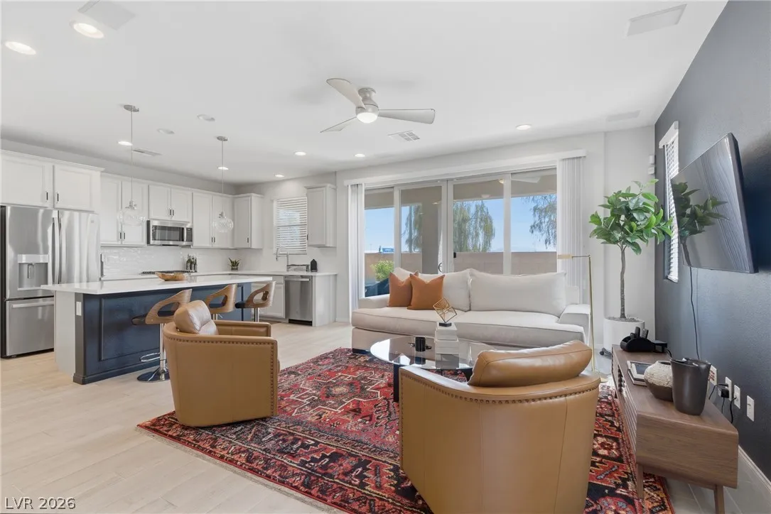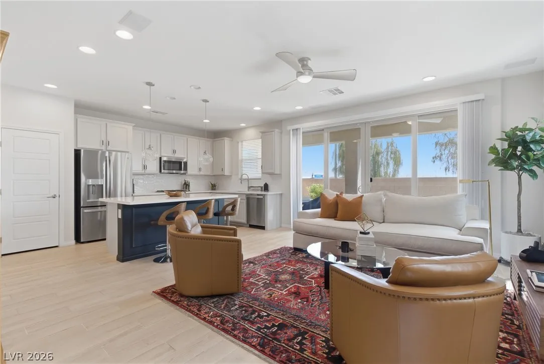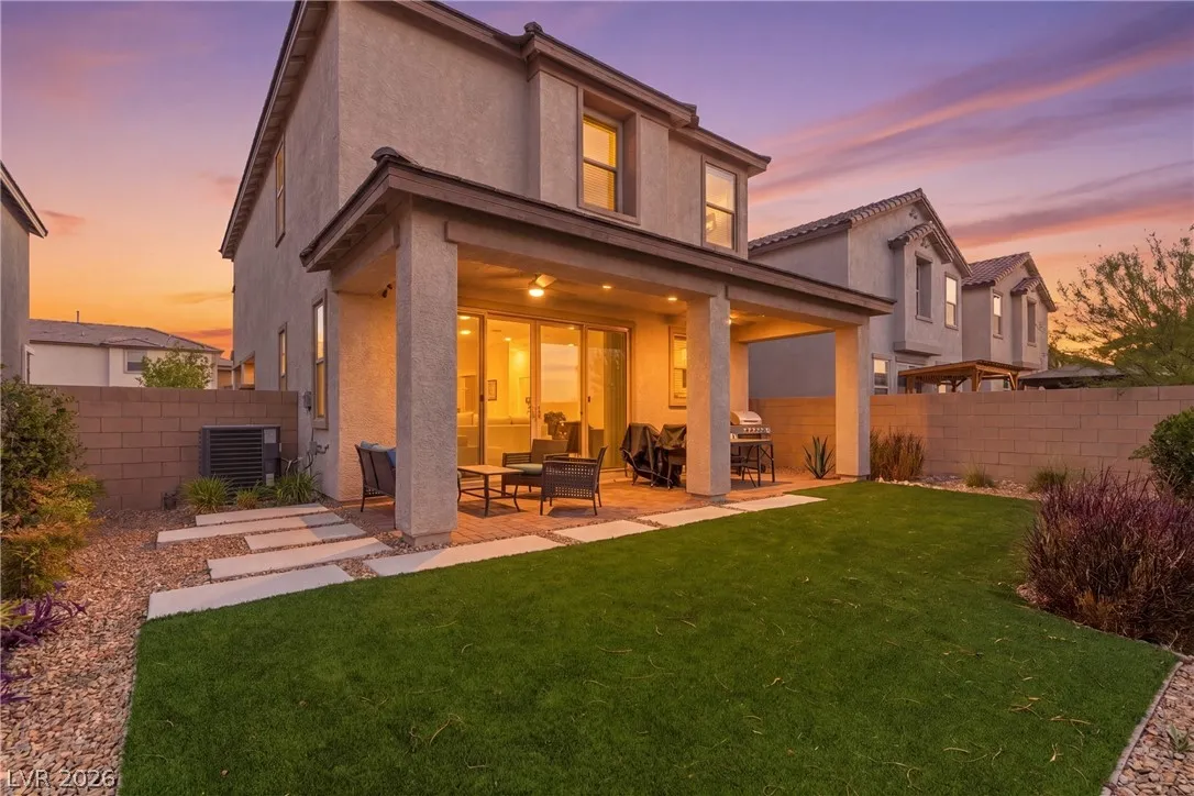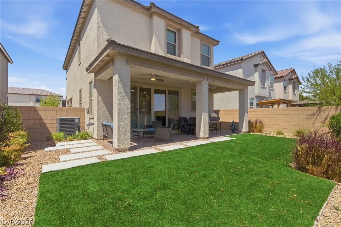 Beautifully upgraded former Richmond model home that shows like new with 9′ ceilings & 8′ doors throughout! This gem features a paver driveway & welcoming courtyard entry, setting the tone for its elevated design. Inside, the spacious family room is enhanced by surround sound and center-meet sliding glass doors that seamlessly open to an extended covered patio, perfect for indoor-outdoor living. The TV mount will stay. Gourmet kitchen is a standout, offering a premium stainless steel appliance package, upgraded quartz countertops, elegant Premier maple cabinetry, and decorative backsplash. The kitchen and bathrooms showcase upgraded high-end finishes. The loft features a built-in desk and cabinets, just right for an office area. Step outside to a water-efficient, low-maintenance backyard complete with synthetic grass and a covered patio, ideal for relaxing or entertaining year-round. This home combines style, comfort, and functionality in every detail and features upgrades throughout.