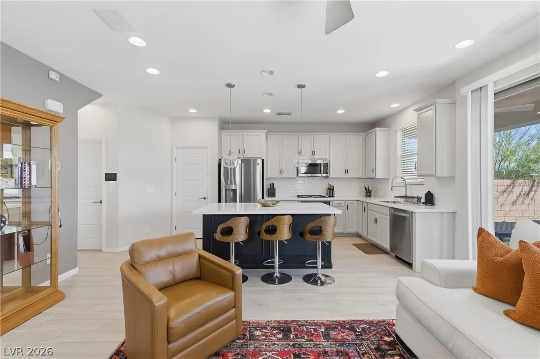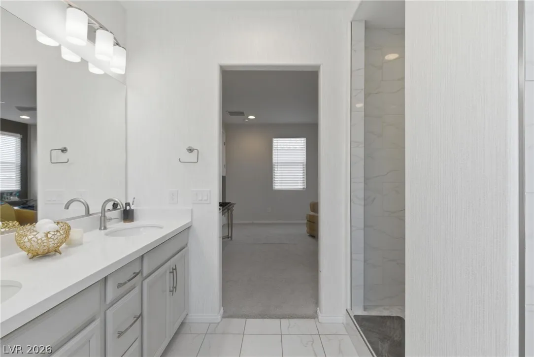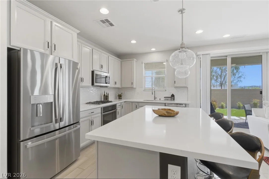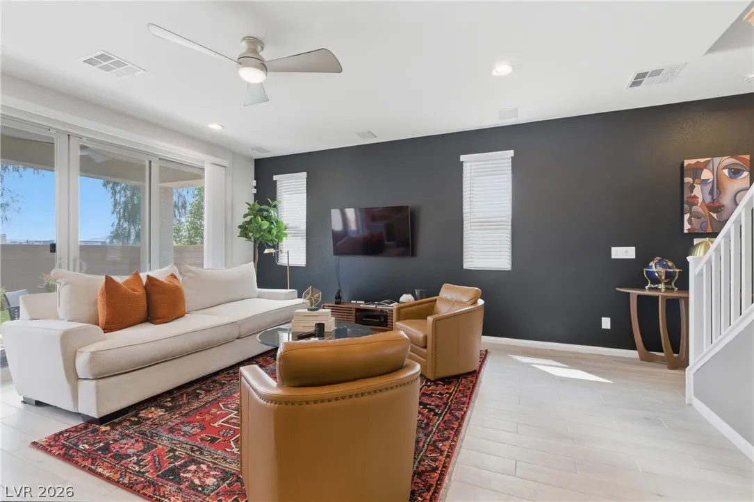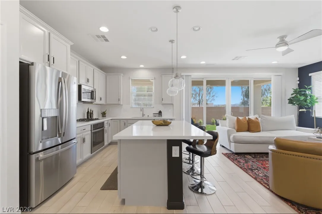 Beautifully upgraded former Richmond model home that shows like new with 9′ ceilings & 8′ doors throughout! This gem features a paver driveway & welcoming courtyard entry, setting the tone for its elevated design. Inside, the spacious family room is enhanced by surround sound and center-meet sliding glass doors that seamlessly open to an extended covered patio, perfect for indoor-outdoor living. The TV mount will stay. Gourmet kitchen is a standout, offering a premium stainless steel appliance package, upgraded quartz countertops, elegant Premier maple cabinetry, and decorative backsplash. The kitchen and bathrooms showcase upgraded high-end finishes. The loft features a built-in desk and cabinets, just right for an office area. Step outside to a water-efficient, low-maintenance backyard complete with synthetic grass and a covered patio, ideal for relaxing or entertaining year-round. This home combines style, comfort, and functionality in every detail and features upgrades throughout.