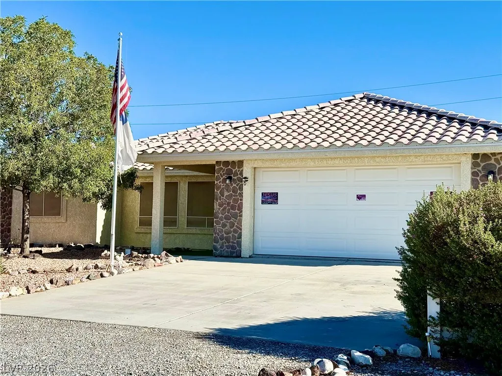 Looking for a 3-bed/2-bath single-family in Pahrump with no HOA? – You found it! This centrally located home offers 1492 s/f of comfortable living on a .19 acre lot. Solid flooring runs through the great room, while tile accents both bathrooms and cozy carpet keeps the bedrooms soft underfoot. The kitchen features recessed lighting, a stainless steel range, and refrigerator. You’ll love the oversized 2-car garage with auto opener for aded convenience. Built in 2004 this well-maintained property sits close to Pahrump’s shopping hub. A/C and Ductwork have been replaced within the last 2 years. No HOA dues here! Priced at $290,000 with low annual taxes, in the Nye County School District – This one is easy to show!
