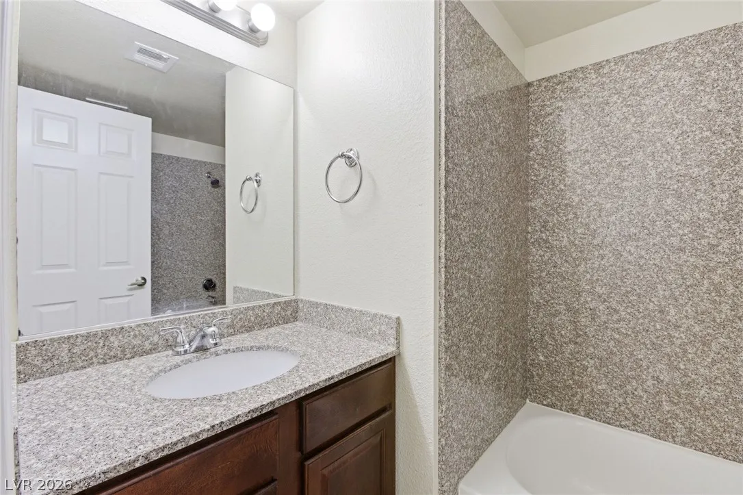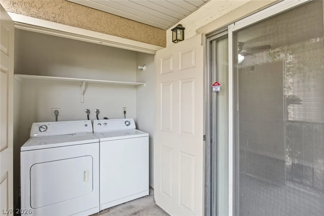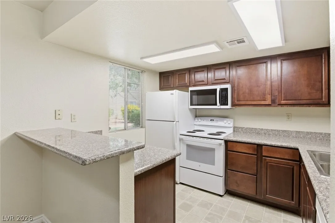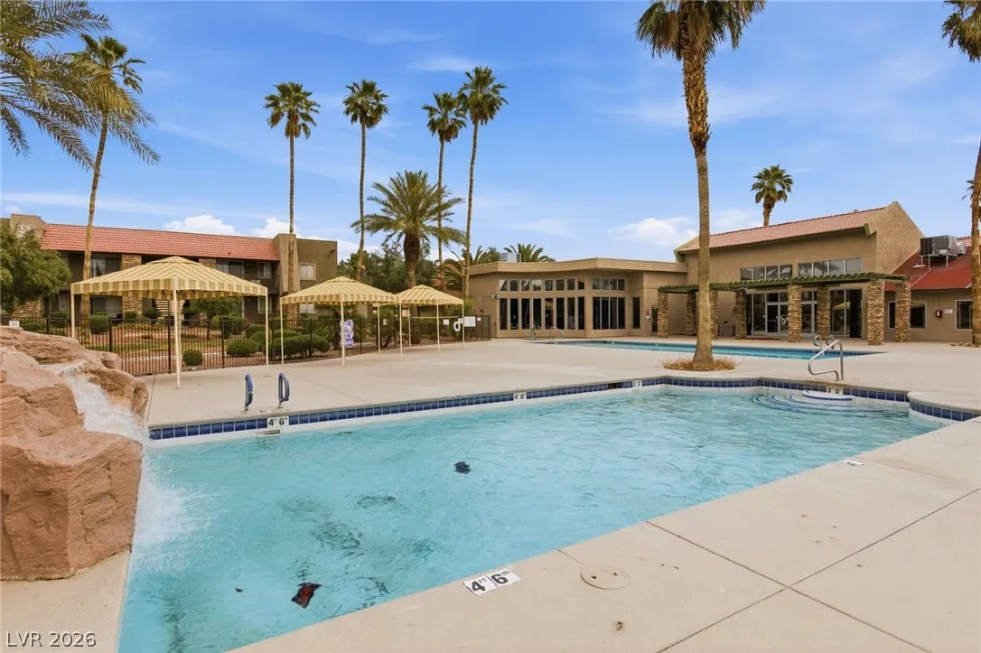 Don’t miss the opportunity to own this well-maintained 2-bedroom condo in the centrally located guard-gated Bella Vita community. Conveniently situated near the I-15 freeway and the Las Vegas Strip, this community offers multiple pools, tennis courts, and clubhouse amenities. The great room floor plan is in good condition and move-in ready. A washer and dryer are conveniently located in the laundry closet on the covered patio.