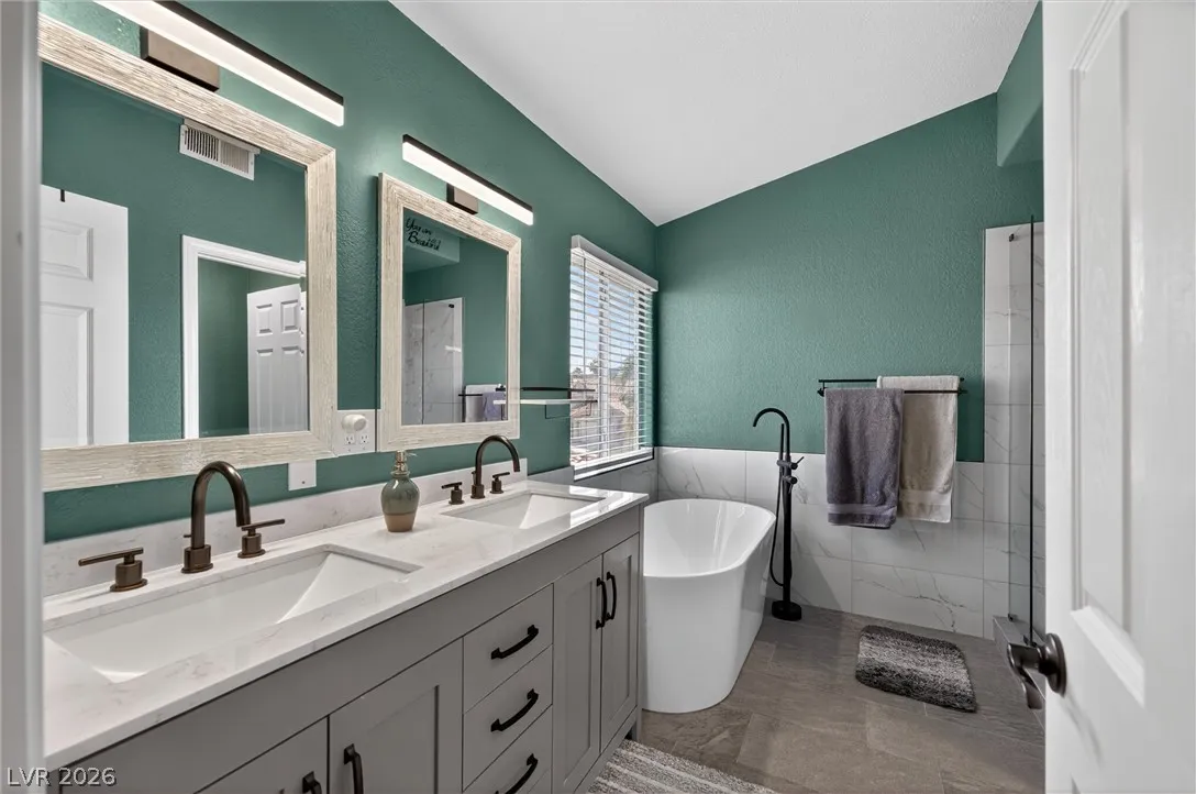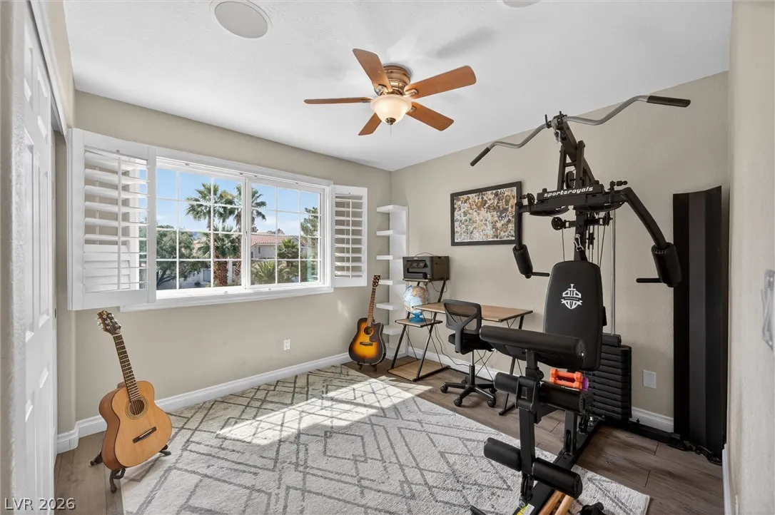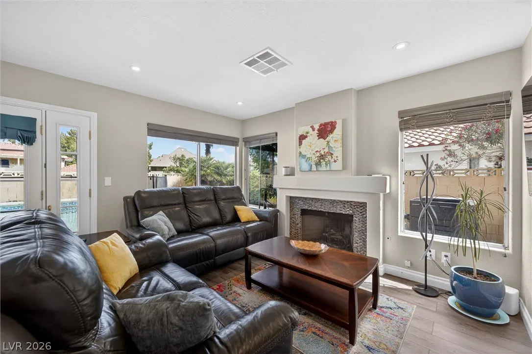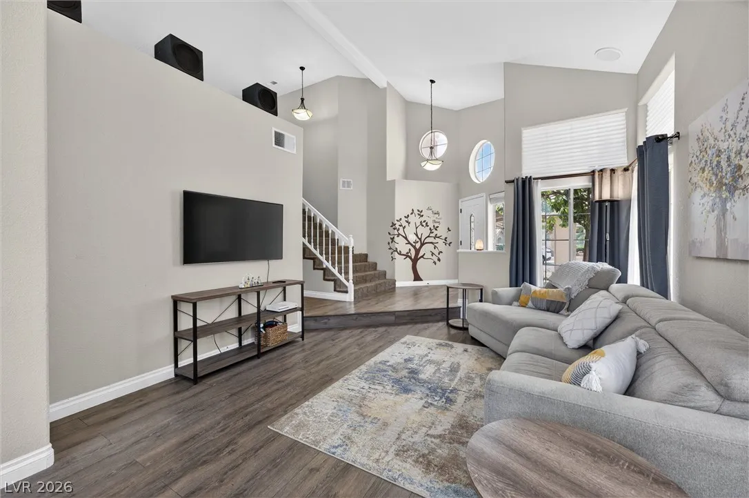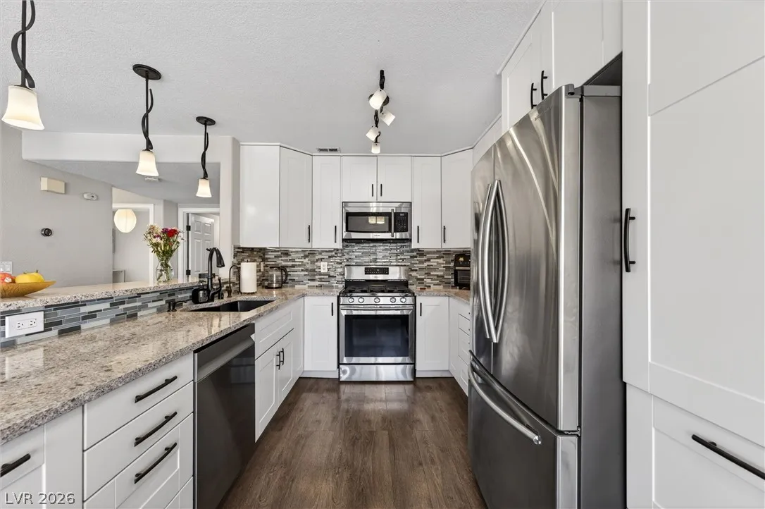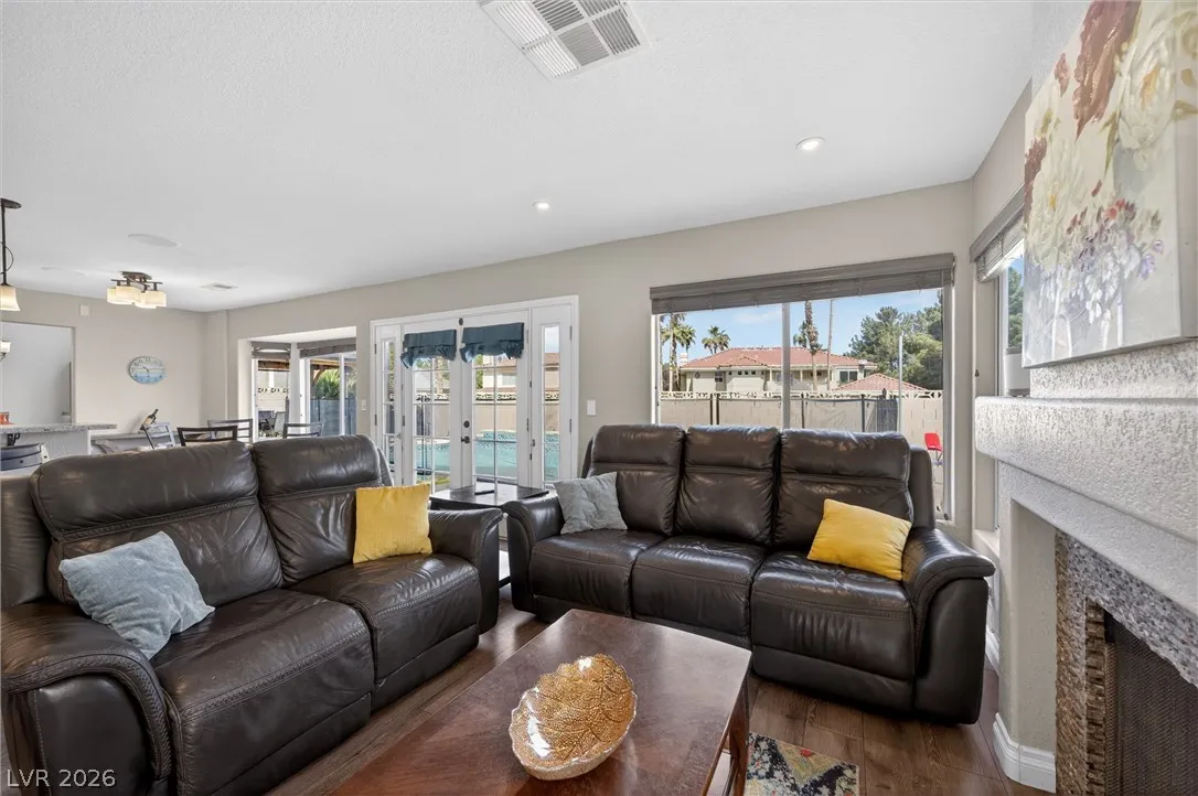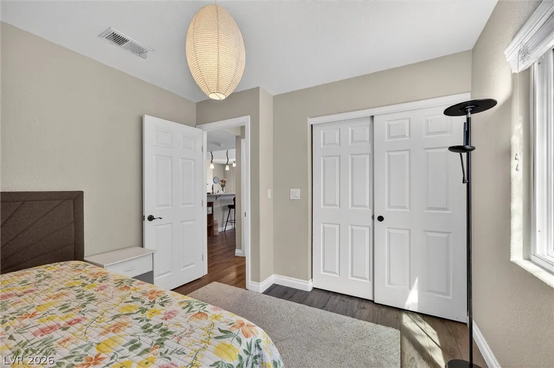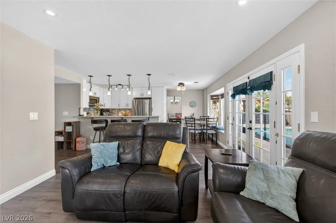 ABSOLUTELY STUNNING 2 STORY IN HENDERSON!!!! This home has been nicely upgraded and well taken care of. Rare find with 5 bedrooms and 3 baths. One bedroom and 3/4 Bath downstairs. Wood Laminate flooring throughout except the stairs. Completely Remodeled Kitchen with Custom Cabinetry and Quartz Countertops; Stainless Steel Appliances. The kitchen has an extended breakfast bar and separate eat in nook. Remodel Primary Bathroom with custom shower and soaker tub. Several windows have been replaces, Newer HVAC/Furnace, Owned Water Filtration System with R/O, Newer Pool pump with Heater (Heater needs gas hook up), Newer Garage door with Side Smart Garage Door Opener. Custom French Doors with side window openings leading the private backyard. Enjoy a splash in the SPARKING Pool! Custom Built-in Pergola. NO BEHIND NEIGHBORS!