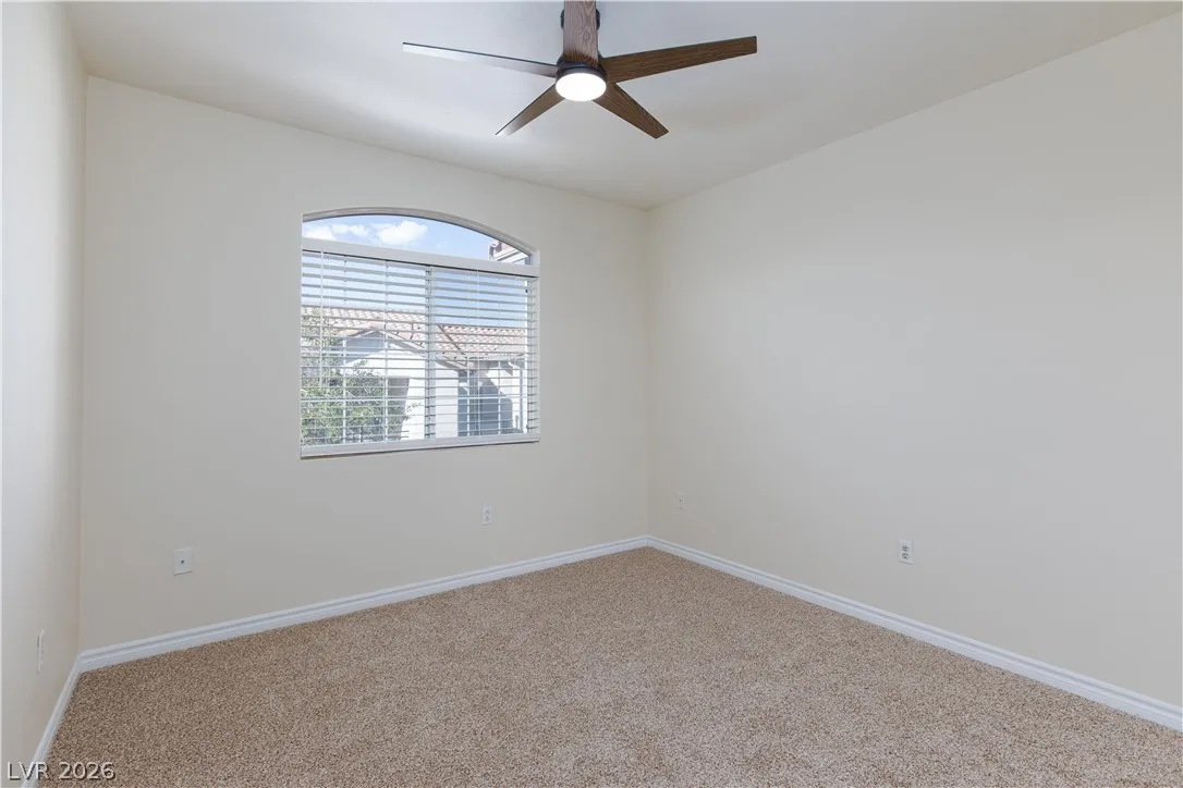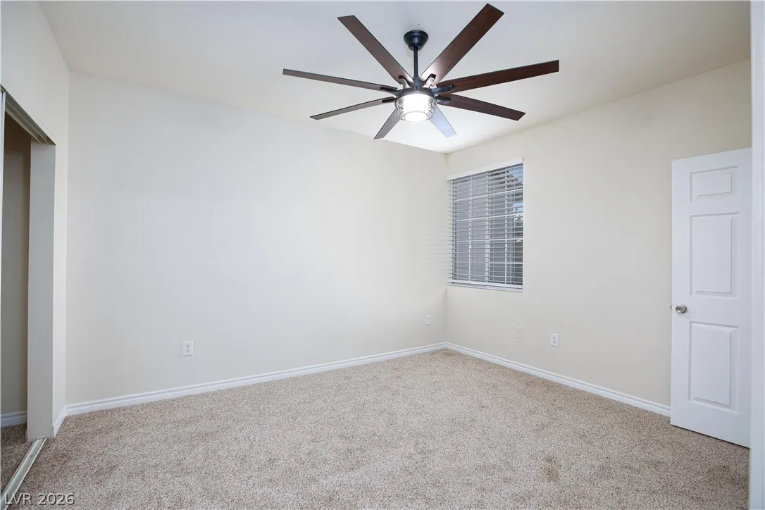 Located in a desirable gated community with access to a fitness center and sparkling pool, this spacious 3 bed, 2 bath condo is move-in ready. Open layout concept, featuring new carpet, updated faucets, fans, and fixtures, the home offers fresh, modern touches throughout. Each bedroom includes its own closet for ample storage. The laundry room comes complete with washer and dryer, and all appliances convey for added convenience. This second-floor unit provides comfort, security, and an ideal lock-and-leave lifestyle. A private covered balcony overlooking the well-maintained grounds. Located near shopping, dining, schools, freeway access and just minutes from Summerlin.