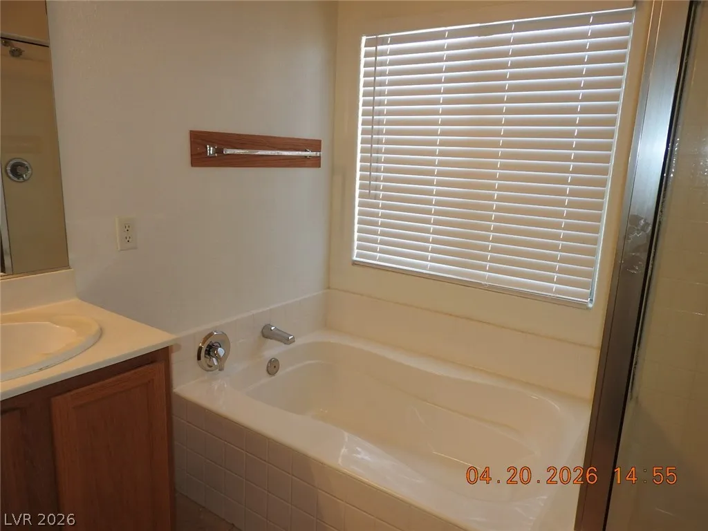 BRAND NEW CARPET THROUGHOUT! This beautiful house has a corner lot location, and desert landscaping with a drip irrigation system. Clean and ready for immediate move-in, you have got to see this house! Large living area has a dining area and an open kitchen with an island and window onto the back yard. The primary bedroom is separate from the others and has a ceiling fan with light, walk-in closet and the primary bath has a separate tub, separate shower and double sinks. The laundry is in a separate room. The other 3 bedrooms are a decent size and the biggest one has a walk-in closet.