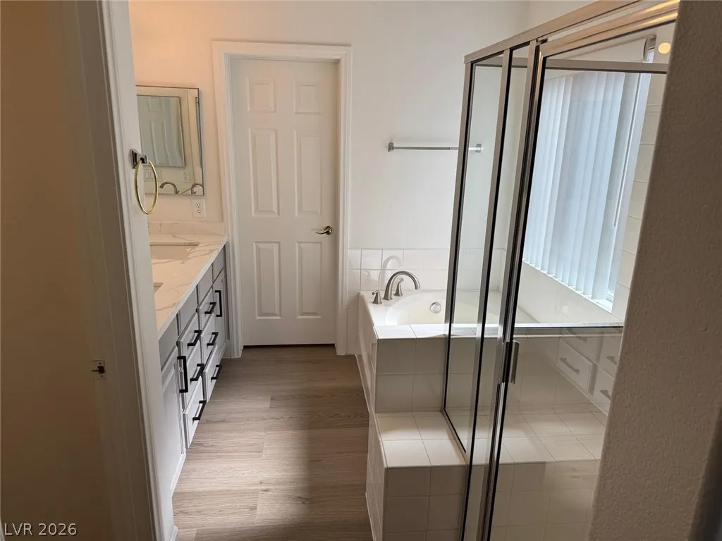 THIS HOME FEATURES A SPACIOUS LIVING ROOM WITH HIGH CEILINGS, AND AN OPEN KITCHEN WITH A BREAKFAST BAR AND PLENTY OF CABINET SPACE. FRESHLY PAINTED INTERIOR AND BRAND-NEW WATERPROOF FLOORING THROUGHOUT. UPSTAIRS OFFERS A LOFT AND A LARGE PRIMARY SUITE WITH WALK-IN CLOSET, DOUBLE SINKS, SEPARATE TUB, AND SHOWER. THE PRIVATE BACKYARD INCLUDES A COVERED PATIO.