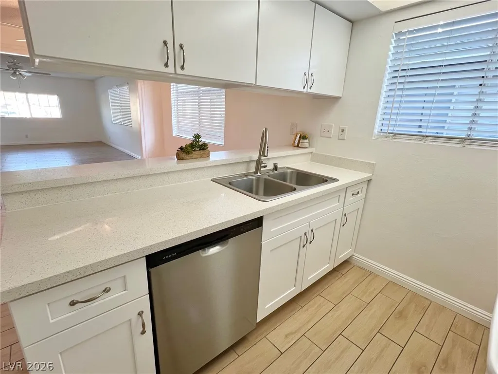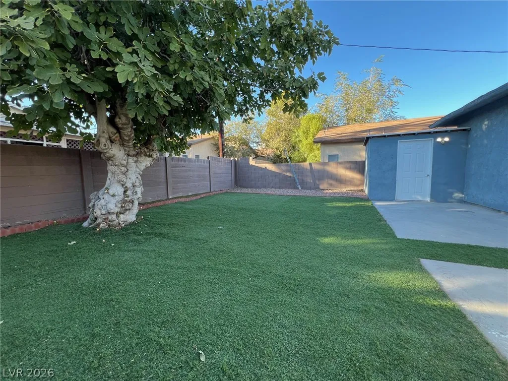 A Hidden Gem! SINGLE STORY HOUSE with 2 spacious bedrooms, 1 bathroom located near The Medical District, UMC, Valley Hospital, Medical & Dental Schools. Near Downtown Las Vegas, close to the vibrant Strip. House has a light welcoming floorplan & tiled floors for the allergy prone. Remodeled kitchen & shower. New Shaker style cabinets in kitchen & new Quartz countertops. New dishwasher. New large shower with Italian marble niche with large tile surround & new modern frameless sliding doors. Dual sinks on Granite countertops in bathroom. Elongated lavatory. Spacious Bedrooms, Primary bedroom has walk in closet, Second bedroom has large closet. Large, Bright Living room with adjoining dining area. Complimentary washer & dryer, refrigerator. House is immaculately clean! Lockable storage room in backyard. Enclosed backyard is nestled under the shade of a large fig tree with faux grass** Regret NO Pets, No smokers. Owners are looking for clean, responsible tenants with great rental history.