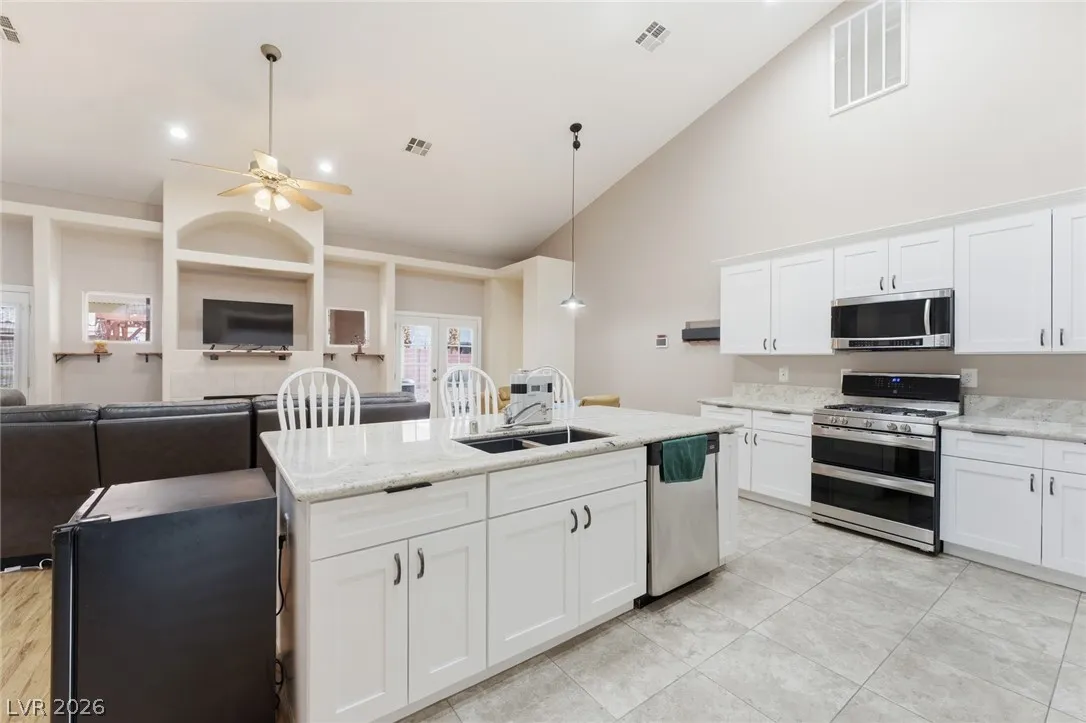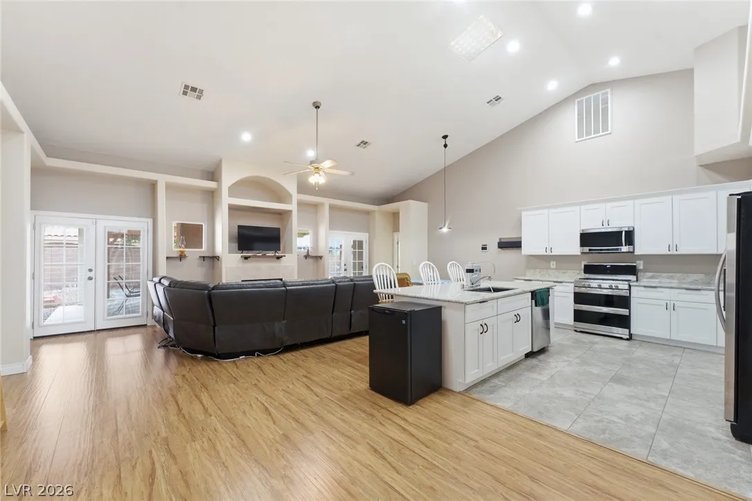 Stunning Single Story Cul-De-Sac Home Packed W/ Thoughtful Upgrades & NO HOA! Paid Off Solar, New HVAC (2024), Electrical Upgrades & New Windows. Upon Entry You Are Greeted W/ French Doors & Formal Dining Room For Additional Gathering Space. The Open Kitchen & Family Room Under The Vaulted Ceilings Creates An Airy Feeling & Invites Natural Light In W/ Skylights. Expansive Kitchen W/ Island Seating Up To 4. Primary Bedroom Separate From Others W/ Beautiful Views Of The Backyard. Dual Walk-in Closets W/ Built-in Shelving. Primary Bathroom Is ADA Accesible W/ Walk-in Sitting Tub. Separate Shower, Dual Sinks & Extra Storage Round Out The Bathroom. All Bedrooms Have Bathroom Access! The Spacious Backyard Stuns W/ Huge Covered Patio W/ Misting System, Additional Pergola W/ String Lights For Vibes, Above Ground Spa & Serene Rock Fountain. Fig Tree & Other Beautiful Plants & Landscaping Bring It All Together. Oversized 2 Car Garage. Great Area Near Centennial Shopping Center & Freeway Access.