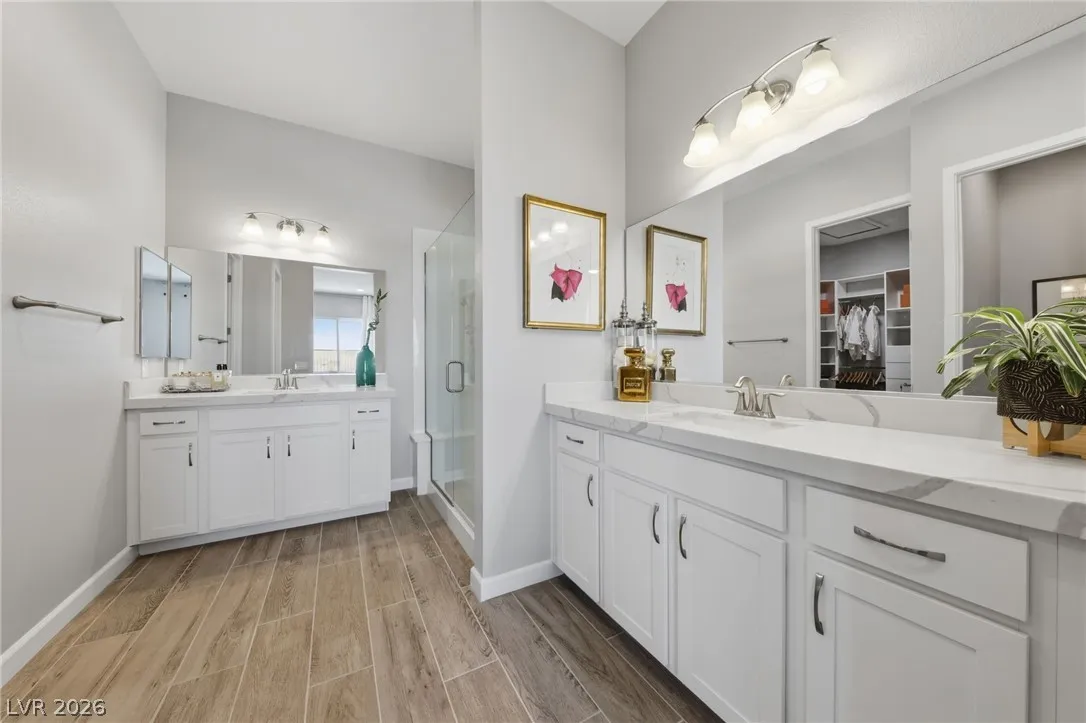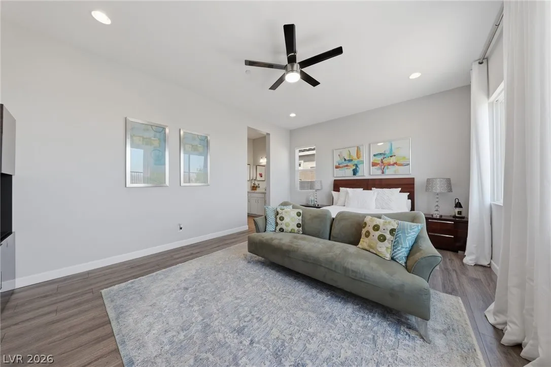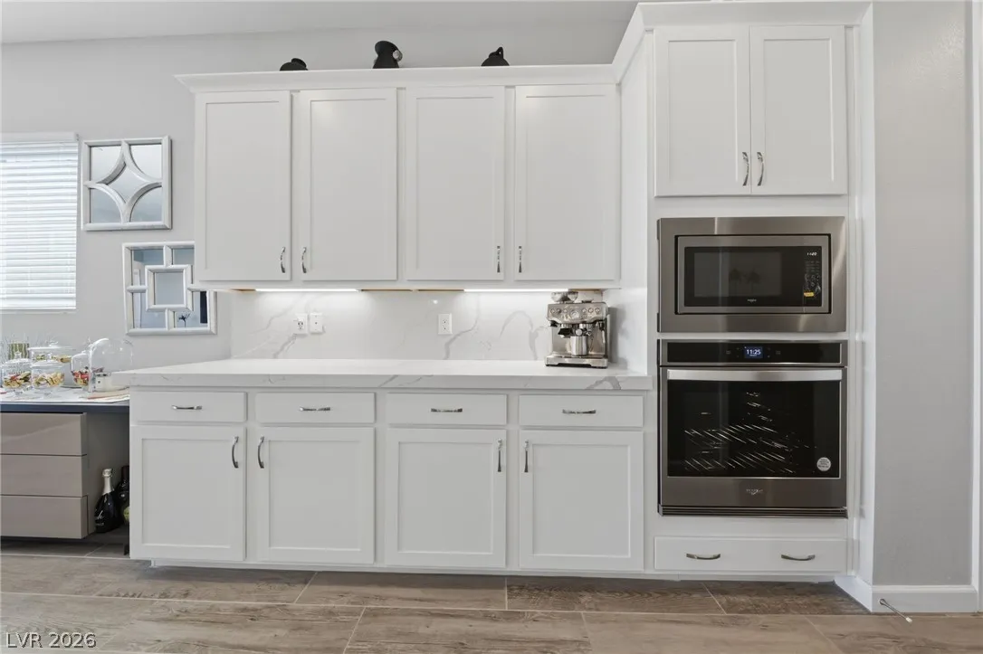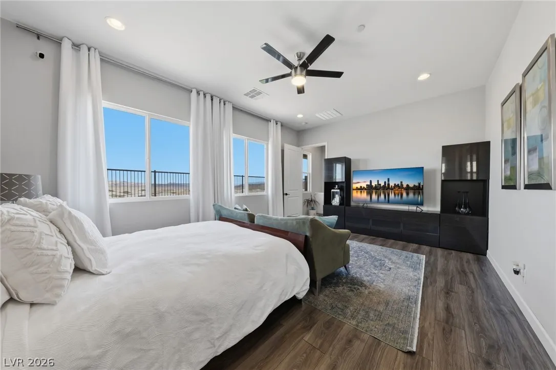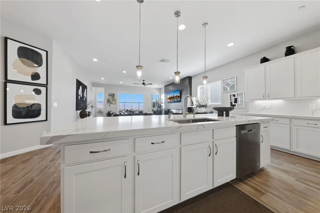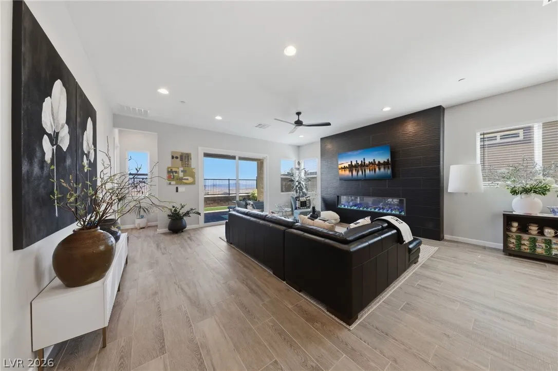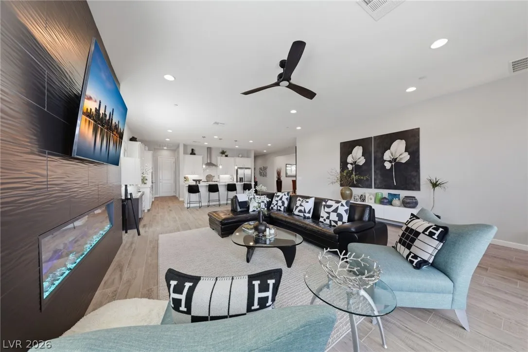 Enjoy single-story living in a gated community with unobstructed mountain views, plus a thoughtfully upgraded set of comfort and efficiency features throughout. Designed with energy savings in mind, the home includes a solar power lease to help reduce monthly electric costs, along w/a tankless water heater for on-demand hot water efficiency, a dedicated EV charging outlet, and a whole-home water softener/filtration system for added comfort and performance. The chef’s kitchen is designed to impress with a huge island, quartz countertops, custom cabinets, and convenient pull-out shelving, while custom dining room lighting elevates entertaining. Soaring 10’ ceilings and an electric fireplace make the family room a welcoming place to unwind, and smart-home peace of mind comes with a Eufy video doorbell. Outdoors, you’ll love the landscaped, low-maintenance backyard w/a covered patio for year-round relaxing. The primary suite is finished w/a custom closet for polished, organized storage.