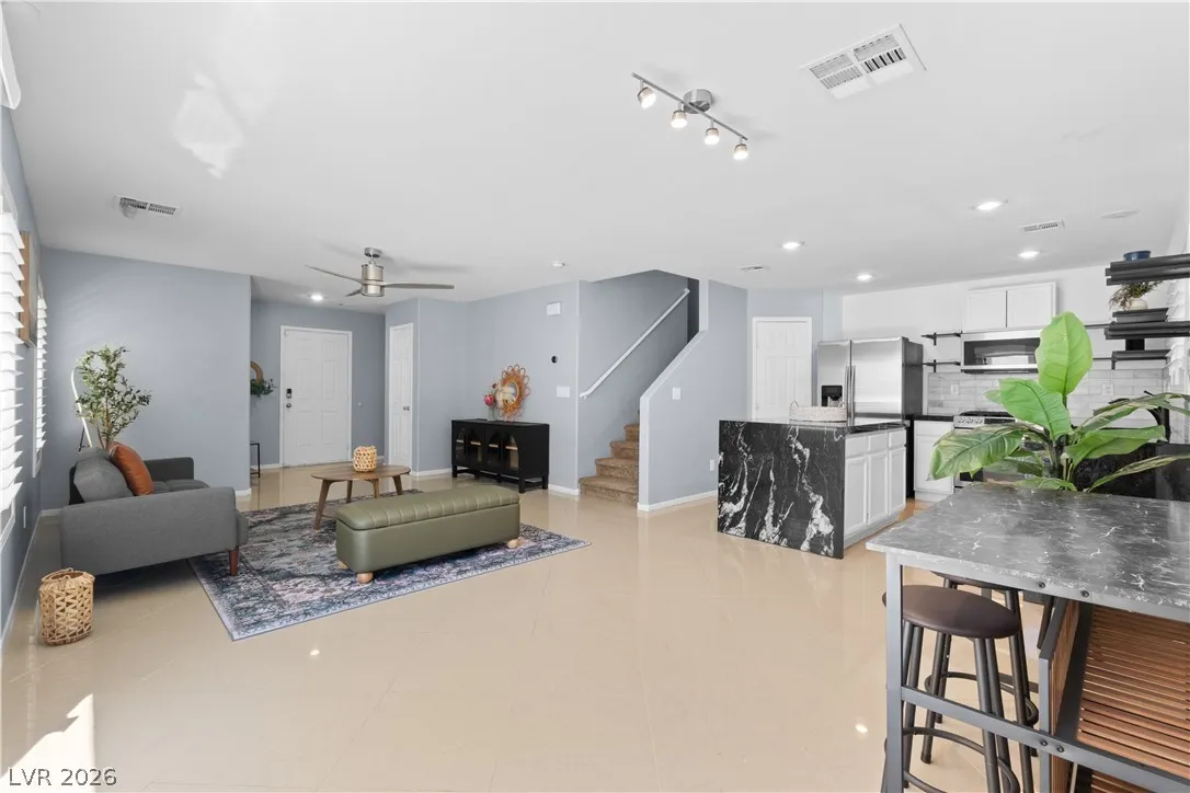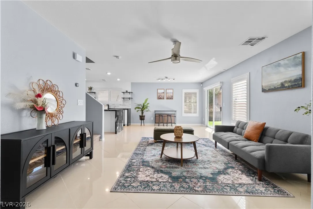 WELCOME HOME to your Southwest Sunset Stunnah! Nestled among the Southwest Mountains, in the Heart of Huntington Village, across from Rhodes Ranch. Be in proximity to COSTCO, SAMS CLUB, DURANGO Casino, Walmart, and soooo much more. Whether you hike, bike, or trike, this home screams LOCATION, LOCATION, LOCATION!! Step inside your airy, bright home, which boasts a LUXE Quartz countertop and open shelves with STAINLESS Steel appliances in the kitchen, a fully finished yard with artificial turf, and mature landscaping illuminated by string lights, and a concrete patio to make your own. Don’t forget your newly renovated, luxurious primary bath. All rooms have ceiling fan lights, Plantation Shutters, and are clean and MOVE-in READY!! Open Houses will be held this weekend.