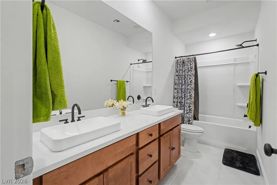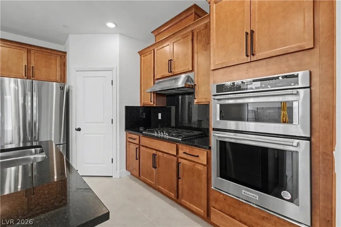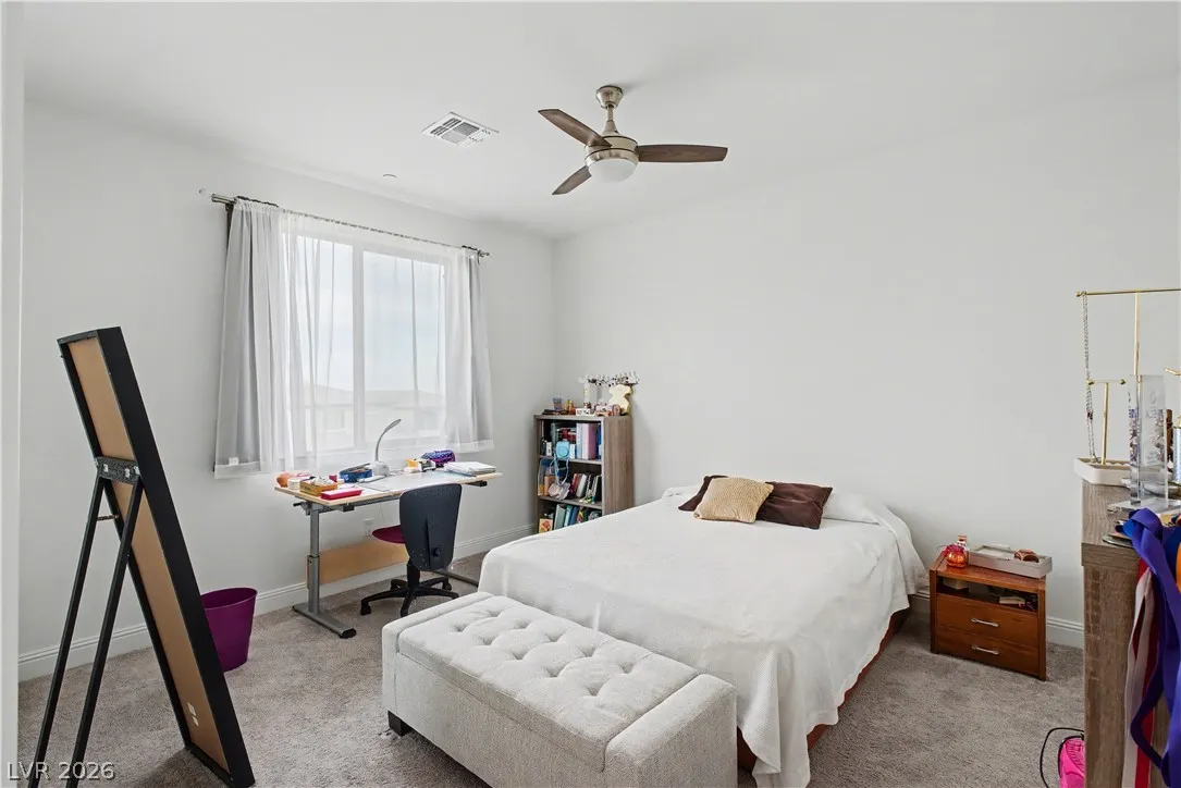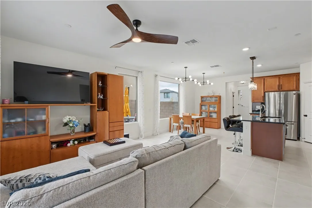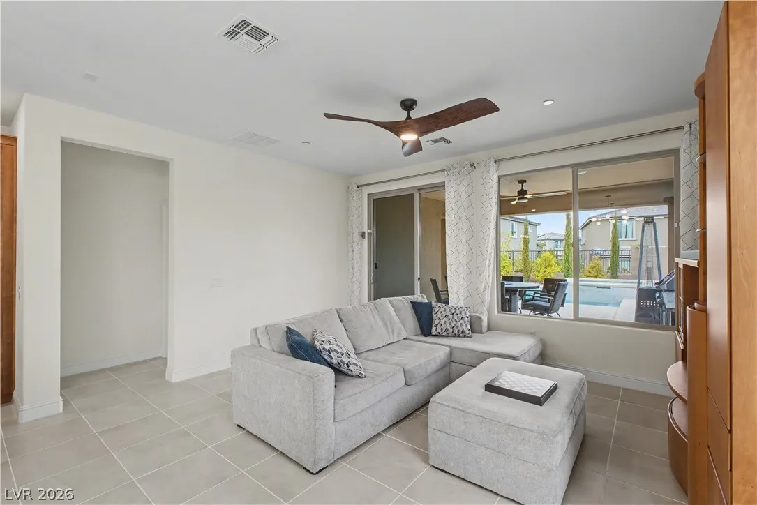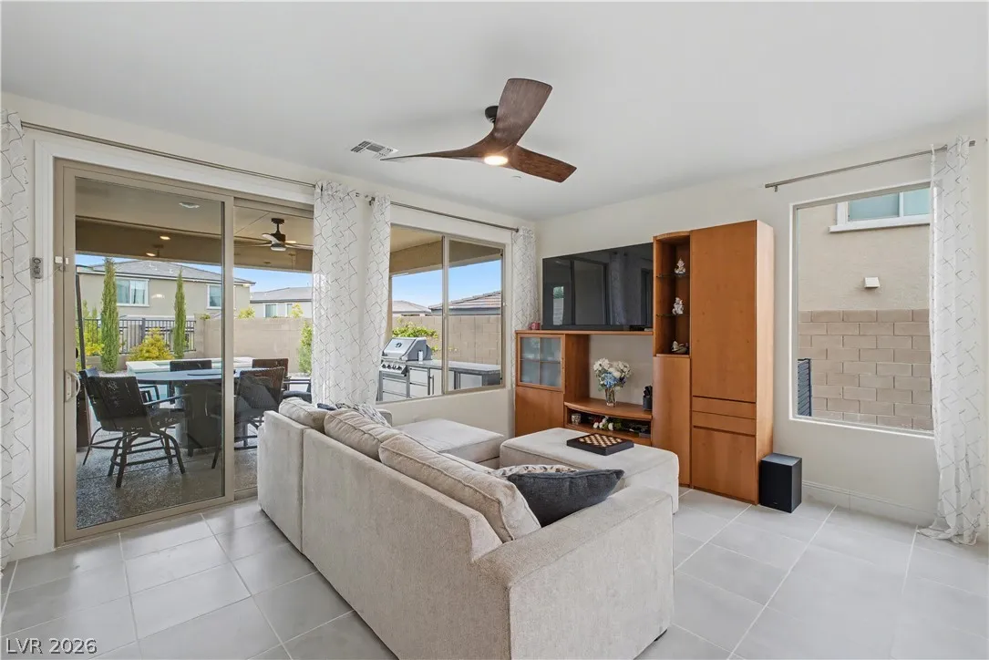 Location, location. This move-in ready home is located in the gated Starling Community adjacent to the Red Rock Mountain area in Summerlin. It offers an open floor plan with a spacious kitchen featuring stainless steel appliances. NEW hardware has been installed throughout the entire home, NEW vanities and sinks in aloof the bathrooms and laundry room, NEW tile in the living room, NEW Carpet on the stairs and in the primary bedroom located on the main level. Head upstairs to a large loft with mountain views. Each bedroom has a walk-in closet and a ceiling fan. In the backyard, step out to a covered patio equipped with a Napoleon outdoor kitchen with stainless steel cabinets featuring a semi-built-in natural gas barbecue, an outdoor fridge and granite countertops. Just steps away are a stunning oasis, a sparkling heated pool and raised spa, and a large seating area with a built-in natural gas fire pit. This home is a must see!!! Call or text 702-207-9897 for an appointment.