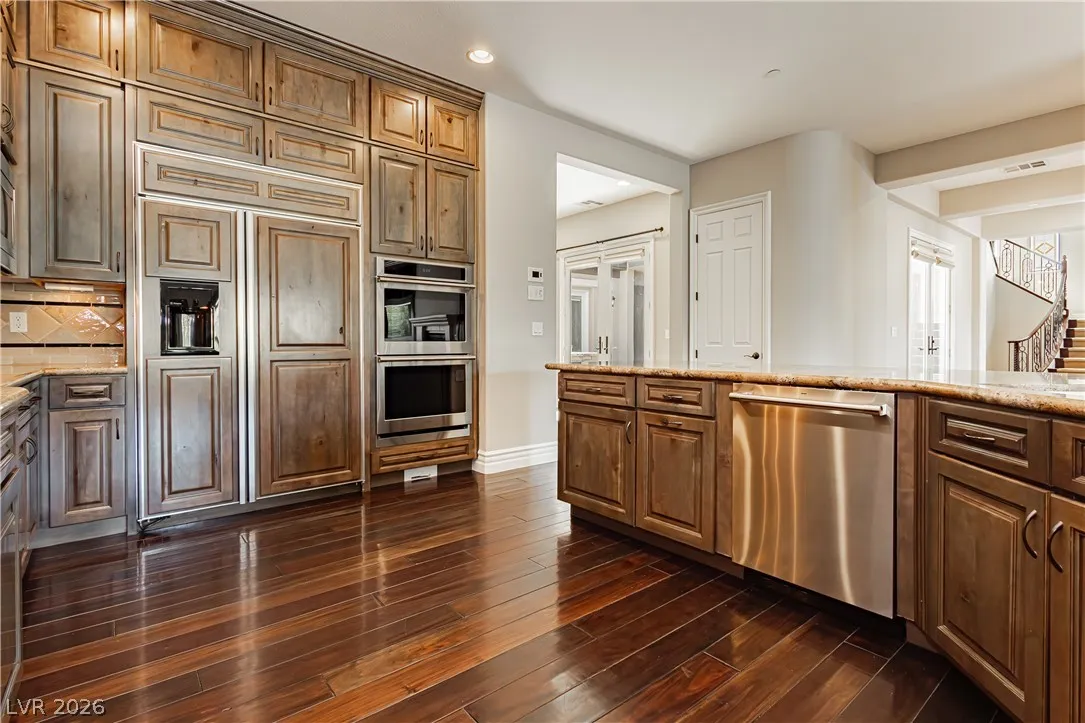 Welcome to the prestigious Red Rock Country Club. Breathtaking mountain and golf course views! Perfectly positioned on one of the most coveted lots in the community. This exceptional property has completed 3 yr process for lot expansion providing enhanced space. Timeless in design with classic traditional floorplan- elegant travertine flooring, rich hardwood accents, and plush carpeting. The gourmet kitchen is designed for both everyday living and effortless entertaining. Expansive primary suite offers a serene retreat with balcony capturing additional stunning views of the mountains and golf course, spa-like primary bath w/ jetted tub, dual vanity, and walk-in shower. Private courtyard complete w/ built-in grill, fridge, and fireplace. Casita with private entrance off the courtyard provides flexible space for guests, home office or multigenerational living. Enjoy the resort-style backyard w/ WIFI controlled pool/spa. New AC’s zoned for individual room control. Wireless speakers