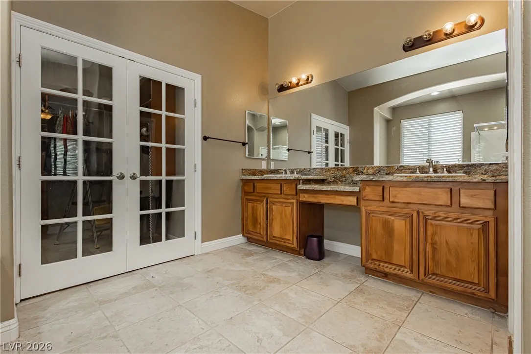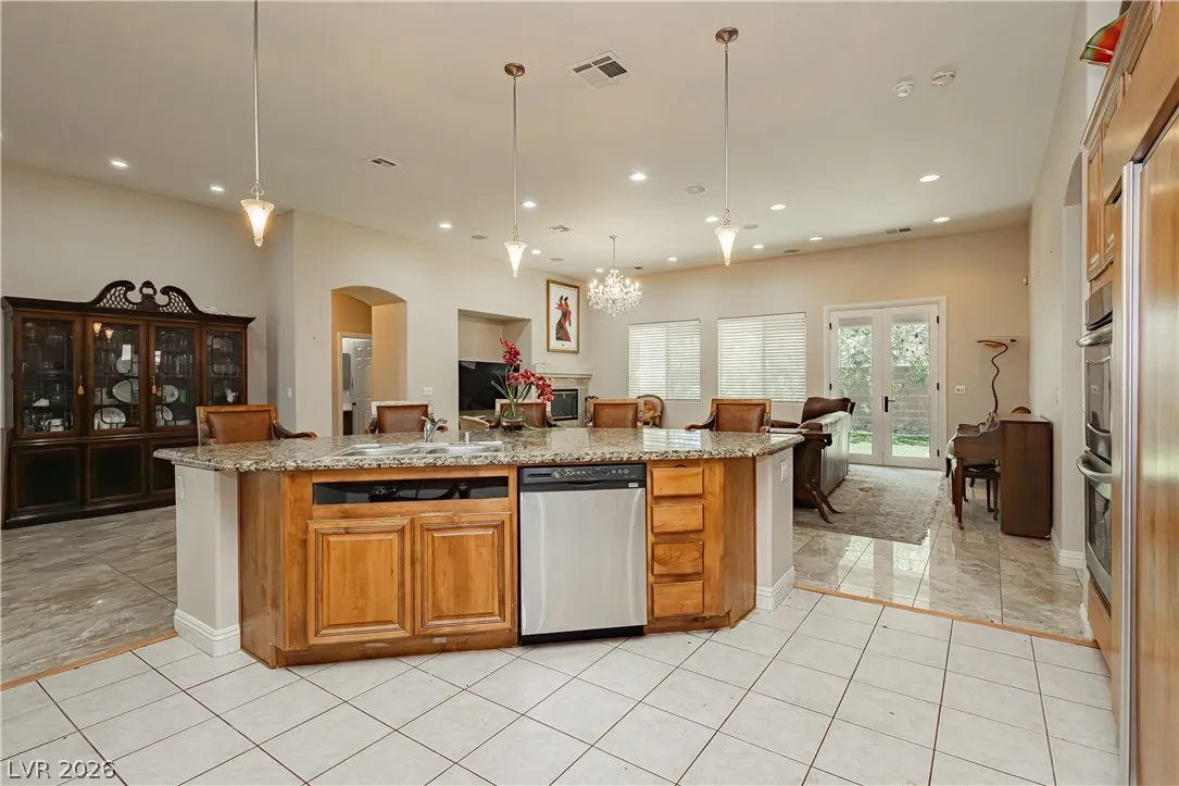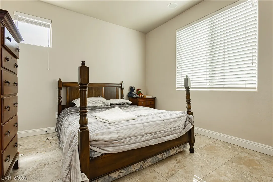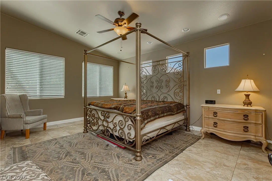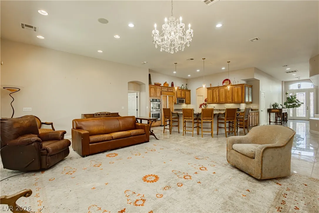 Clean lines, modern finishes, and a prime corner setting define this sleek 3-bedroom, 2.5-bath home in the gated Canyons II at Rhodes Ranch. Thoughtfully placed recessed lighting creates a crisp, well-lit interior that feels both refined and inviting. The open-concept layout flows effortlessly, offering a streamlined space ideal for contemporary living.