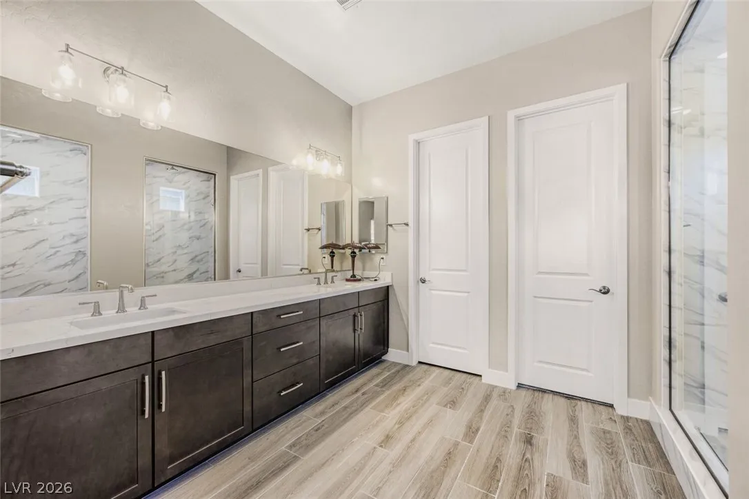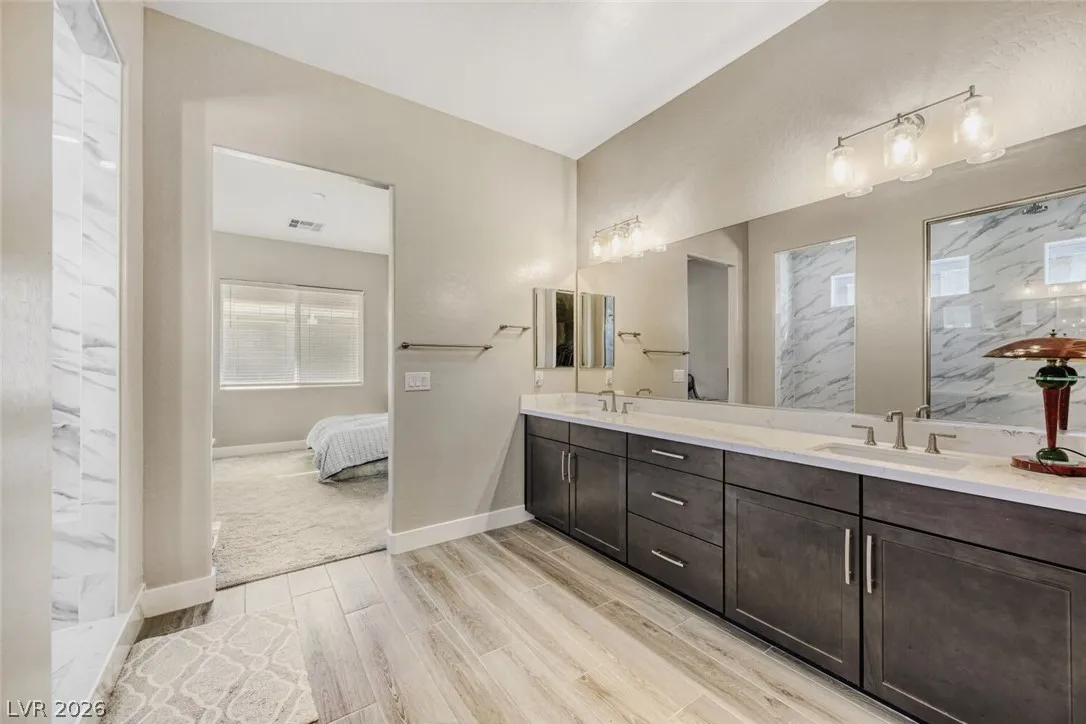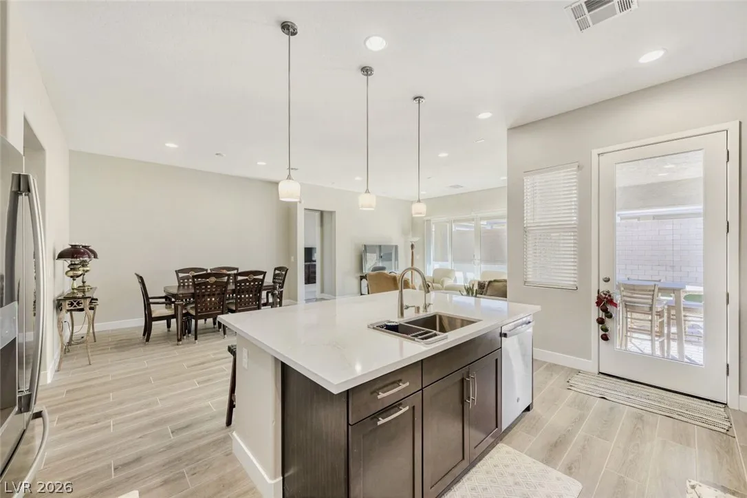 Charming one-level residence with functional and open layout. Well maintained home nestled in the heart of Las Vegas. Conveniently located near I-15 for easy access. Beautifully upgraded throughout with modern finishes and thoughtful details. Modern kitchen featuring stainless steel appliances, Refrigerator, washer, dryer and water softener are all included. The newly fully landscaped backyard which features extended covered patio offers a retreat ideal for outdoor gatherings, enjoy your morning with a cup of coffee and a quiet evenings under the stars. A must-see to truly appreciate.